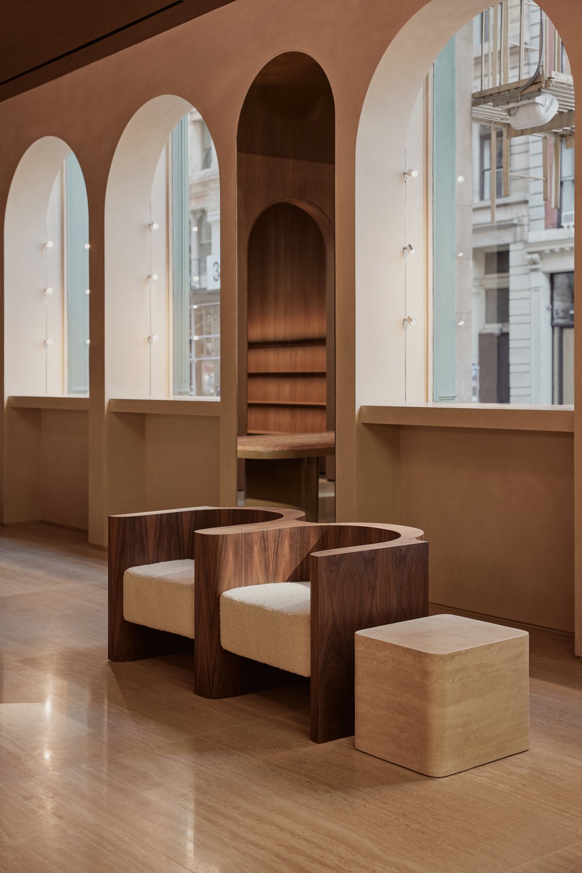 At the intersection of the famous Broadway and Broome Street boulevards, in the heart of New York’s Soho district, a new chapter is opening for the Polène brand. Their latest flagship boutique, masterfully designed by interior architect Valériane Lazard, is a subtle, intimate and audacious creation. The unfolding of the interior’s sculptural forms offer a glimpse, to those passing by, into an enigmatic space of unique imagination and refinement.