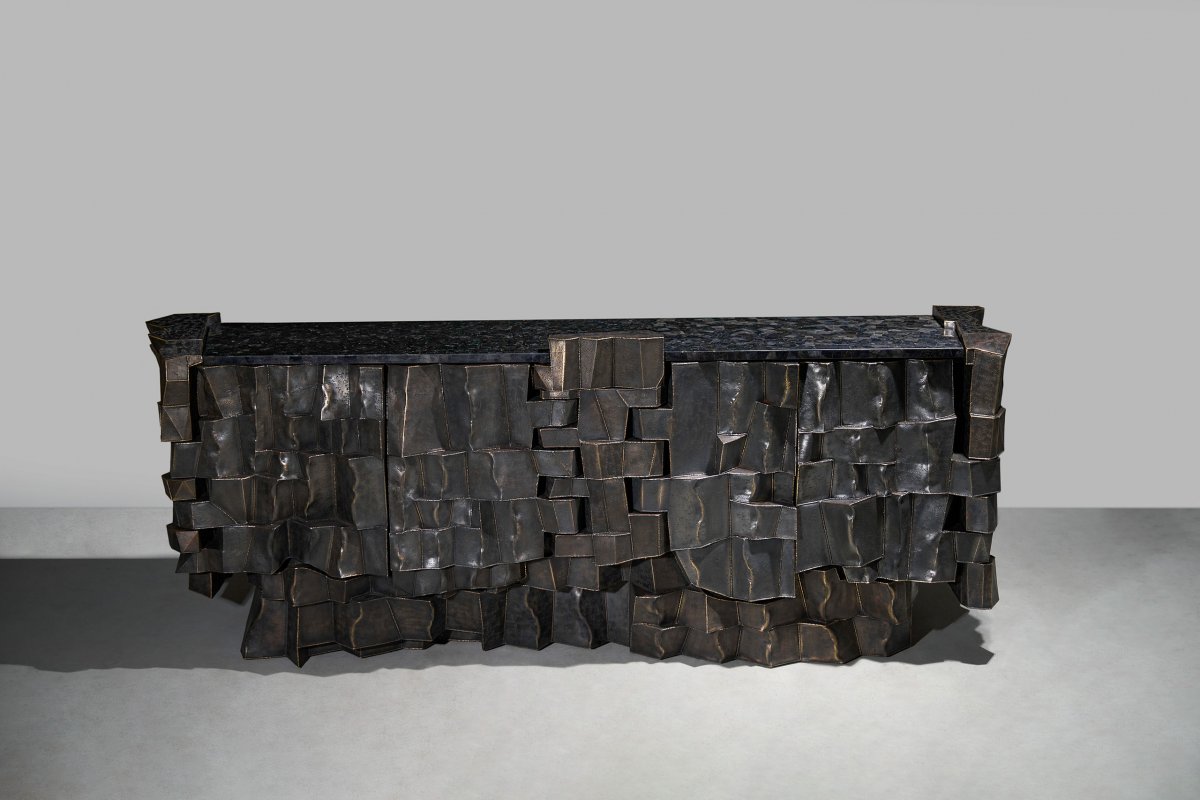 Drawing on the expertise of specialist artisans from across the country and a deep exploration of Indian metalwork traditions, Goyal designs limited-edition furniture and objects that celebrate material and form in abstract new ways. By diligently refining and re-inventing techniques that have been cultivated in the region for centuries, his work exudes a studied sophistication in Indian craft and conceptual and cultural narratives.