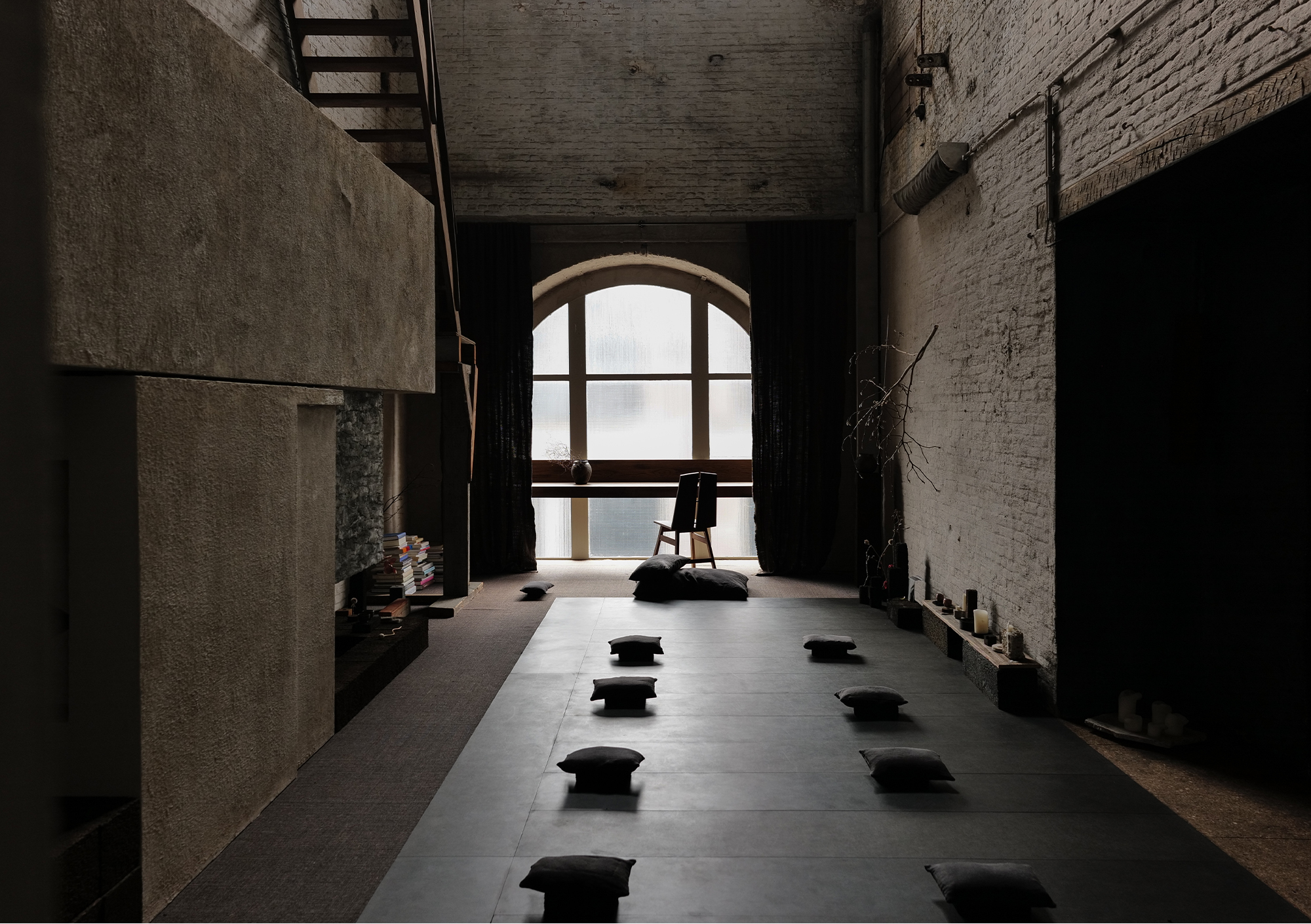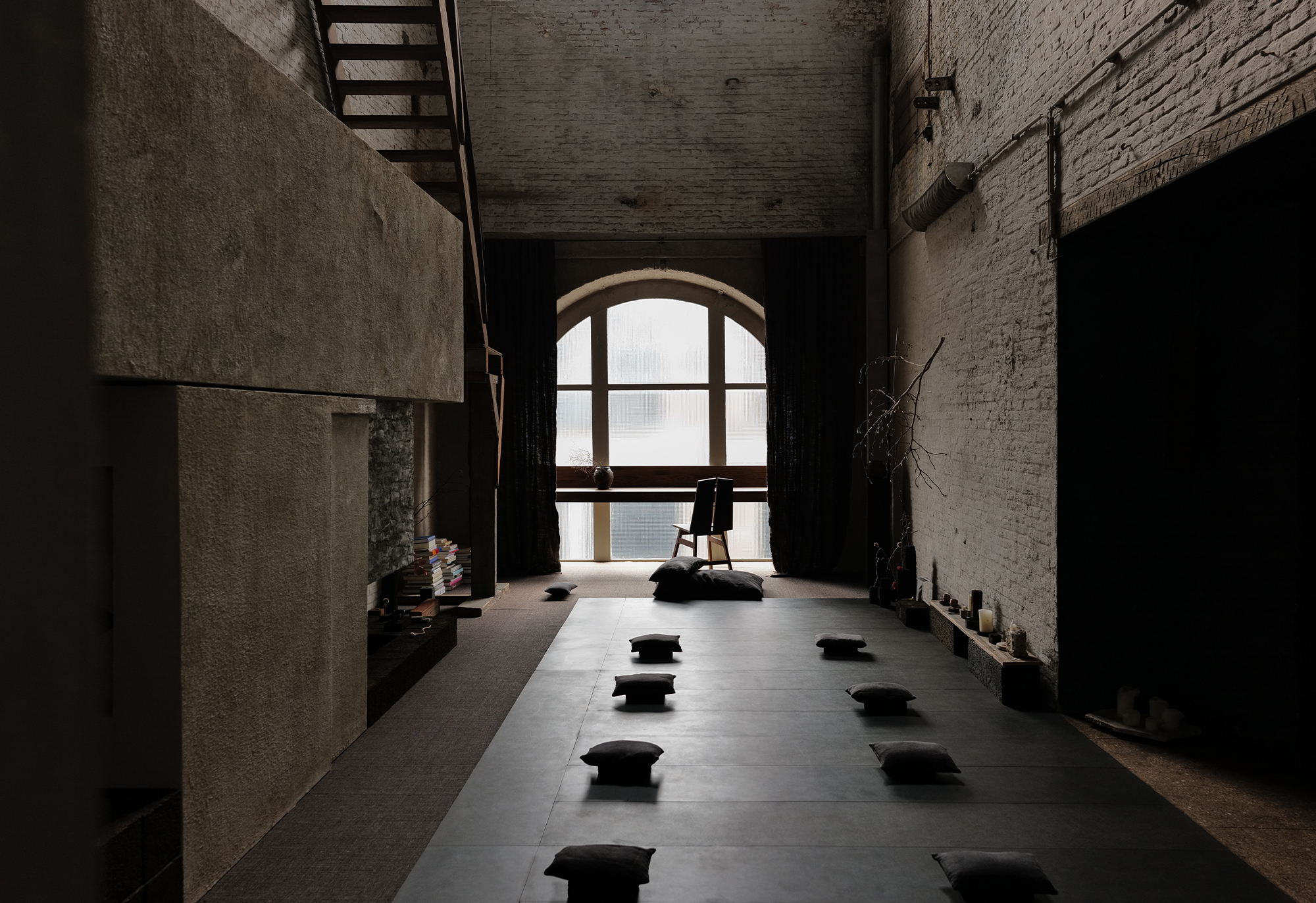 Navigating through the narrow, dimly lit stairs, we followed Cedric deeper into the heart of his studio. With each step, the outside world faded away, replaced by a sense of tranquility and introspection. As we finally entered the meditation room, bathed in soft, ethereal light, the tension of the journey melted away, replaced by a profound sense of calm.