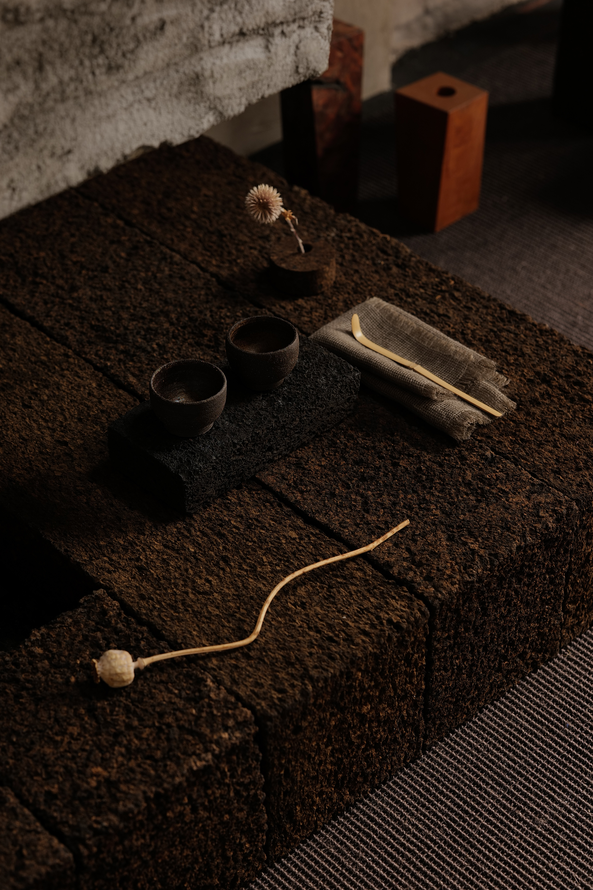 Upon returning to Antwerp, Cédric embarked on a quest to redefine his approach to design. It was during this quest that he discovered cork—a humble yet versatile material. Tracing the origins of cork from the rugged landscapes of Portugal, he reveals its transformation into versatile design elements. Cédric is devoted to ennobling this material and creating a raw and bold aesthetic language.