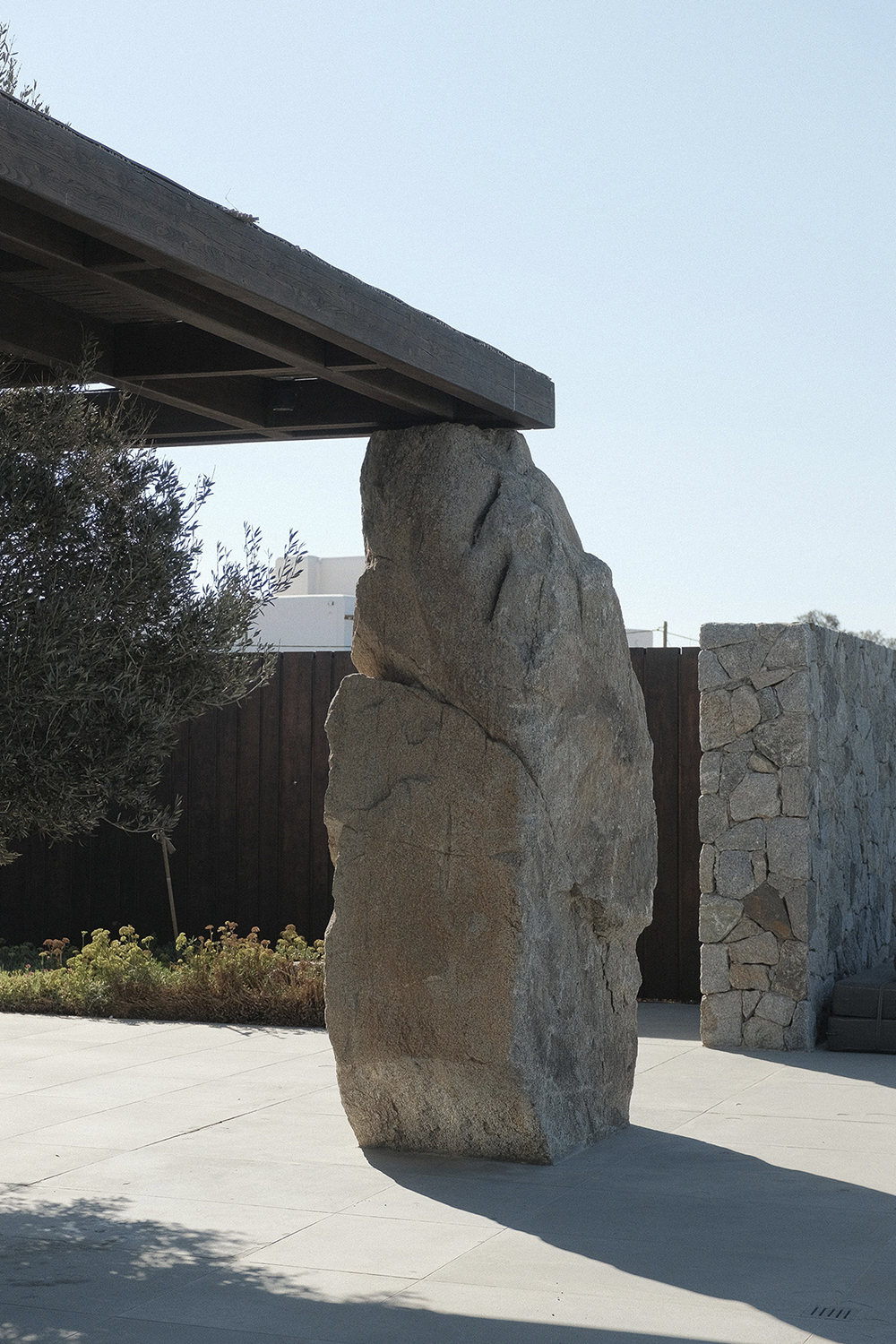 We visited this villa on a quiet early morning. The rough volcanic rocks spread out a geological epic at the entrance, and each mottled pattern tells the thousand-year-old memory of the island. The Karampatakis brothers and their numerous team of K-STUDIO, with the acumen of modern architects, respect and continue these ancient material grammars. They have transformed the stone walls from mere boundaries into a medium connecting the earth and the sky. Those seemingly random builds are actually precisely calculated frames for viewing. When sunlight penetrates the stone crevices at a specific Angle, the entire entrance hall turns into an installation art piece interwoven with light and shadow.
