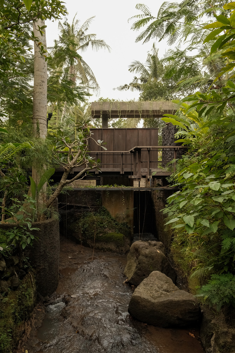Designed by Nataneka Architect in 2022 (opening December 2024), the site is bisected by a natural creek. On the high ground, the owner’s residence overlooks vistas; across the water, four villas and communal areas nestle on gentle slopes. A wooden bridge connects both worlds, while a horizontally grown tree at eye level screens the private quarters. "We added this tree deliberately," the owner states by the window. "Guests crossing the bridge now only glimpse riverlight through leaves. Amid Canggu’s architectural clamor, true challenge lies in becoming one with the environment."