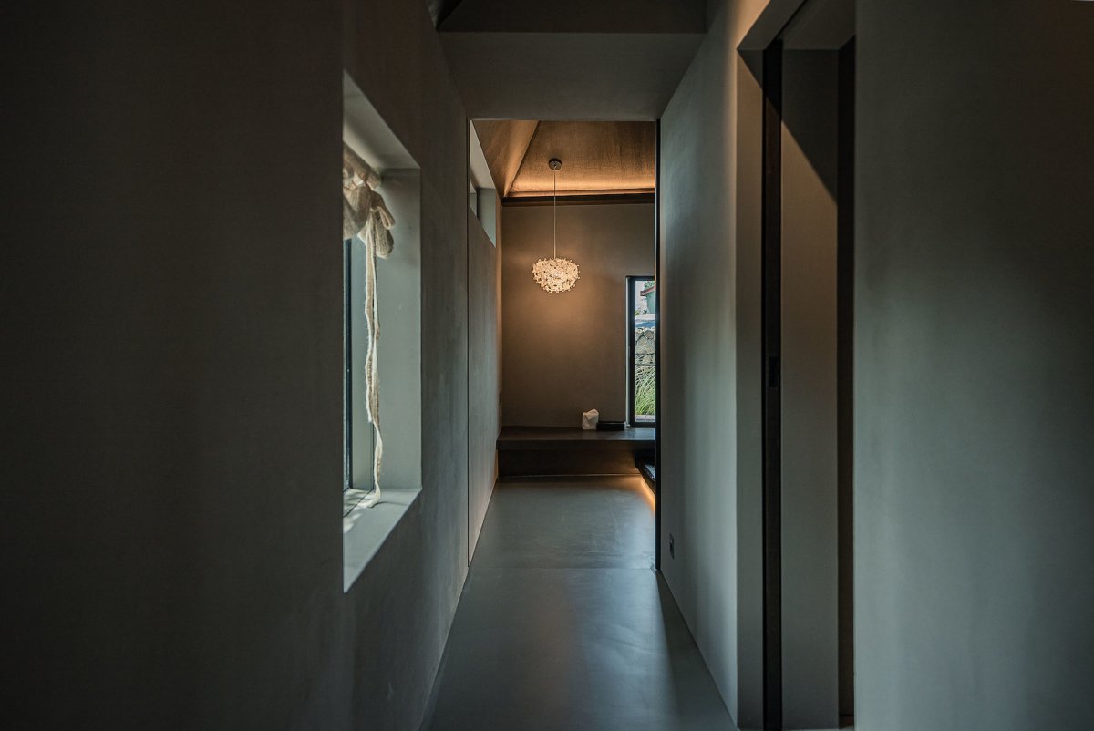The floor of the hall, designed with the theme of hanok pavilions, creates an open space where you can feel the wind in the moon and communicate with the surrounding villages. One side of the floor of the hall is under the broad roof, and the plan is to feel the landscape of the waning moon, the wind and the trees in the field. The two plain sized bedrooms are planned to guide a calm sense of space with low sightlines and dark colors, and to focus attention on the greening of the trees through skylights.