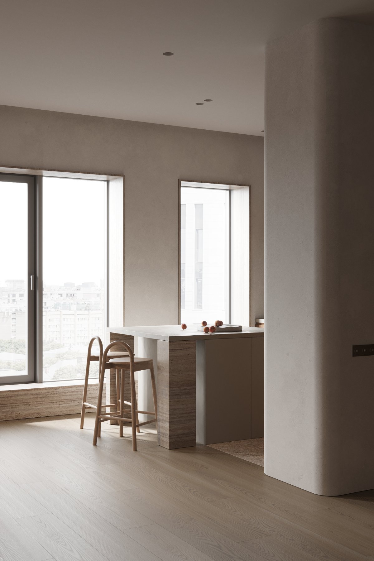 Russian interior design studio ZE Workroom Studio presents their latest work, the SK Residence, with a minimalist design that adds texture and comfort to the home's simplicity.