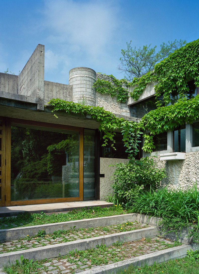 Born in Venice in 1906, he graduated from the Royal Academy of Fine Arts in Venice and went on to be the director of Venini Glassworks from 1932 to 1947. It is there that Scarpa’s distinct approach to materials and craftsmanship began to emerge. His travels to Japan and the influence of other architects he admired — he idolized Frank Lloyd Wright — began to inform his work. The strict angular composition of his structures was always complemented by a spiritual element. No project was alike, and each had a unique history and strong connection to its surroundings. In 1968, Scarpa took on his final project, a private burial in the Brion Cemetery near the Dolomite Mountains. The tomb would end up being the architect’s final resting place.