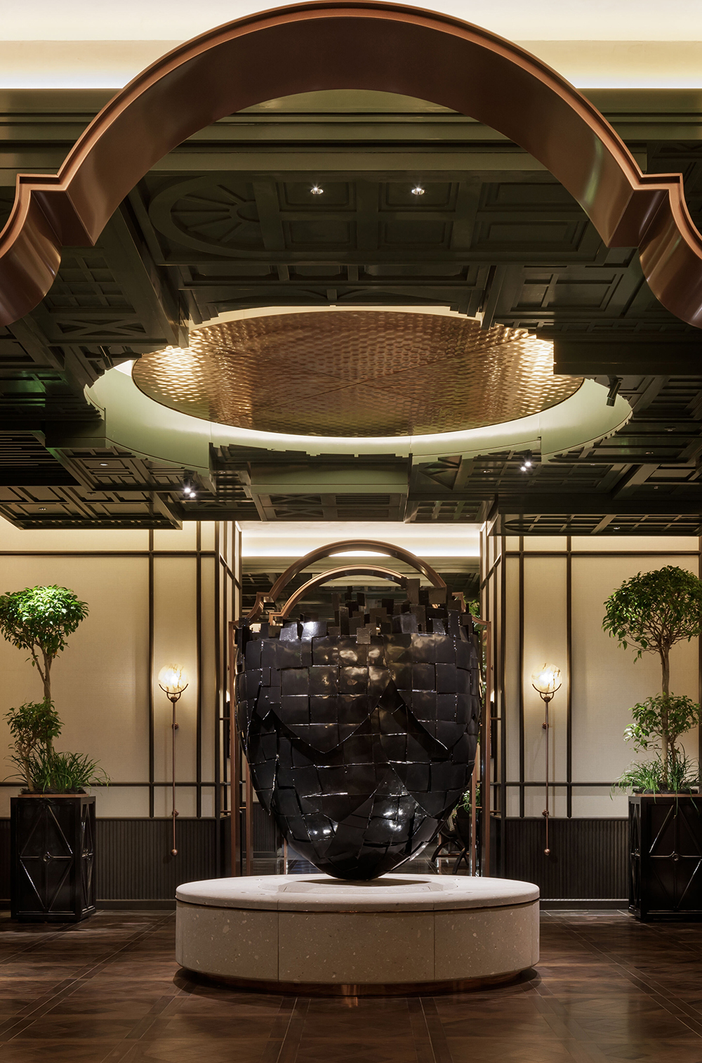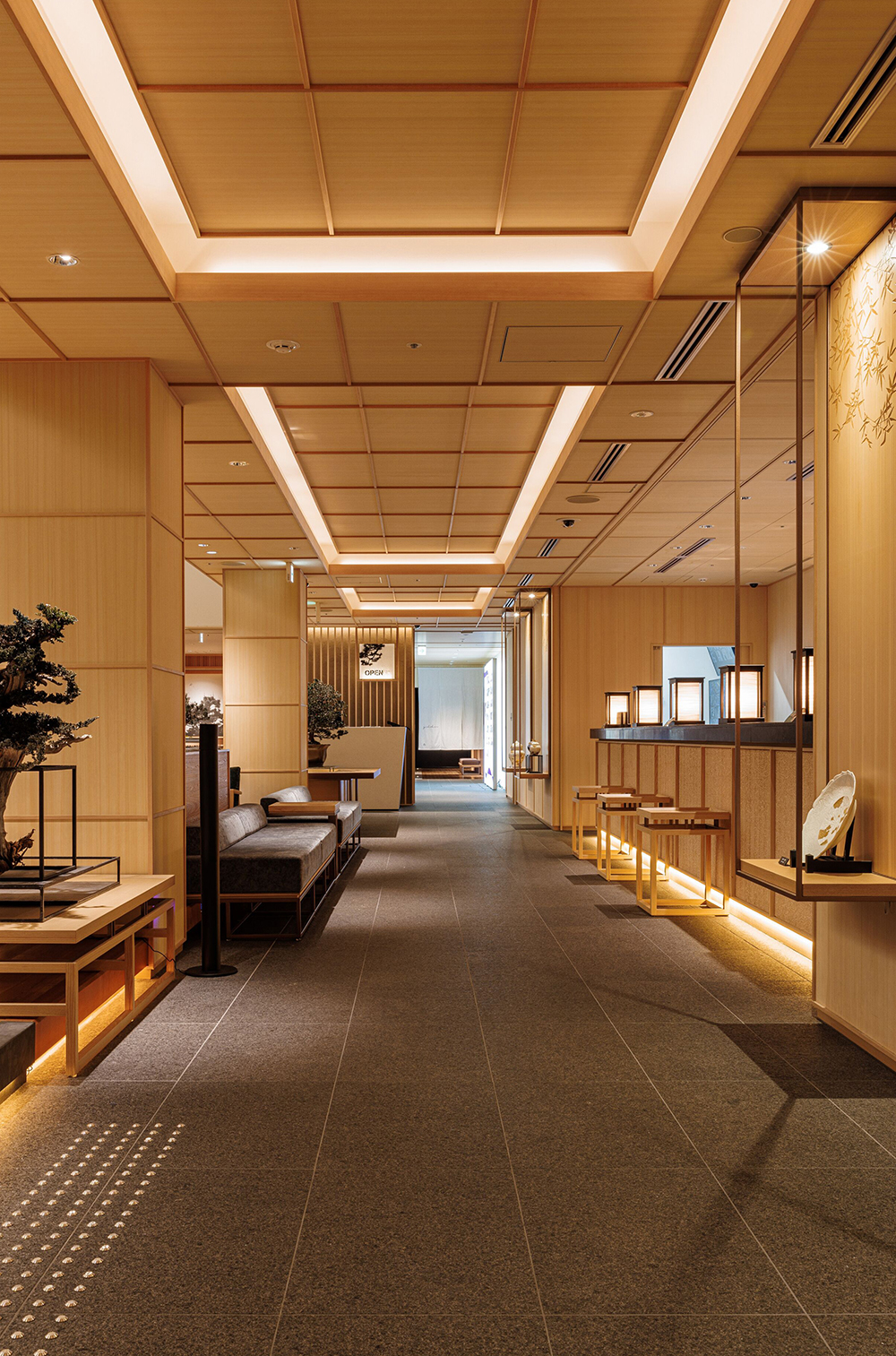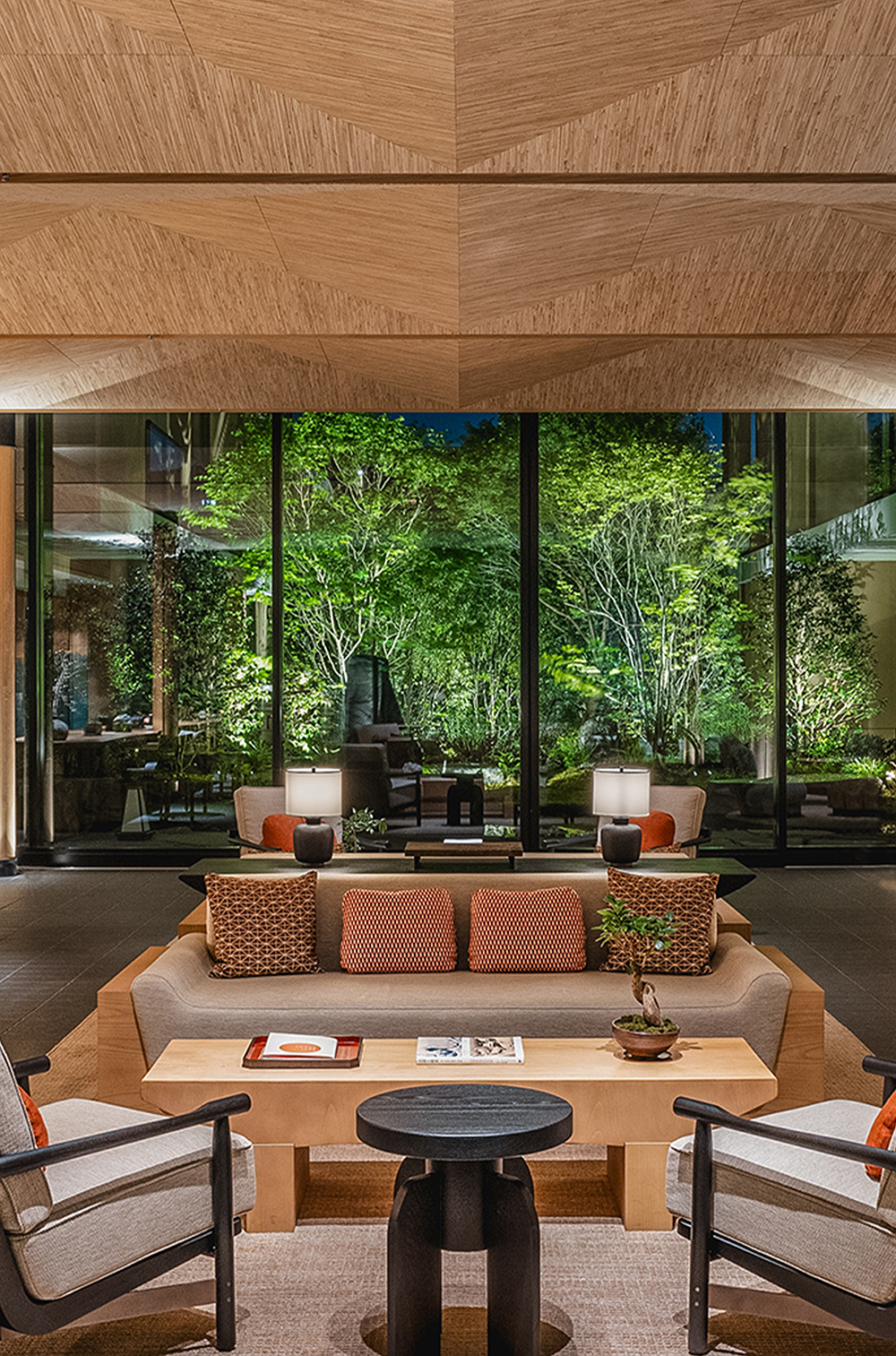 Inspired by The Tale of Genji and ancient folklore, the design reflects the Heian-era aesthetic of "Miyabi" (elegance). Blink Design Group reinterprets courtly elegance, traditional décor, and folk motifs through a contemporary lens. Abundant natural materials enhance the connection to nature, even in the city center.