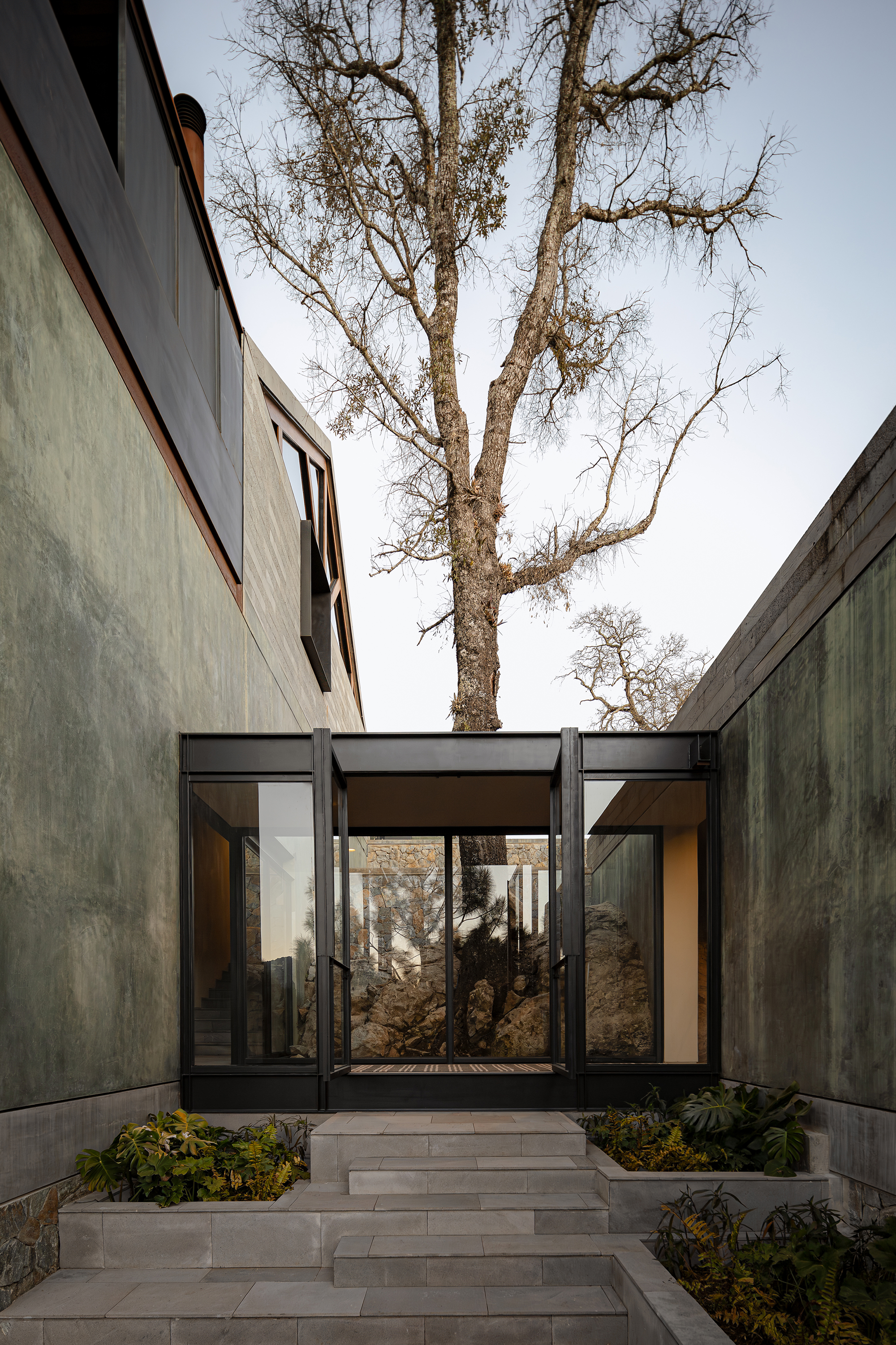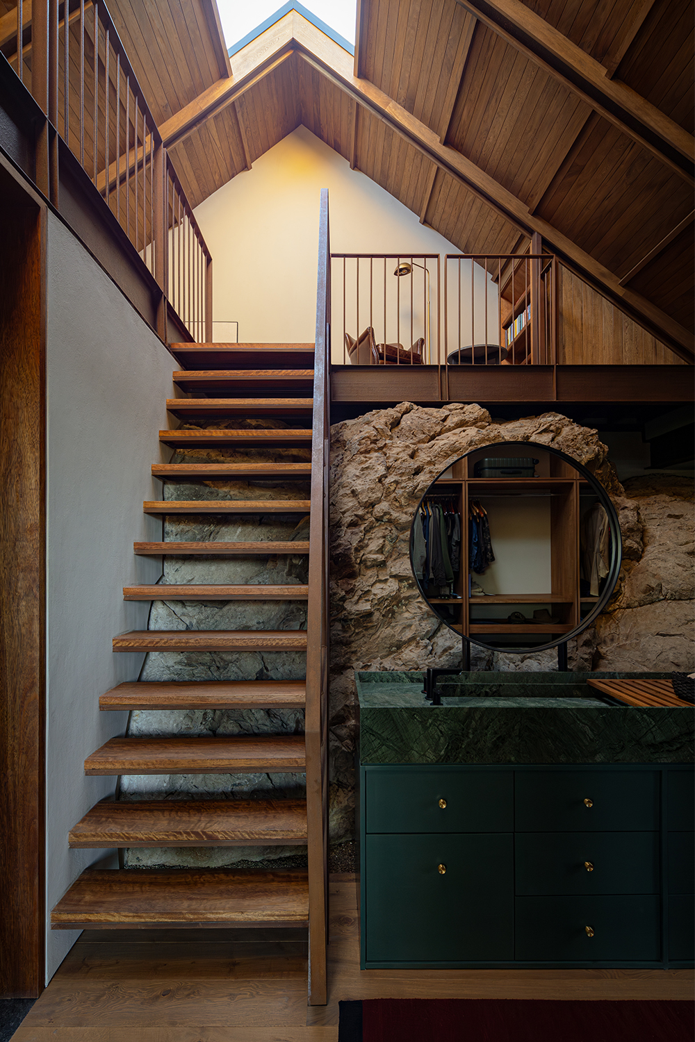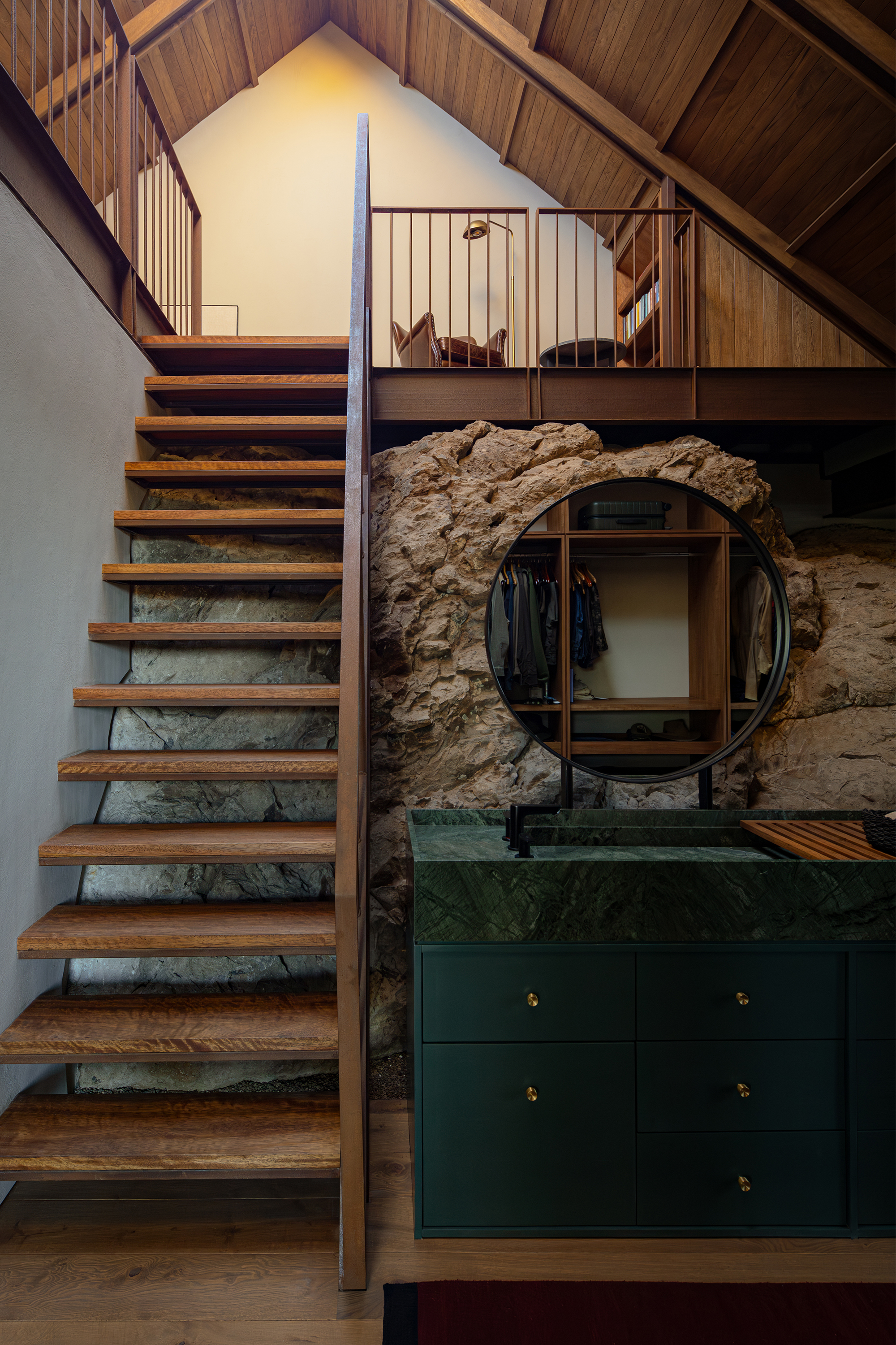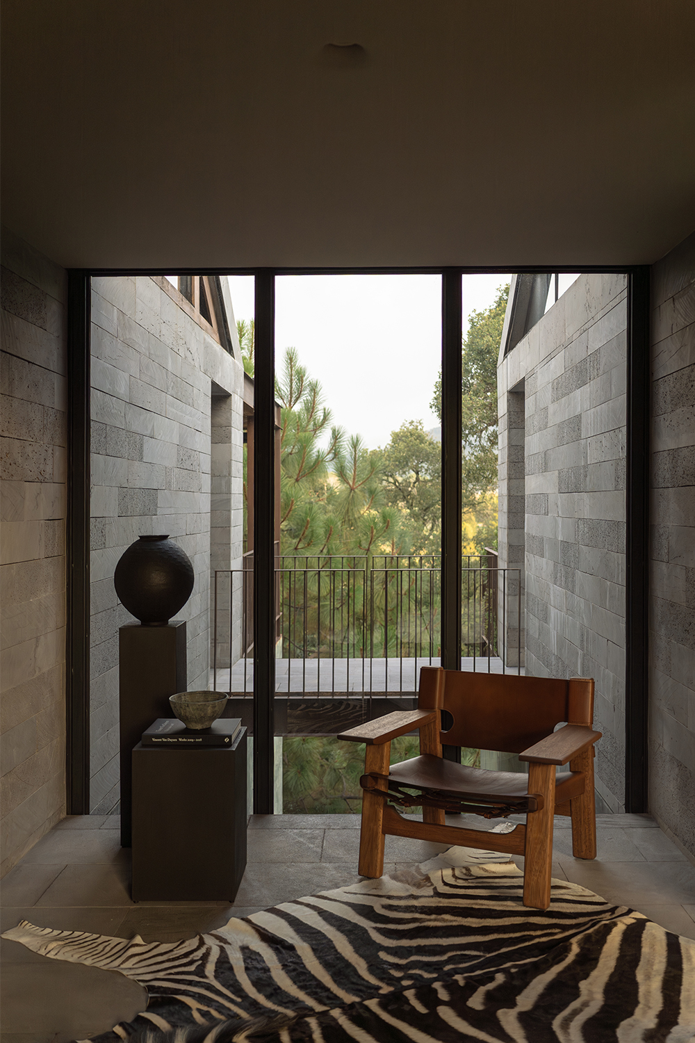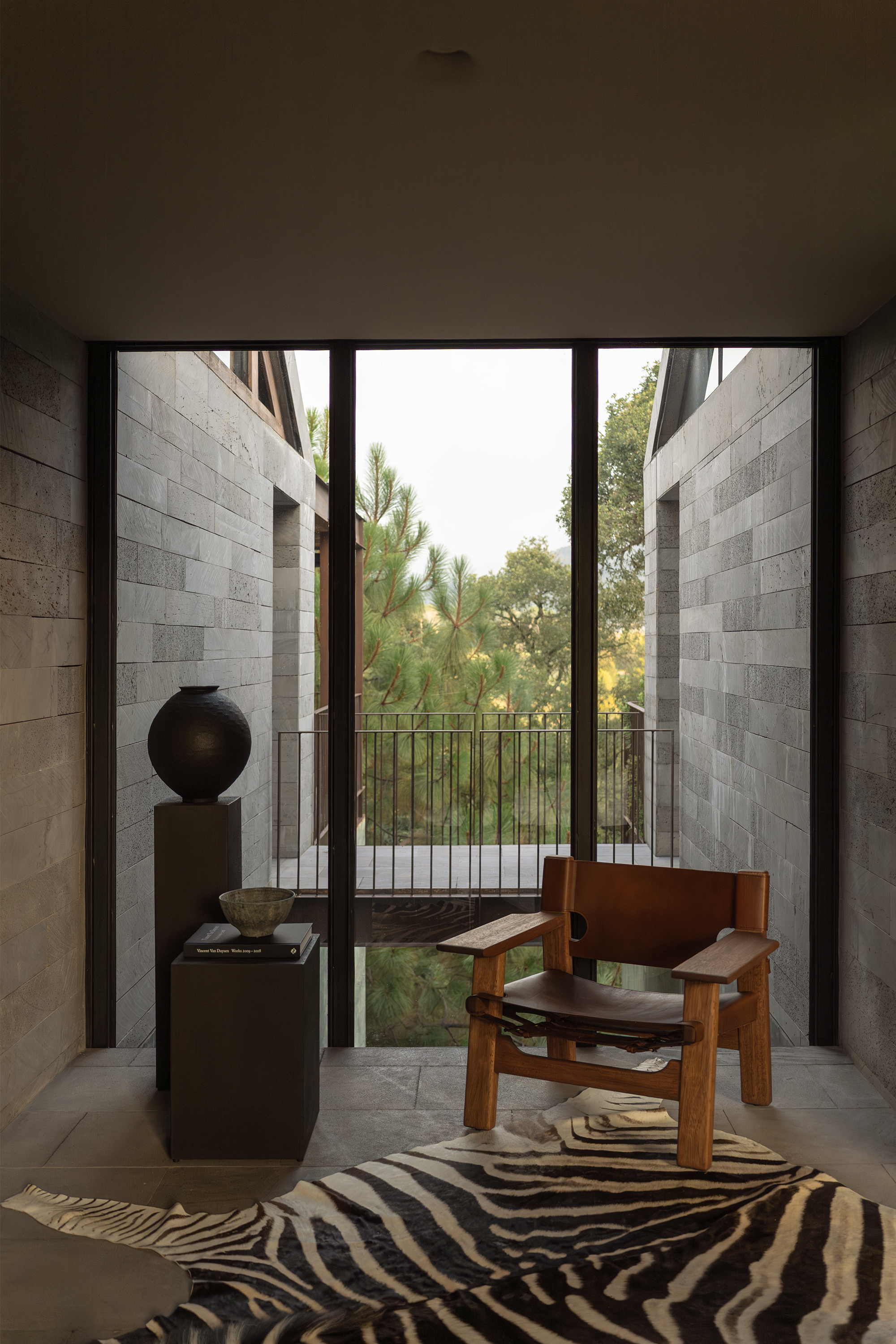 The interior design of Casa JR is a thoughtful and sensitive expression that engages in close dialogue with the architecture and the natural environment of Tapalpa. Seamlessly integrated into a rugged terrain with rock formations, CENTRAL’s interior proposal seeks to amplify the spatial experience through textures, materials, and atmospheres that evoke calm, warmth, and timeless sophistication.