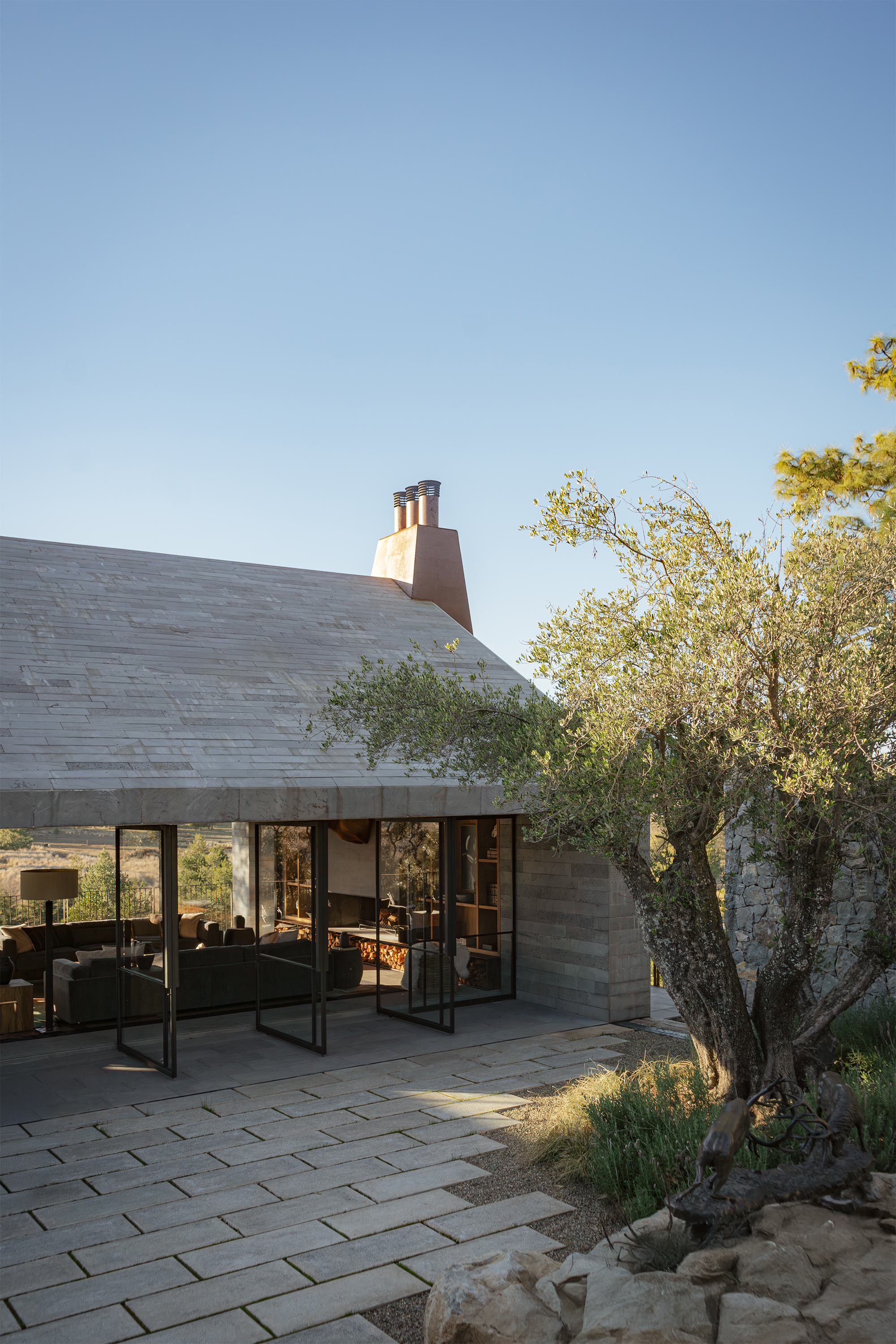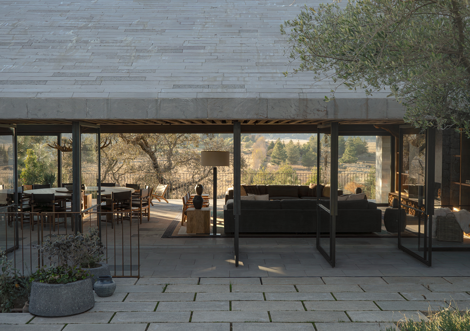 The interior layout responds to the intention of creating distinct experiences: intimate spaces for rest, featuring comfortable furniture and soft textiles, and social areas designed for gathering, where furniture arrangement encourages fluid dynamics and interaction. Decorative lighting plays a key role in defining the atmosphere; floor, table, and wall lamps accompany the shifts in natural light, particularly during the morning fog and the sunsets over the terraces.