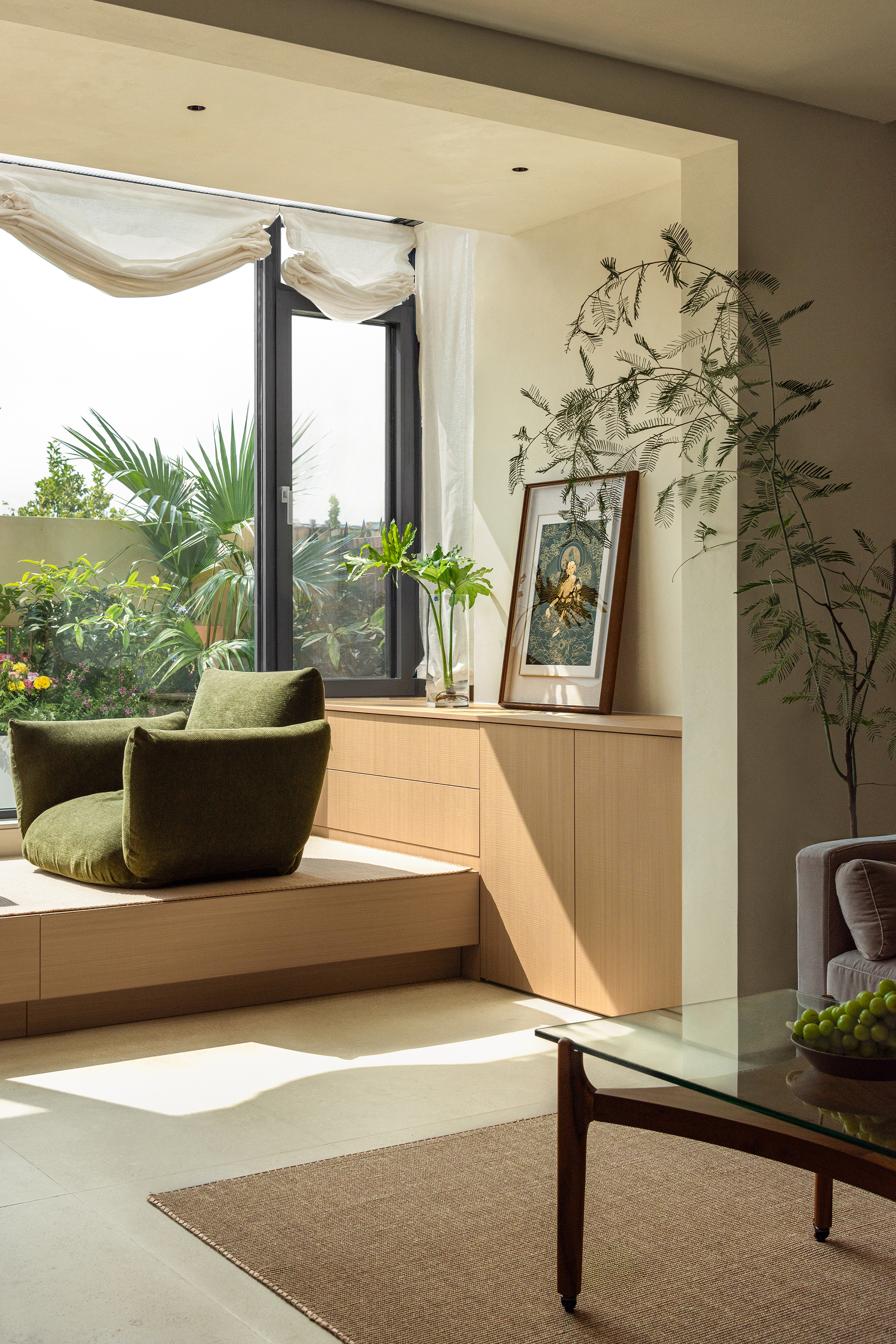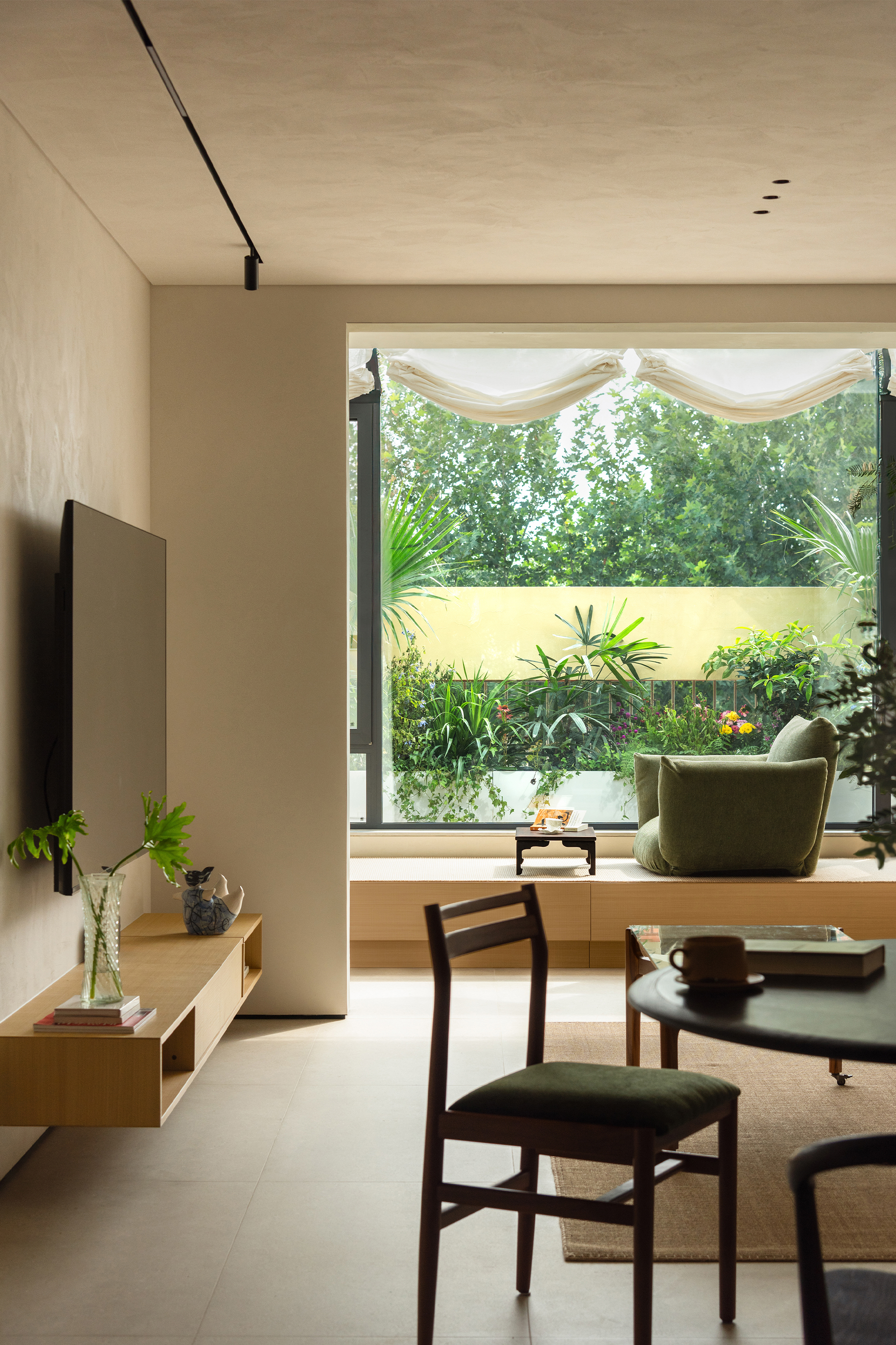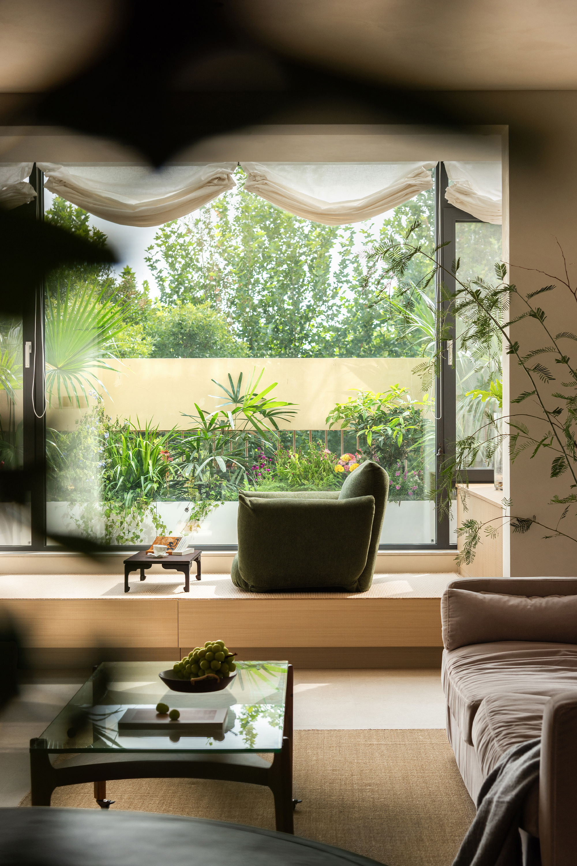 The terrace is not merely a place for rest, but an ecological extension of the home. Plants grow and change with the seasons, embedding time into architecture.From both the living room and bedroom, views extend toward the terrace, forming a dialogue of “a home within the landscape, and a landscape within the home.”