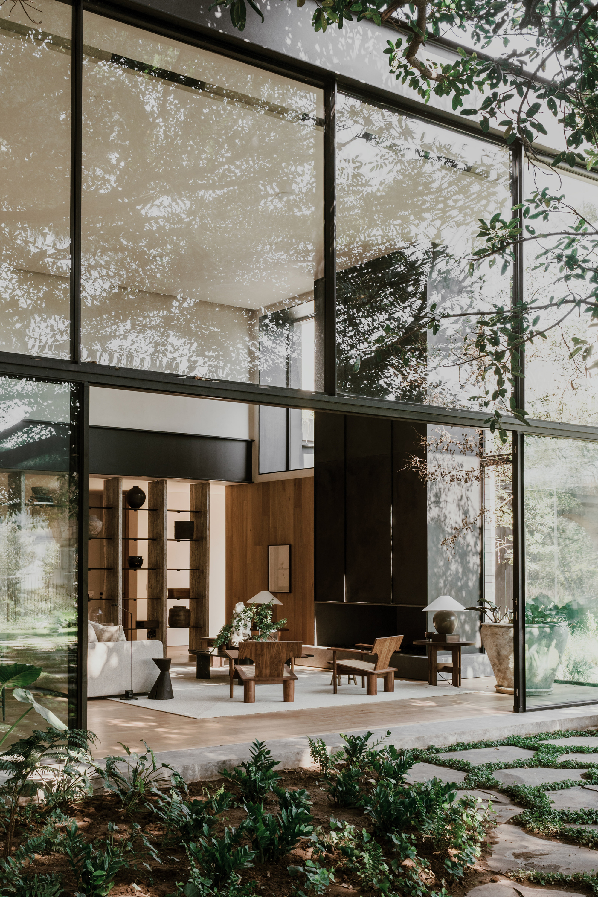 In Aagnes Studio’s early explorations, the house was at times broken down into independent volumes scattered among the shadows of the trees, and at others condensed into a single, weighty mass. Eventually, they realized that the approach most attuned to the spirit of the project was to let the house follow the rhythm of the garden—adopting a more expansive layout that allows its inhabitants to “encounter” the garden through different spatial moments. At one end, an open and sociable atmosphere unfolds; at the other, where the trees rise tall, the mood naturally shifts toward intimacy and quiet. In Mexico, a house and its garden are never merely spatial constructs. They are a refuge for the soul, a vessel for individuality, and a place where everyday life naturally takes place.