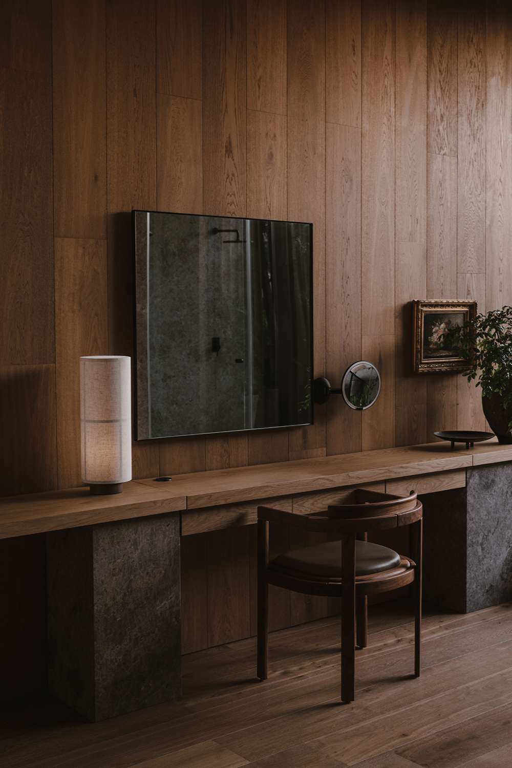 Dark wood, light marble, stucco walls, and metal are the most recurring materials in Casa CO, naturally creating tension with light, as if inviting it to shift between different states—to be absorbed, reflected, or softened. Yet what fascinates the studio most is precisely light’s untamable nature. As Aagnes Studio explains, “Light cannot always be choreographed. When it behaves in unexpected ways, it becomes a quiet and captivating spectacle—one that can only truly be witnessed through attention.”