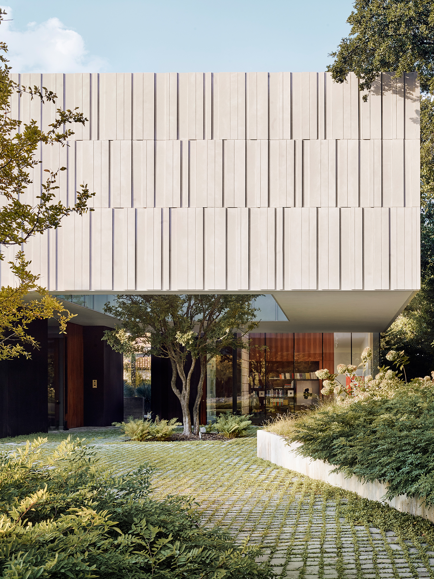 The Highland Park residence offers a counter proposal to the contemporary Tudor mansions and French chateaus of this tony Dallas neighborhood. On a property without any significant natural features or trees, and neighbors looming on either side, the three-level design creates an extraordinary environment for family and art.