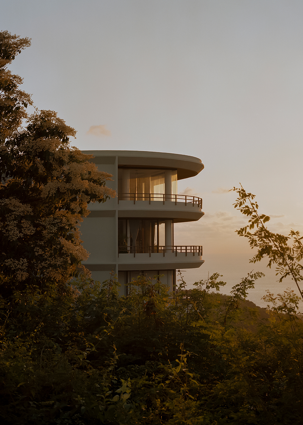 The relationship with the landscape is crucial in this project, with the ocean view being an essential visual focal point. To achieve a more seamless integration with the natural surroundings, a curve was introduced on both floors of each tower — an approach that not only lightens the buildings’ volumetry but also prevents them from appearing intrusive within the landscape.