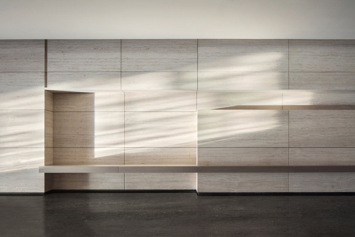 The light projected onto the travertine wall enlightens the mind, stimulates endless imagination and thinking...