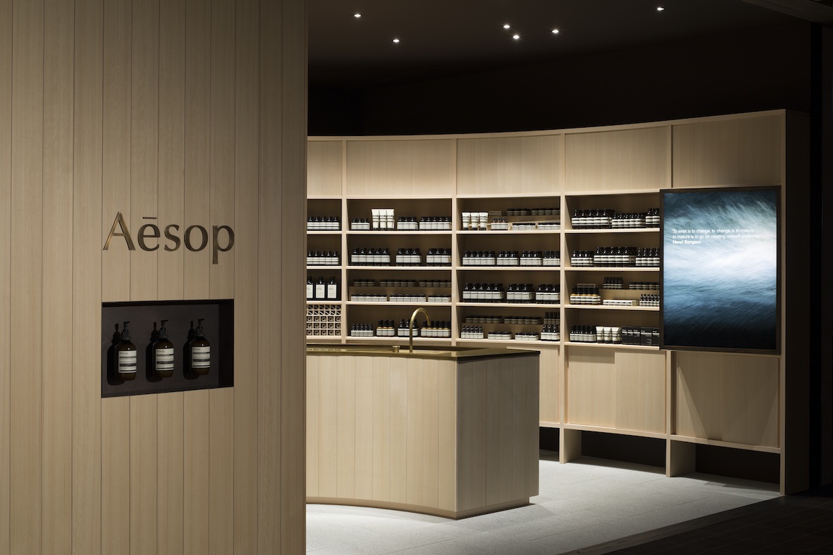 Rough this store Case Real aim to portray the centrality and a gradation of the history of Nihonbashi and the area. By situating each volume surround the center point of the store, their were able to design a simple but conceptual atmosphere. Case Real goal was to overlap the characteristics of this city and the world of Aesop, by the functions and products given to each volume.