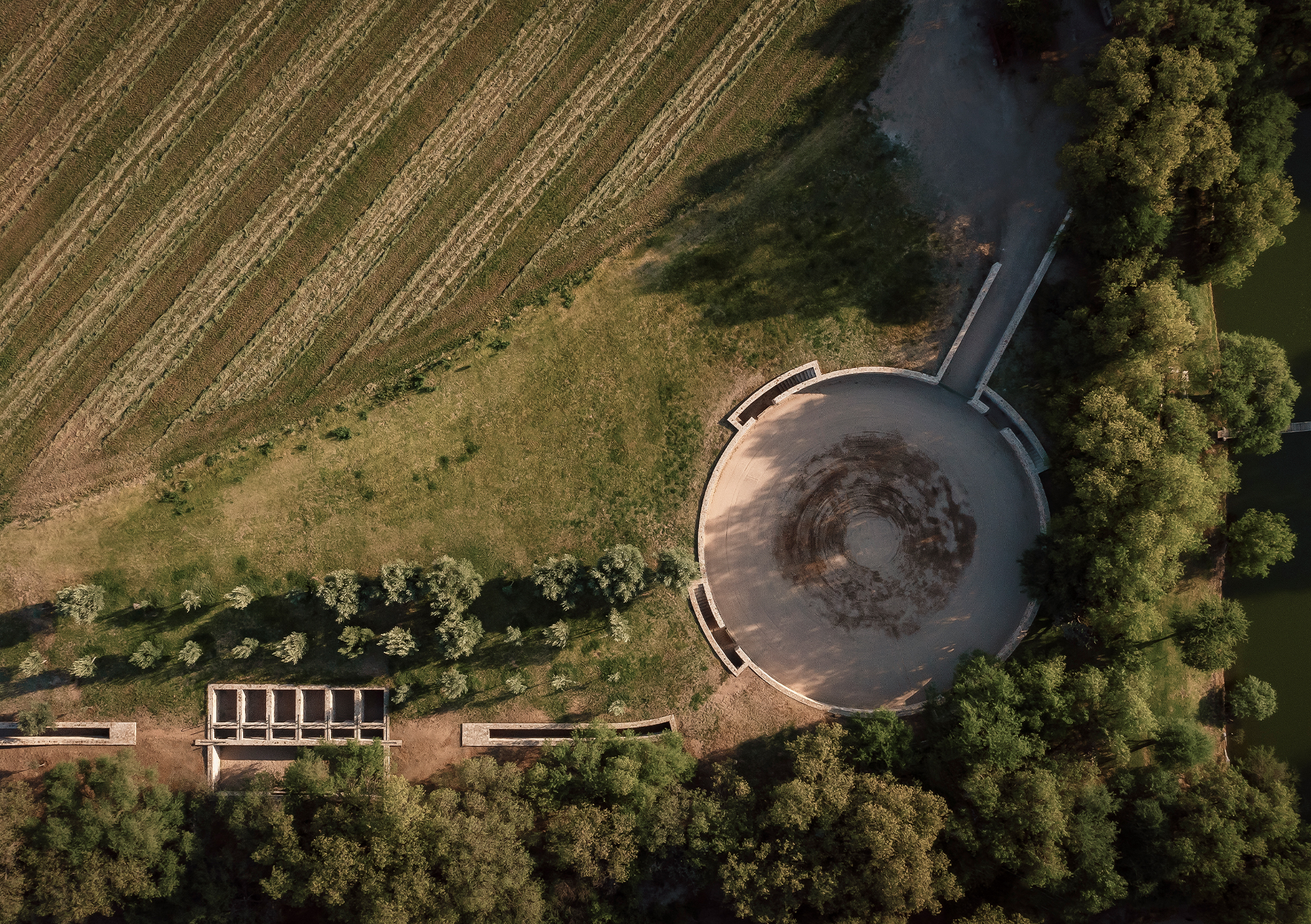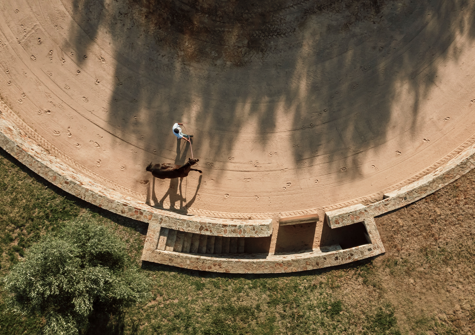 The commission involved building a tienta ring and an equestrian training area for the ranch. From the outset, the goal was to integrate the project into the terrain—not as an imposed structure, but as an extension of the landscape.