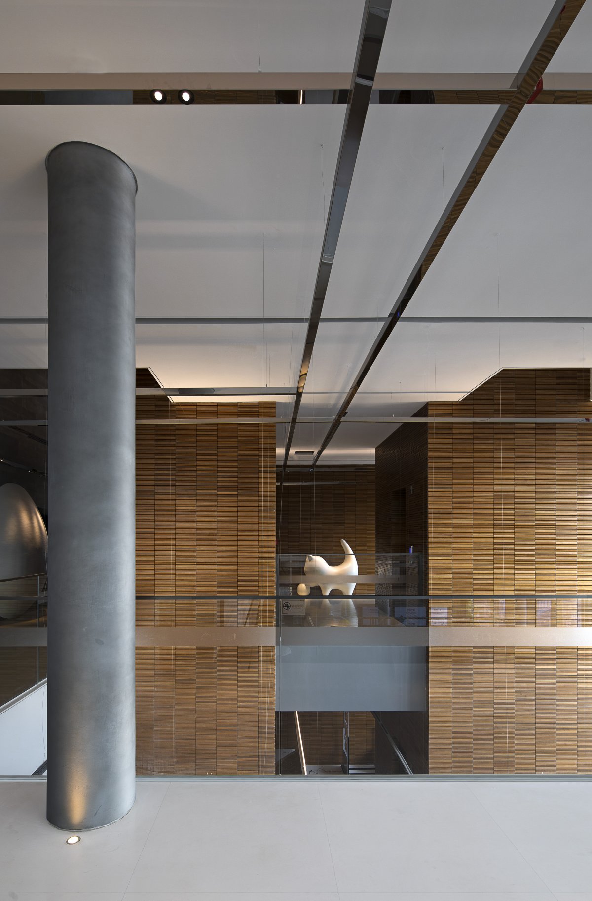 In order to make the library change from the normal bright light sense to the warm tonality of home, the lighting system in the form of layered grid structure emphasizes the depth and height of the space, thus effectively expressing the sense of order in the spatial attributes.