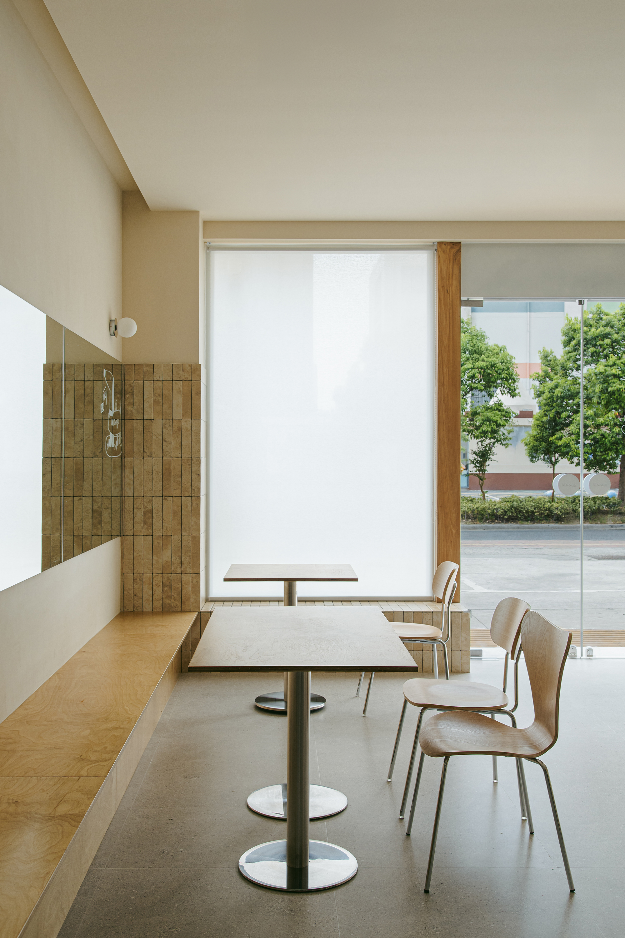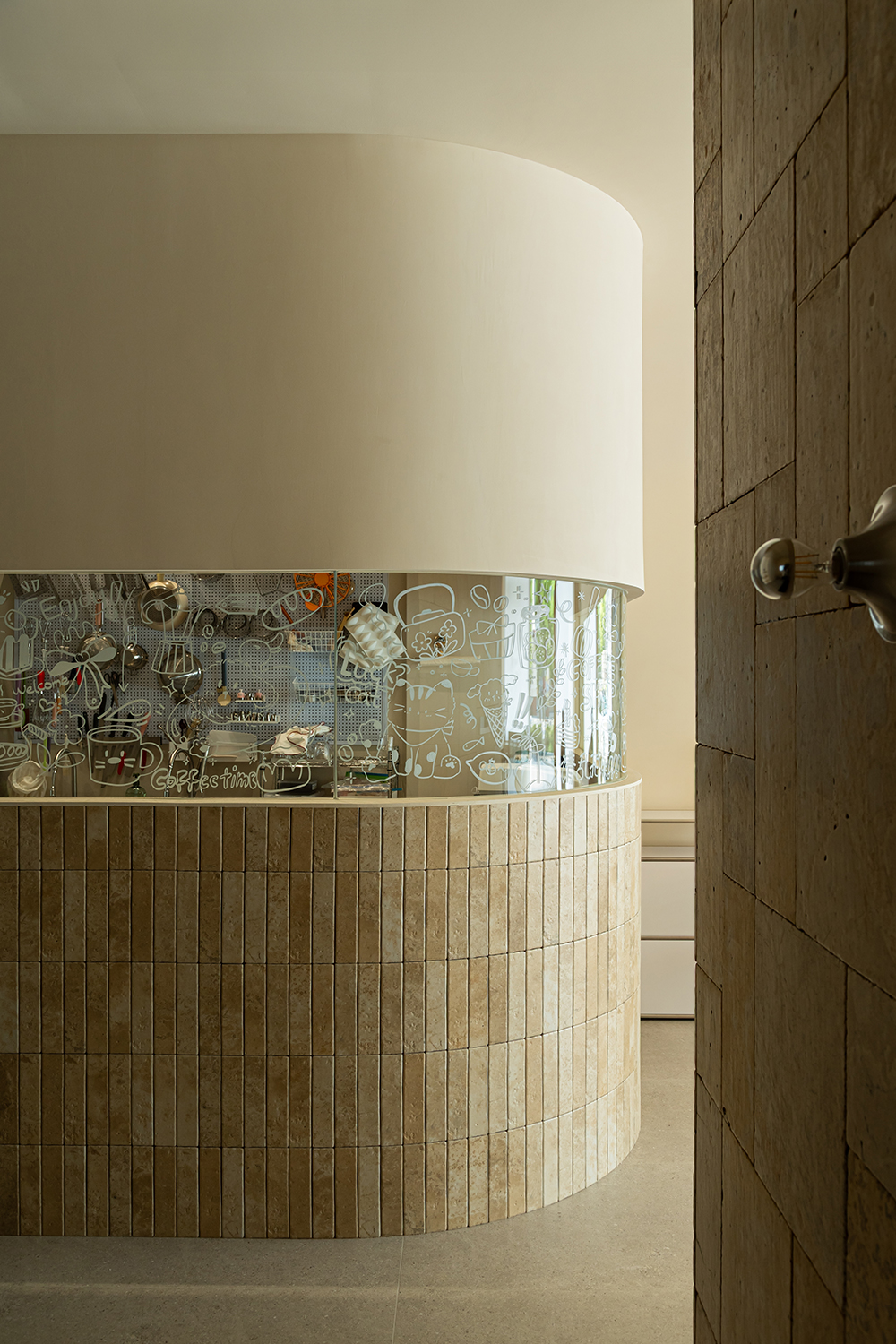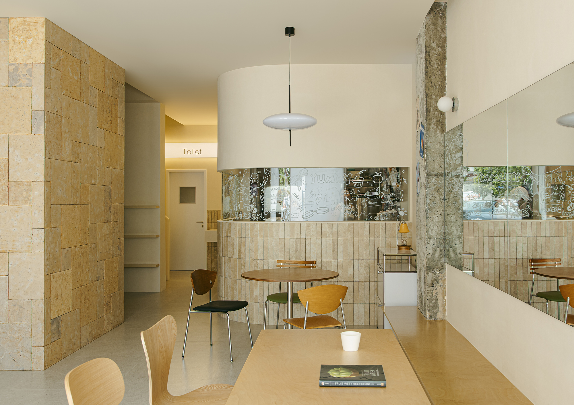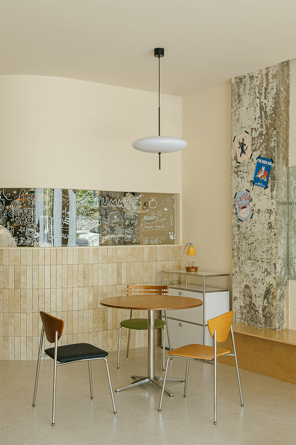 The semi-circular arc design of the dessert workshop breaks the stiffness of the square shape. The semi-circular shape resembles a macaron that has taken a bite. The splicing of different materials in the upper and lower sections not only distinguishes functional areas but also creates a visual rhythm.