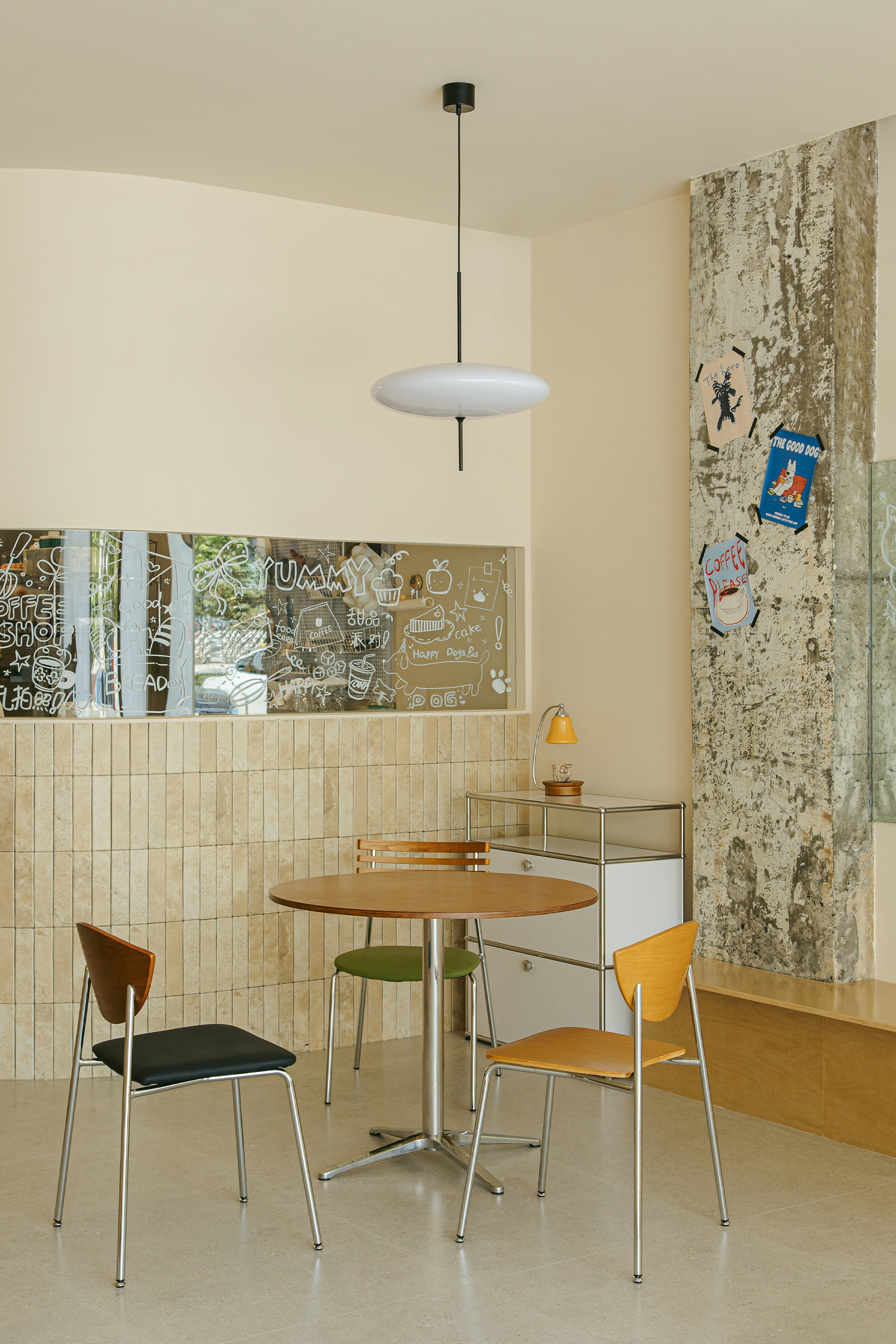 The collision of wall paint and strip bricks presents a soft texture. Through the switch of materials, the space is silently divided. Let the space be filled with exquisite layers of detail, where rationality and casualness blend perfectly. Behind the open bar counter, a busy figure is casting spells among the glassware. The entire mirror on the wall infinitely replicates the sweet working scene, making the entire space exude a transparent texture in the interplay of reality and illusion. The original columns deliberately retained by the designer are like witnesses traveling through time and space. Form an interesting dialogue with modern dessert-making techniques, quietly telling the essence and power of architecture.
