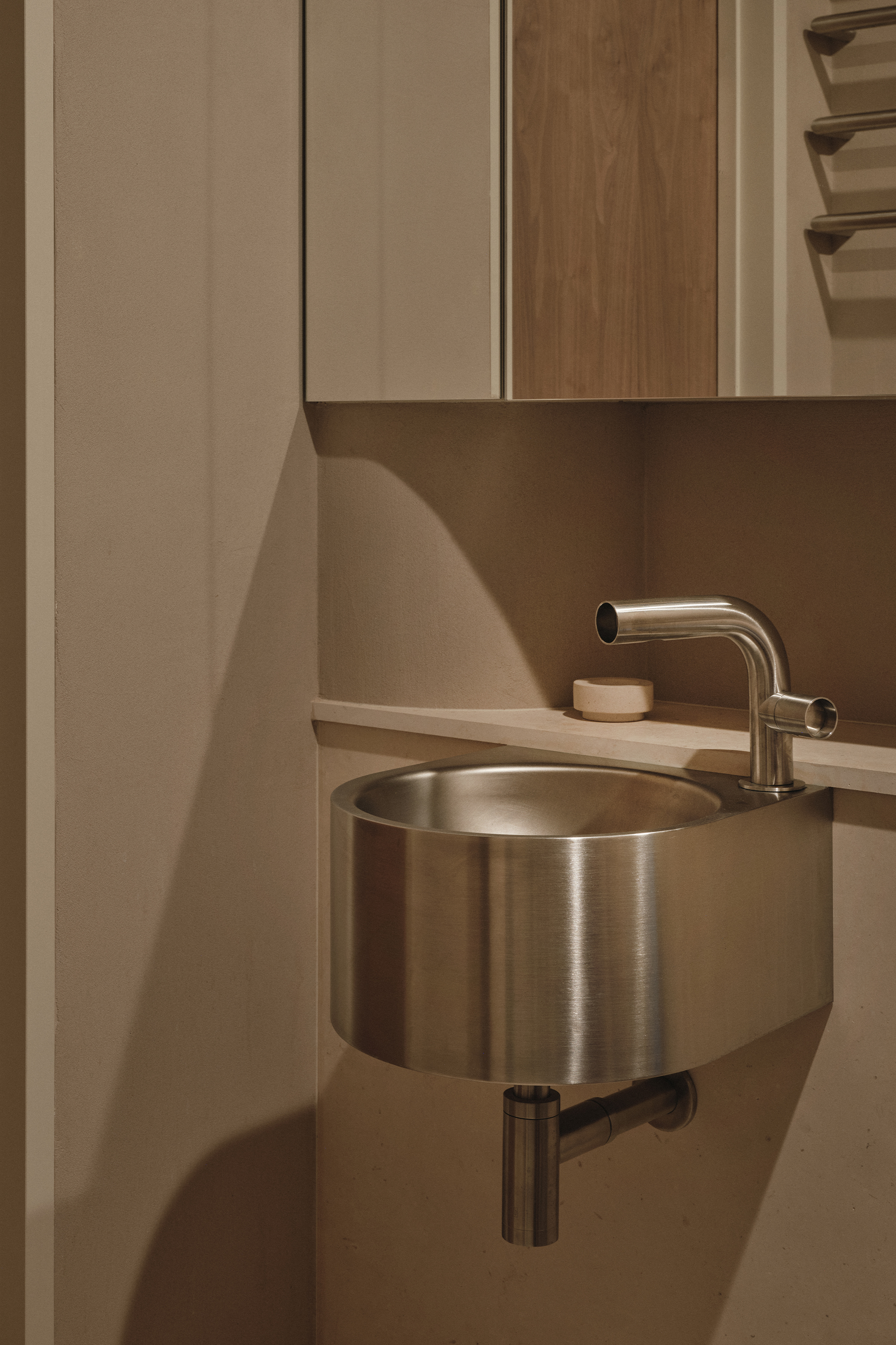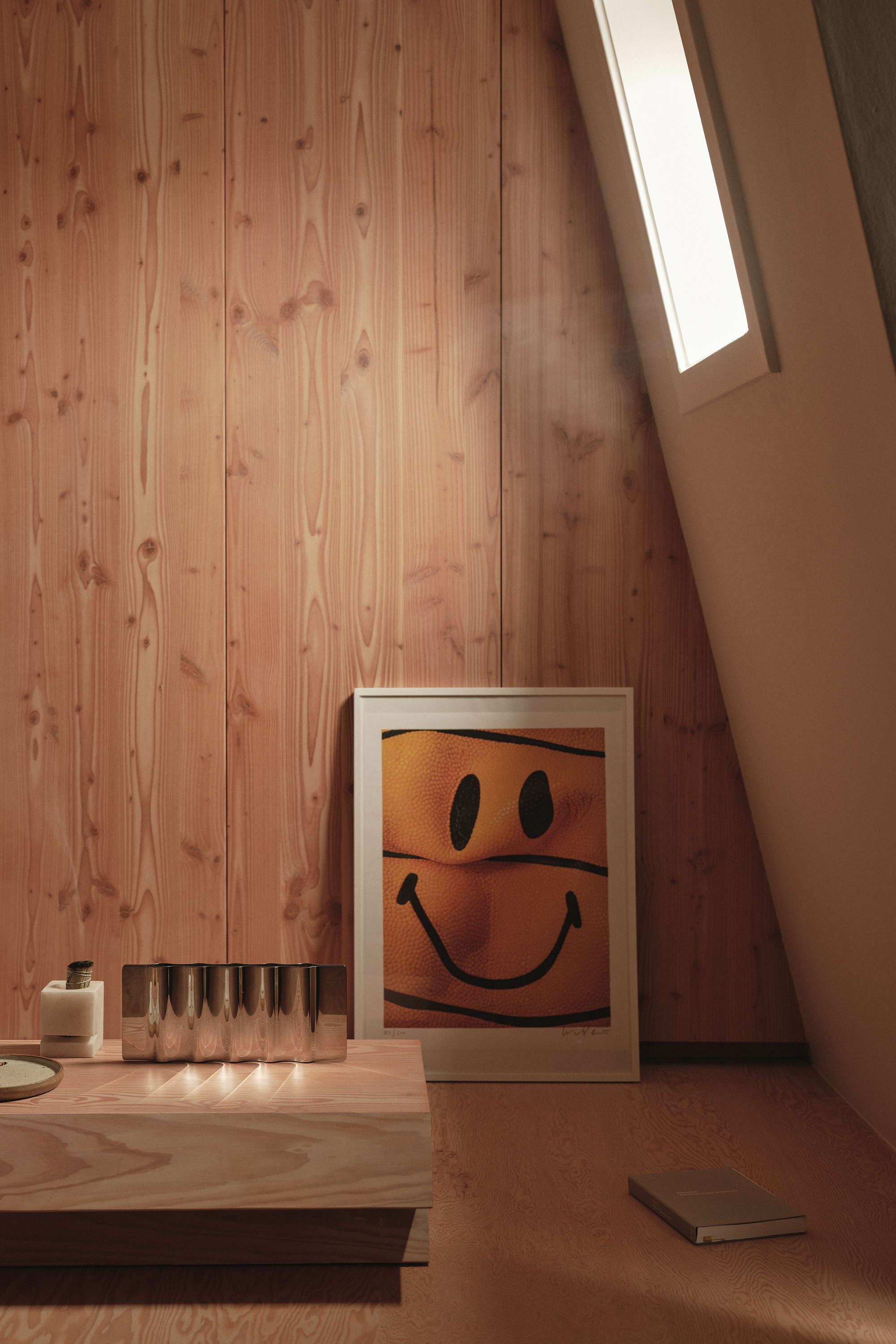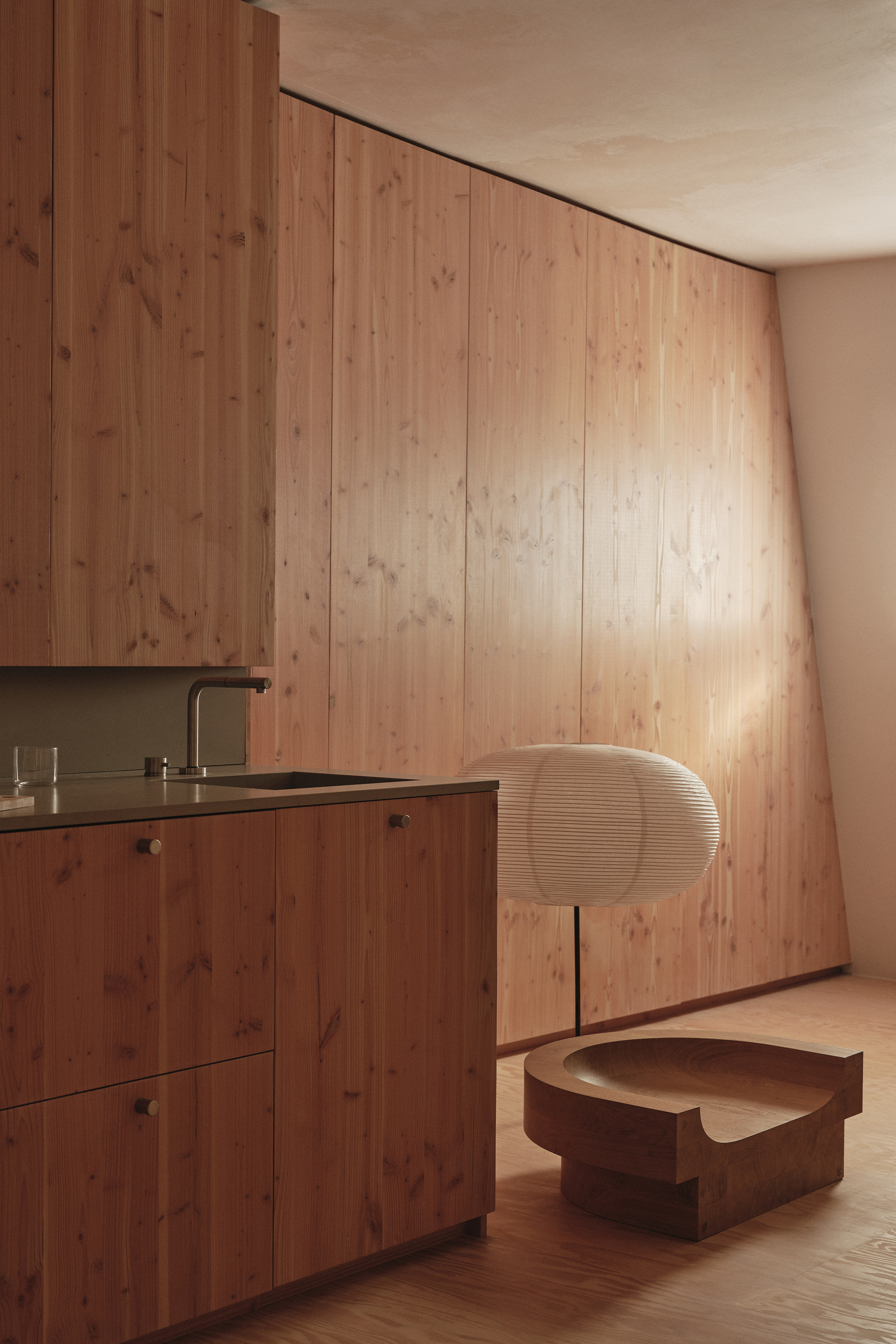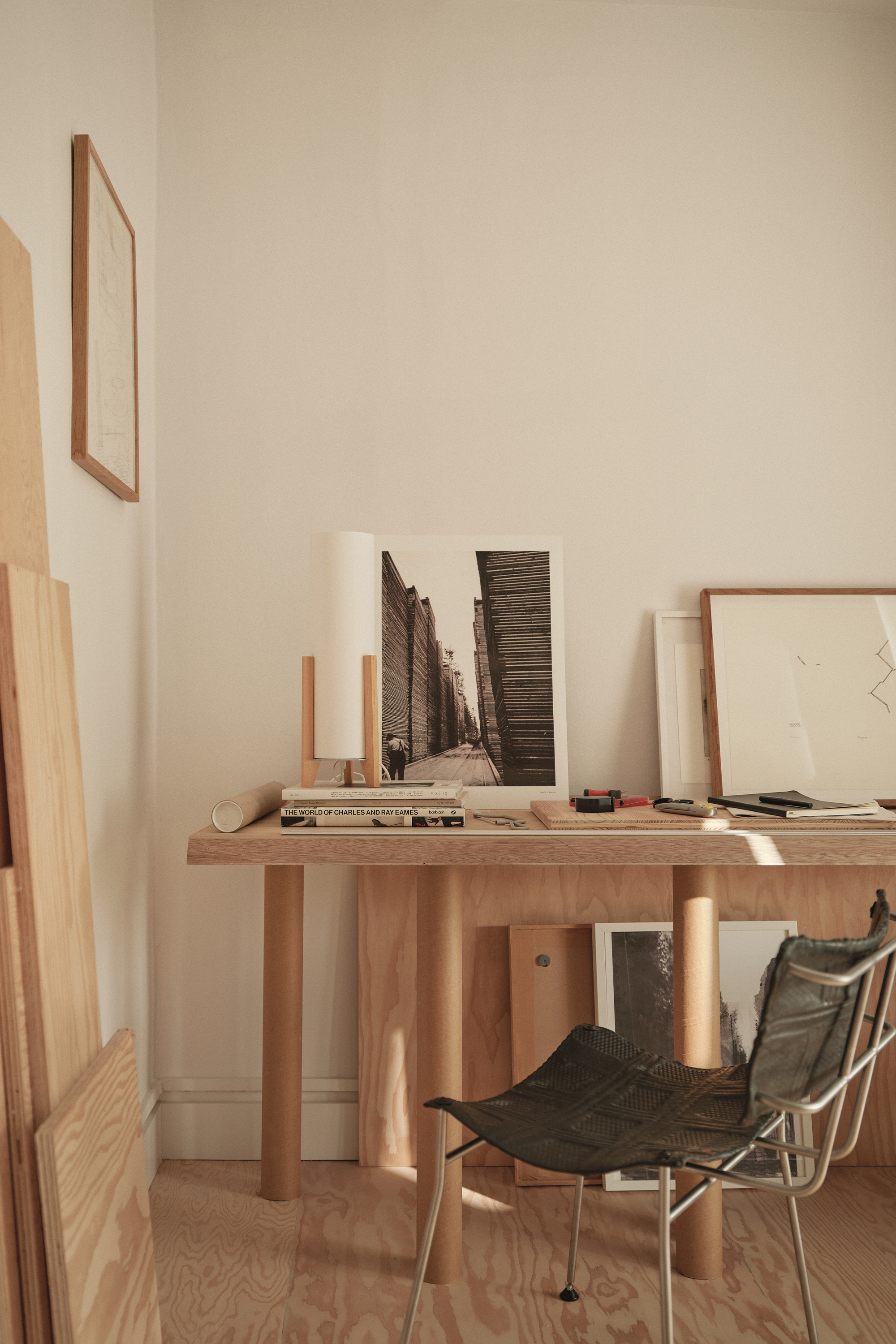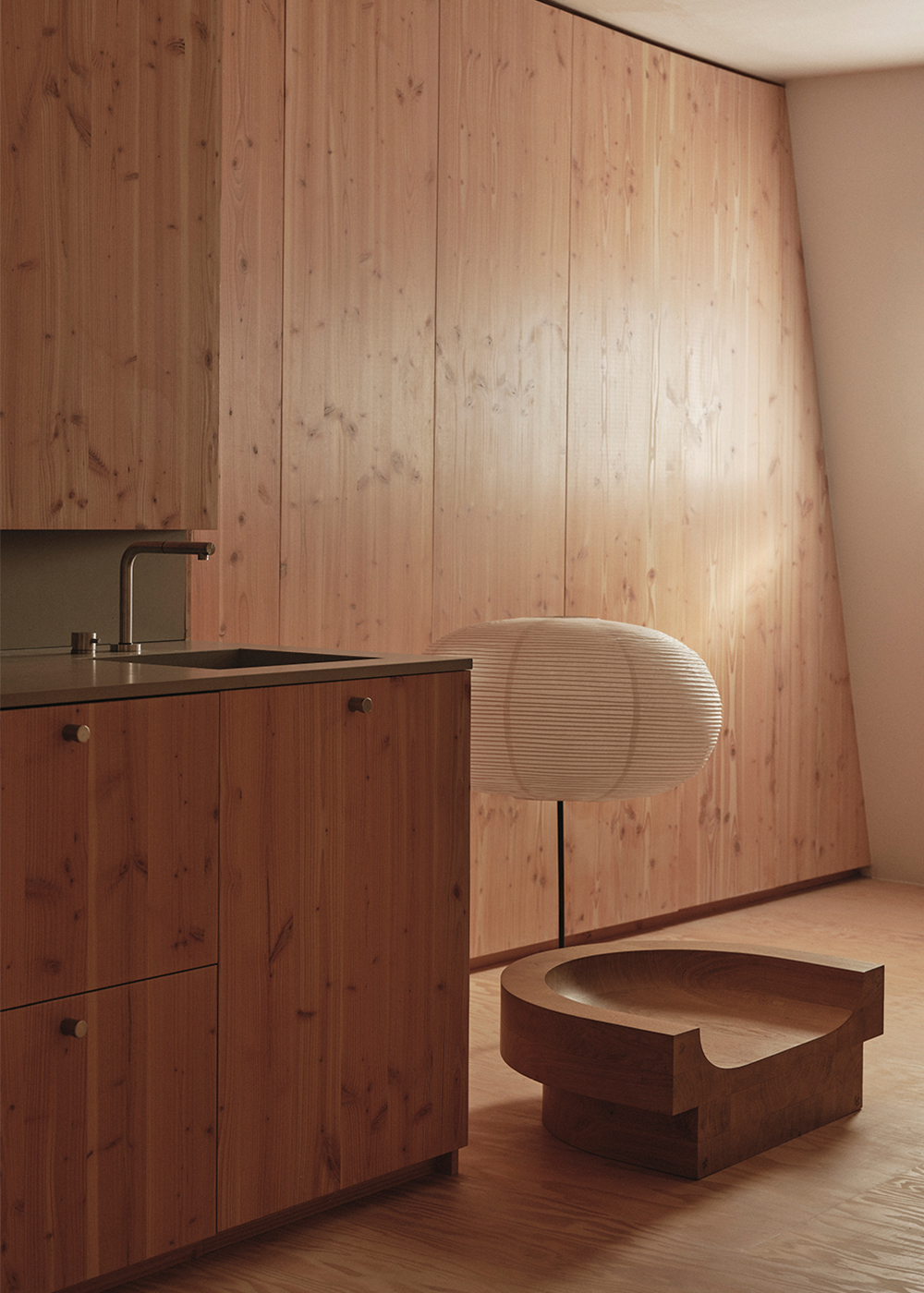 The main bedroom opens up to the kitchen through a full height sliding door where borrowed light fills the space. A study connected from the corridor doubles as a place to make, often filled with other discarded materials that are soon to become more experiments. Lastly, the project offered the chance to make new objects and items that are part of Benni’s interest in furniture and music. A stacked coffee table acts as centre-piece and is part of a new collection the studio is developing, while a one-of-a-kind speaker (also in douglas fir) designed with Friendly Pressure and Our Department are a key addition that completes the home... for now.