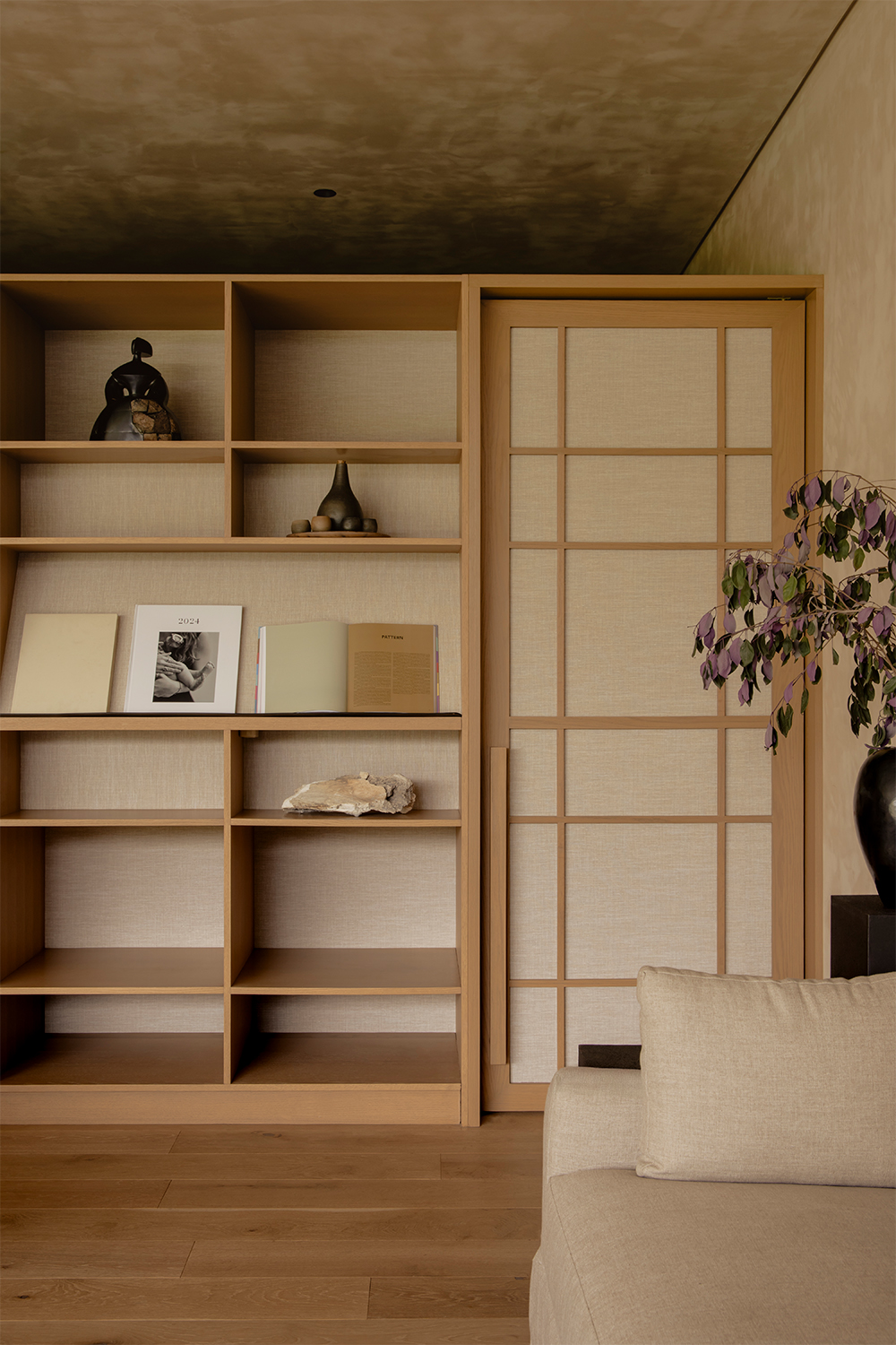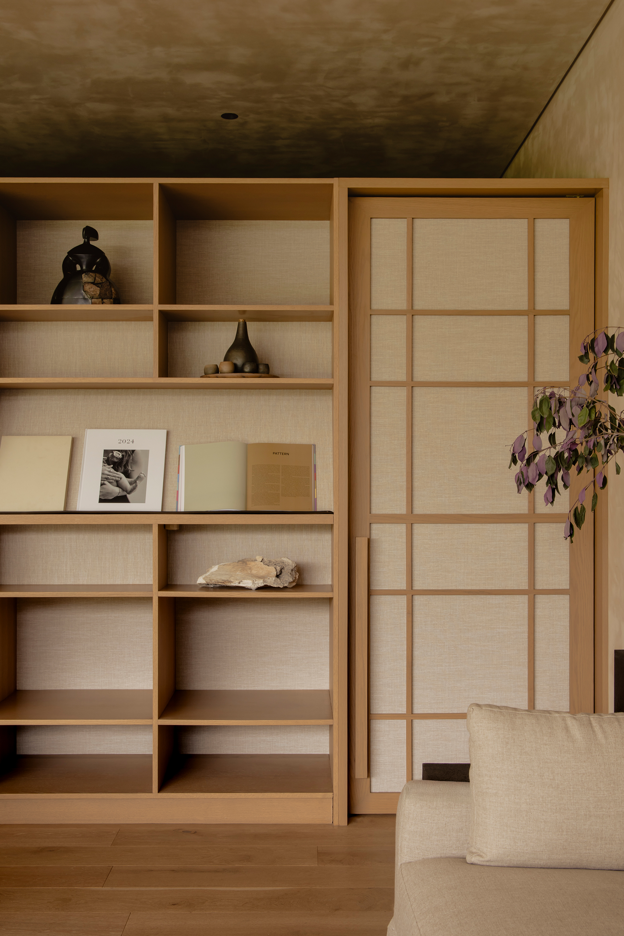 No space is reserved for a single occasion; the living room is not just for guests, nor is the dining room only for large gatherings. Everything can be transformed according to the moment and the desire to inhabit it. The heart of the social area is marked by a large bookcase, waiting to be filled with memories, books, and objects with history. The intention was always to give the home a soul, inviting those who live there to take ownership of the space, enjoy it, and make it their own every day.