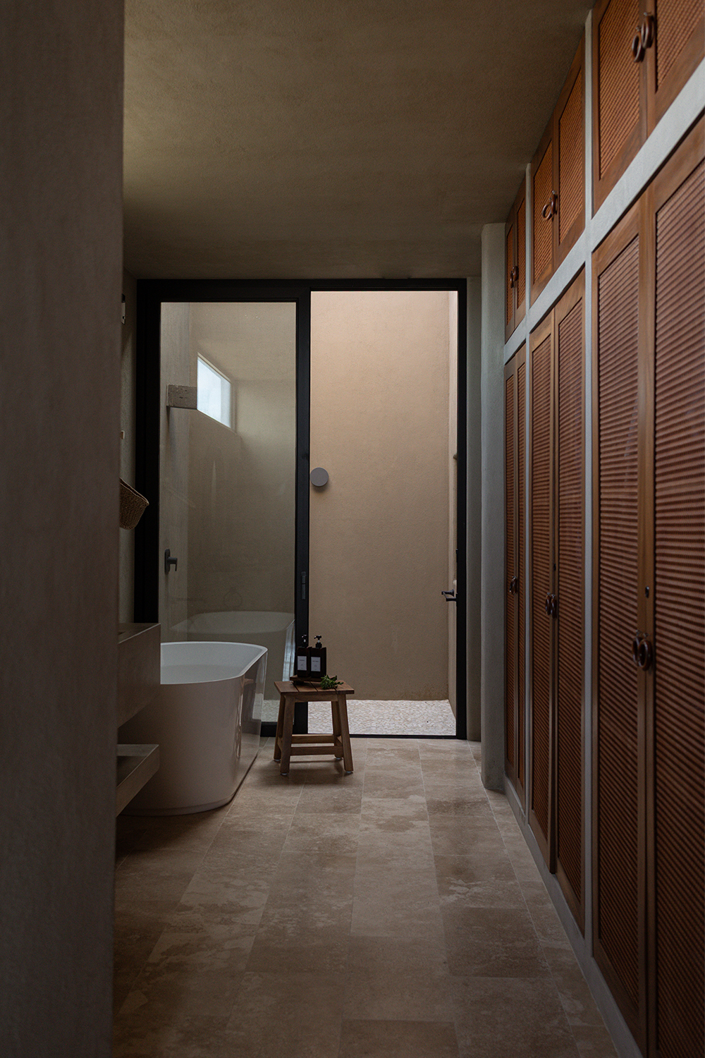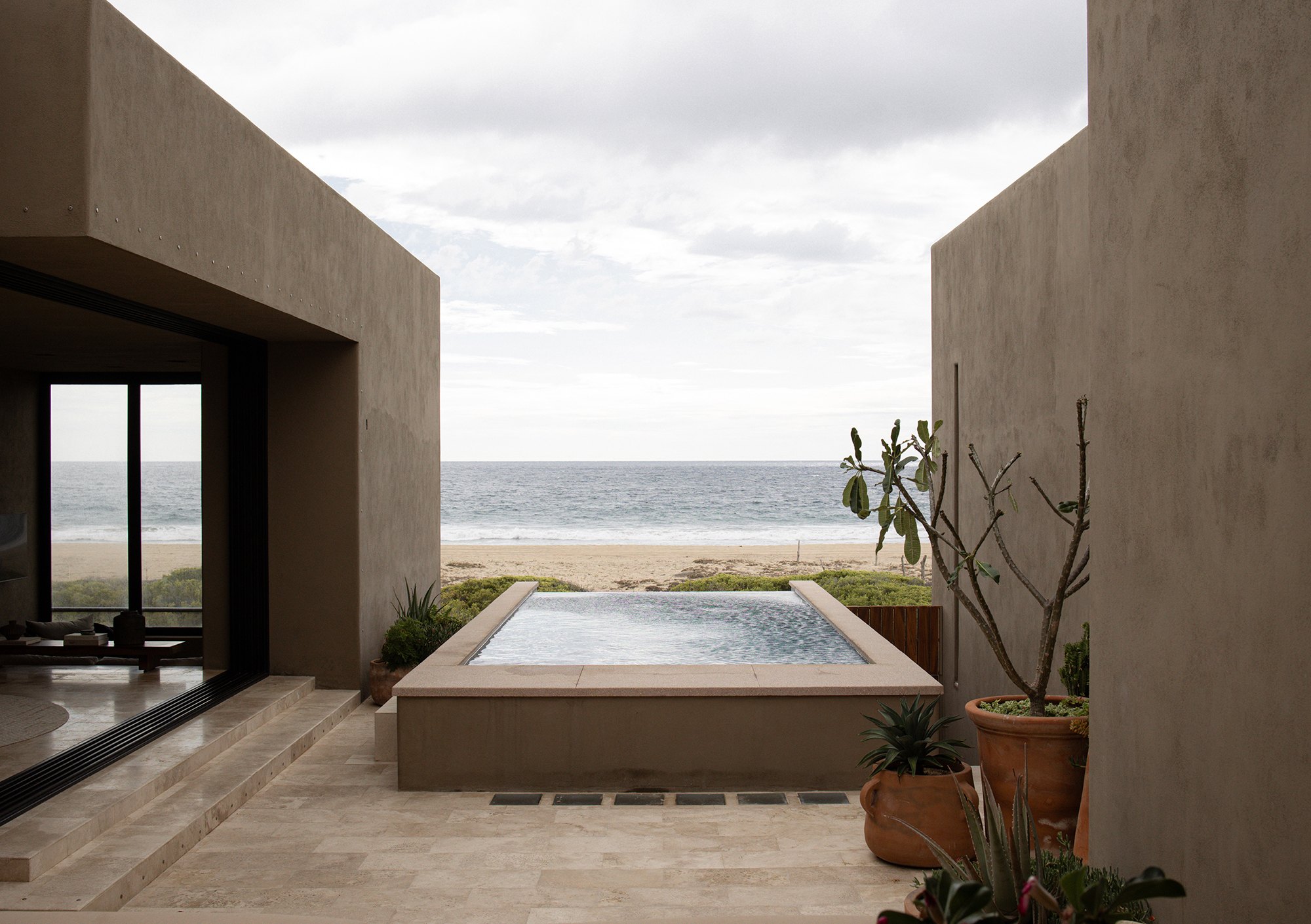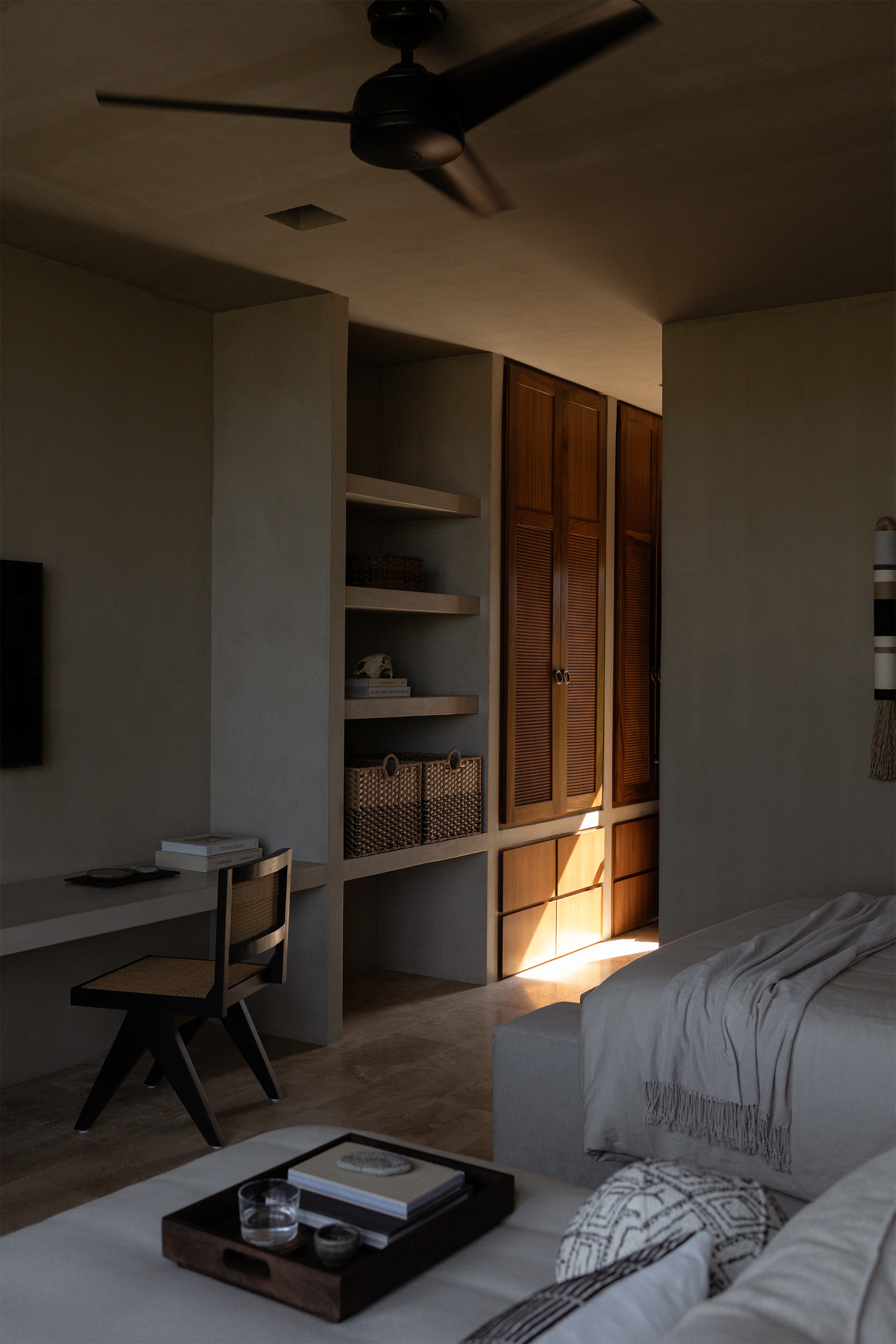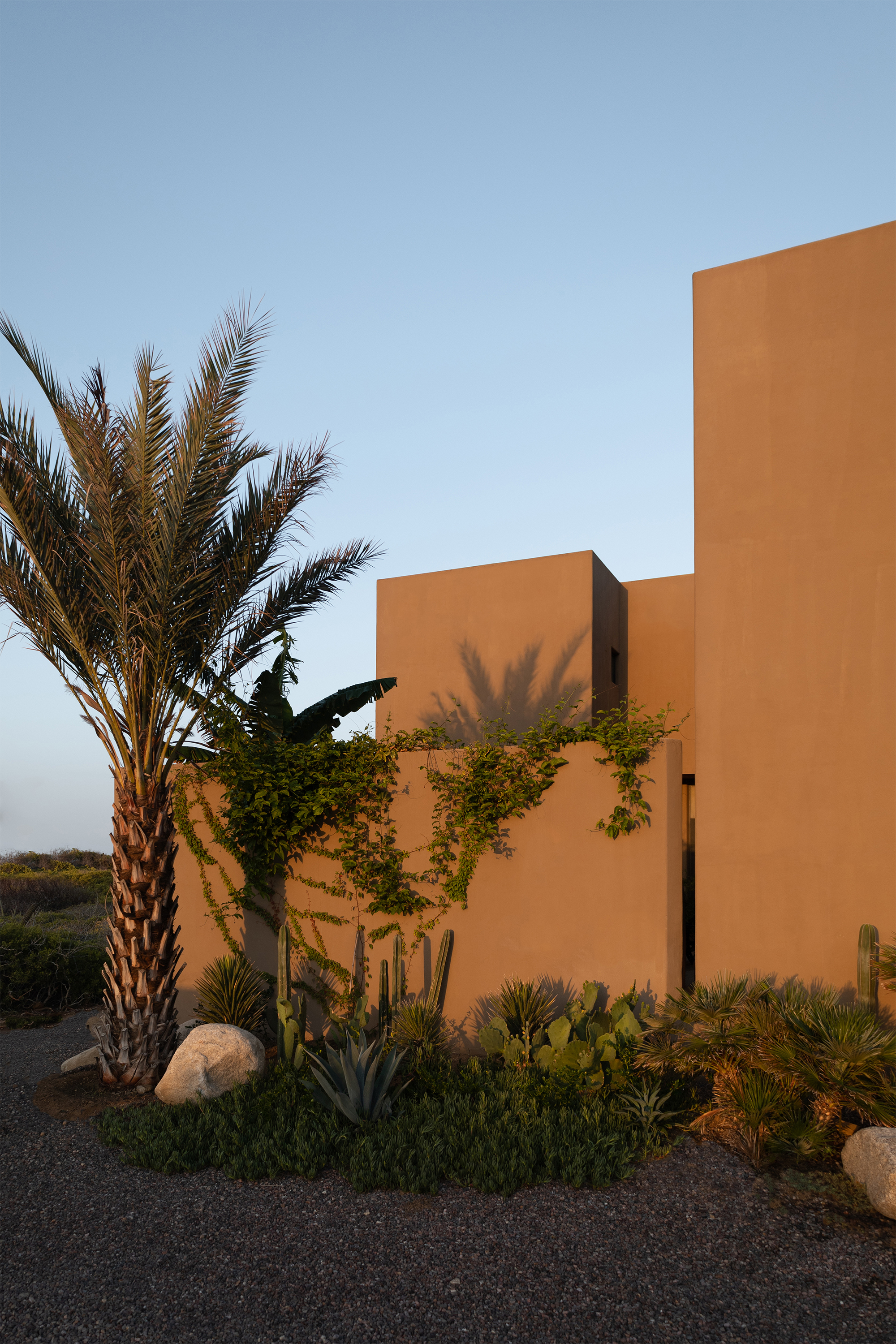 This home is a collection of spaces that unfold with ease. Volumes shift apart just enough to welcome wind, light, and ocean views, creating patios, pathways, and quiet corners that invite exploration. Walls in earthy tones seem to rise naturally from the ground: offering shelter where needed and opening generously toward the horizon, turning each room into a place for pause and reflection. Through subtle changes in elevation, even the spaces farthest from the shore remain connected to the ocean. Its sound, its breeze, its rhythm weave seamlessly into daily life.