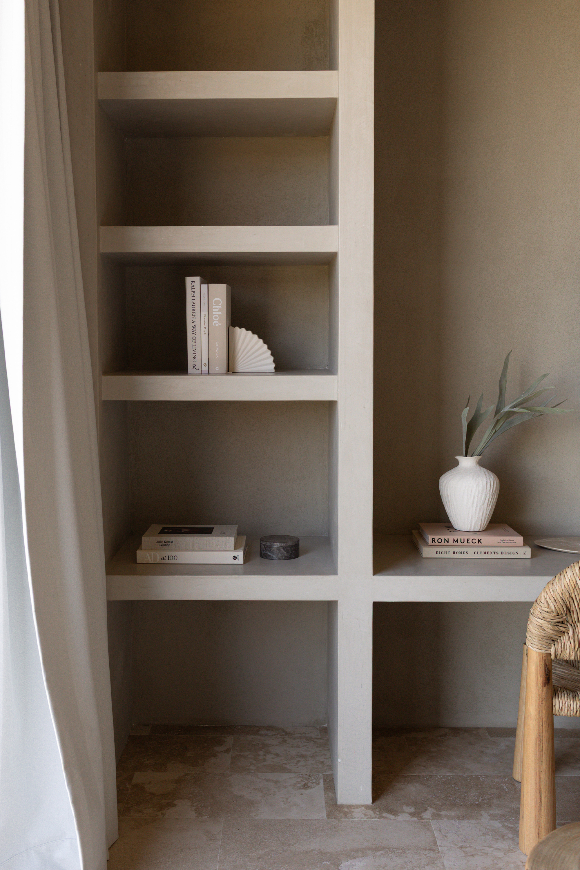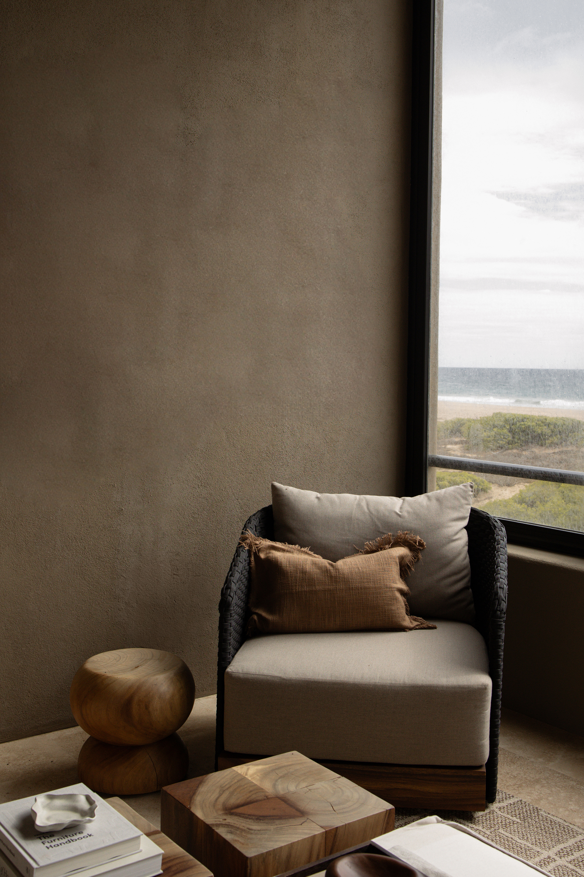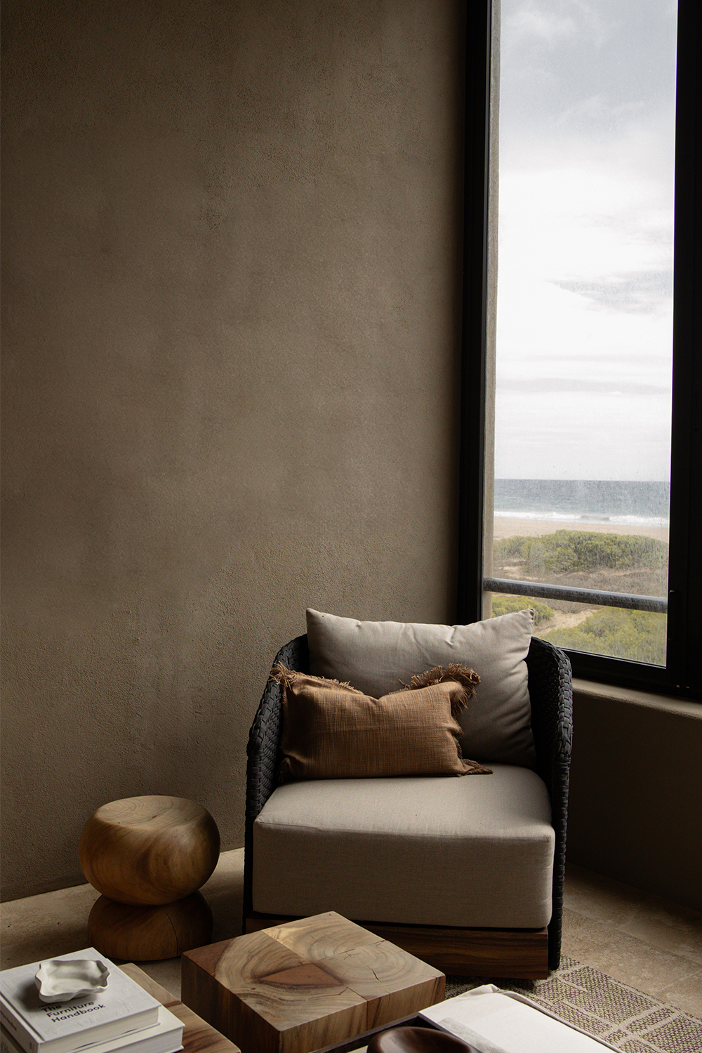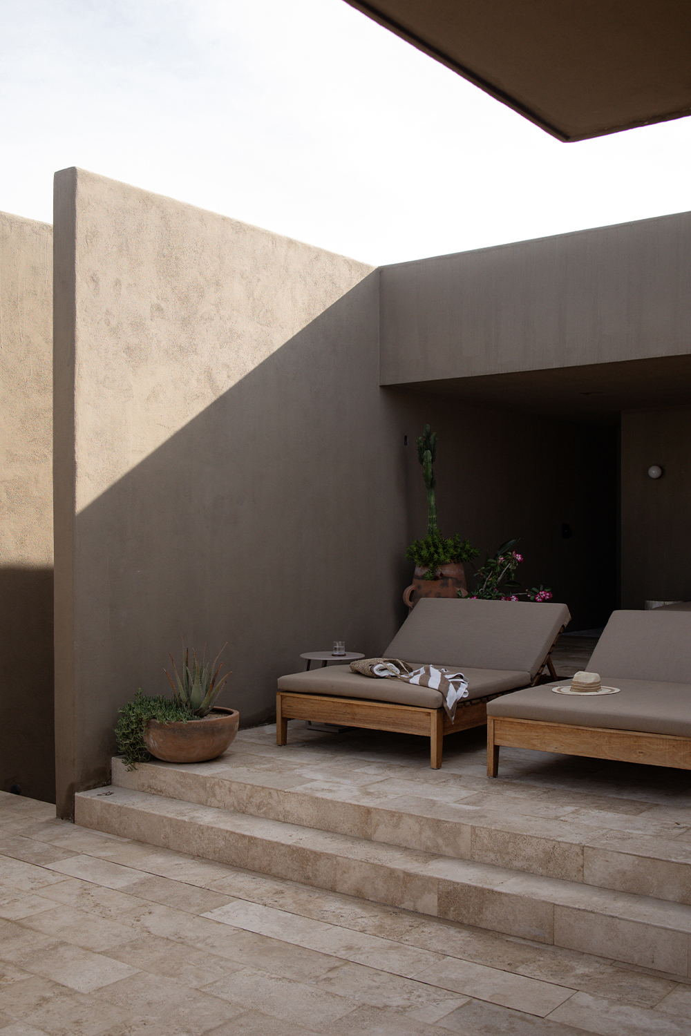 This home is a collection of spaces that unfold with ease. Volumes shift apart just enough to welcome wind, light, and ocean views, creating patios, pathways, and quiet corners that invite exploration. Walls in earthy tones seem to rise naturally from the ground: offering shelter where needed and opening generously toward the horizon, turning each room into a place for pause and reflection. Through subtle changes in elevation, even the spaces farthest from the shore remain connected to the ocean. Its sound, its breeze, its rhythm weave seamlessly into daily life.
