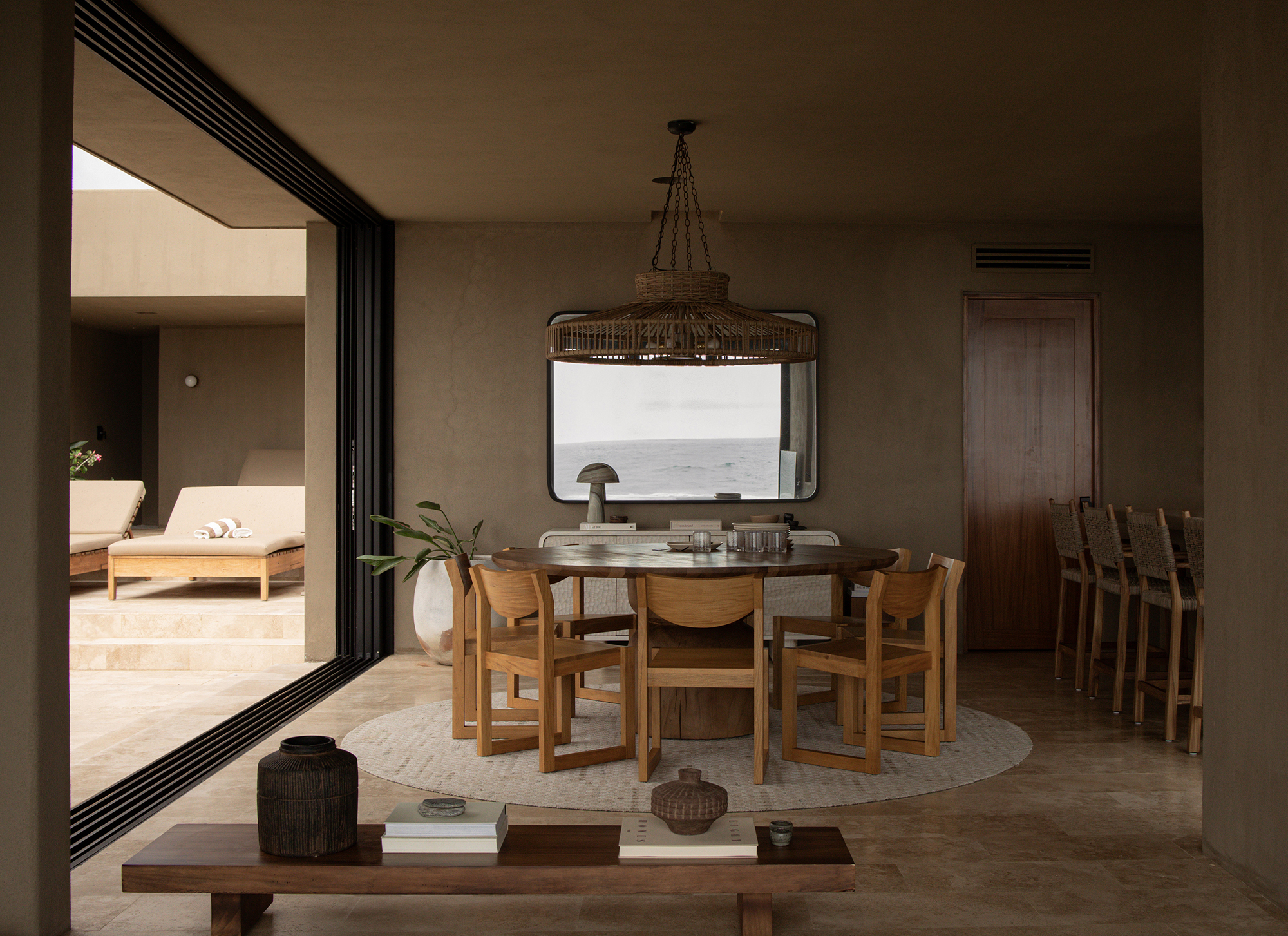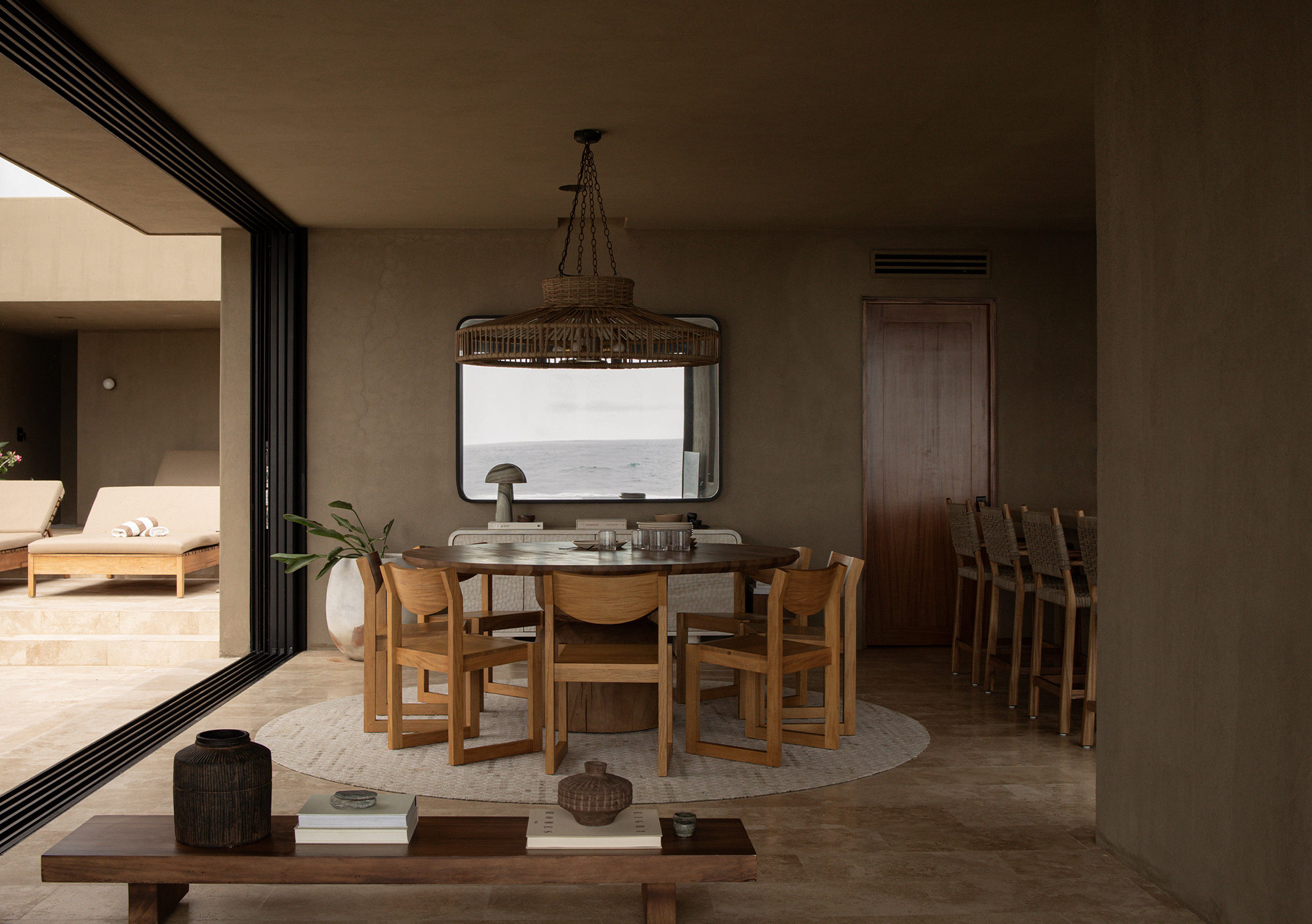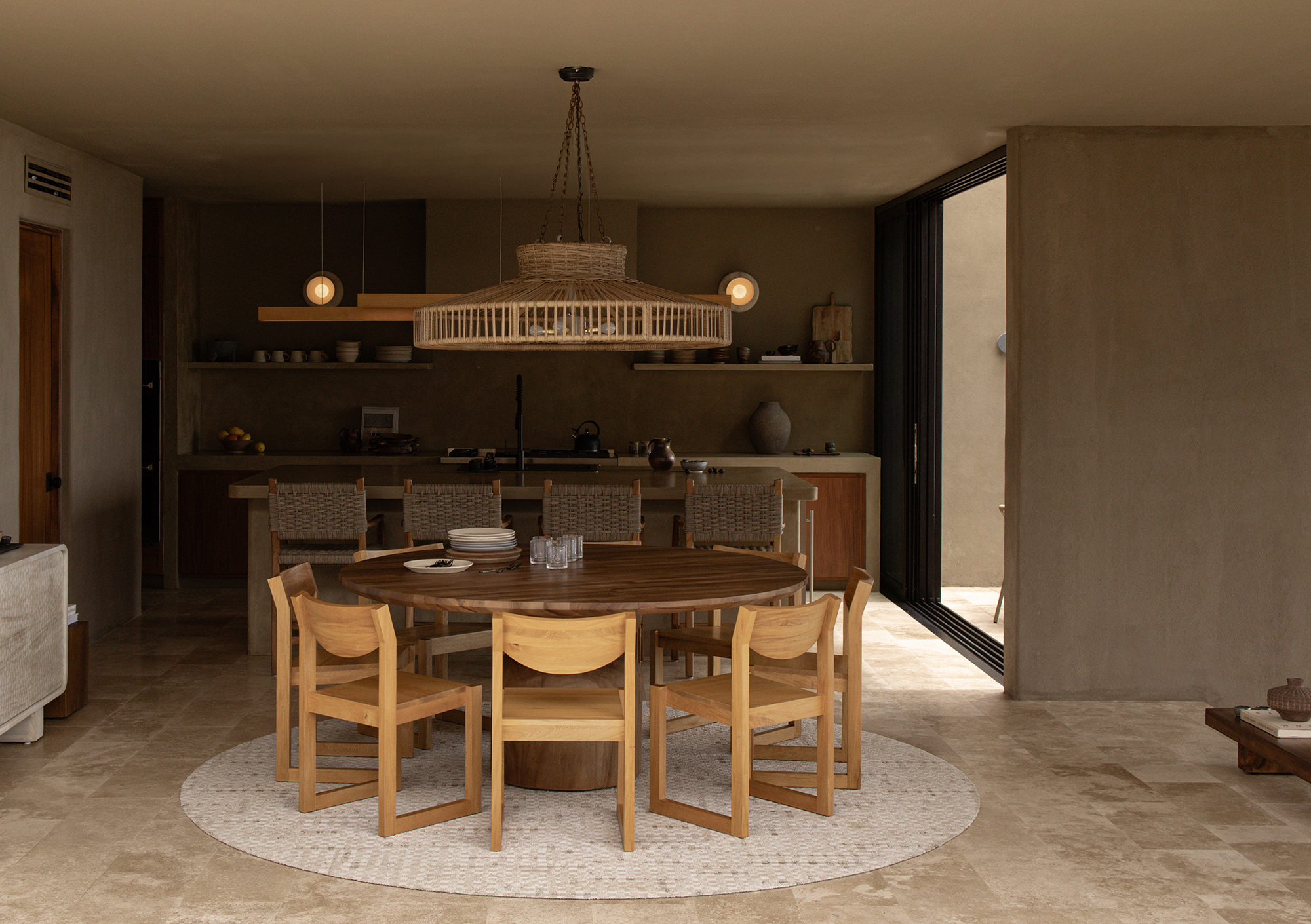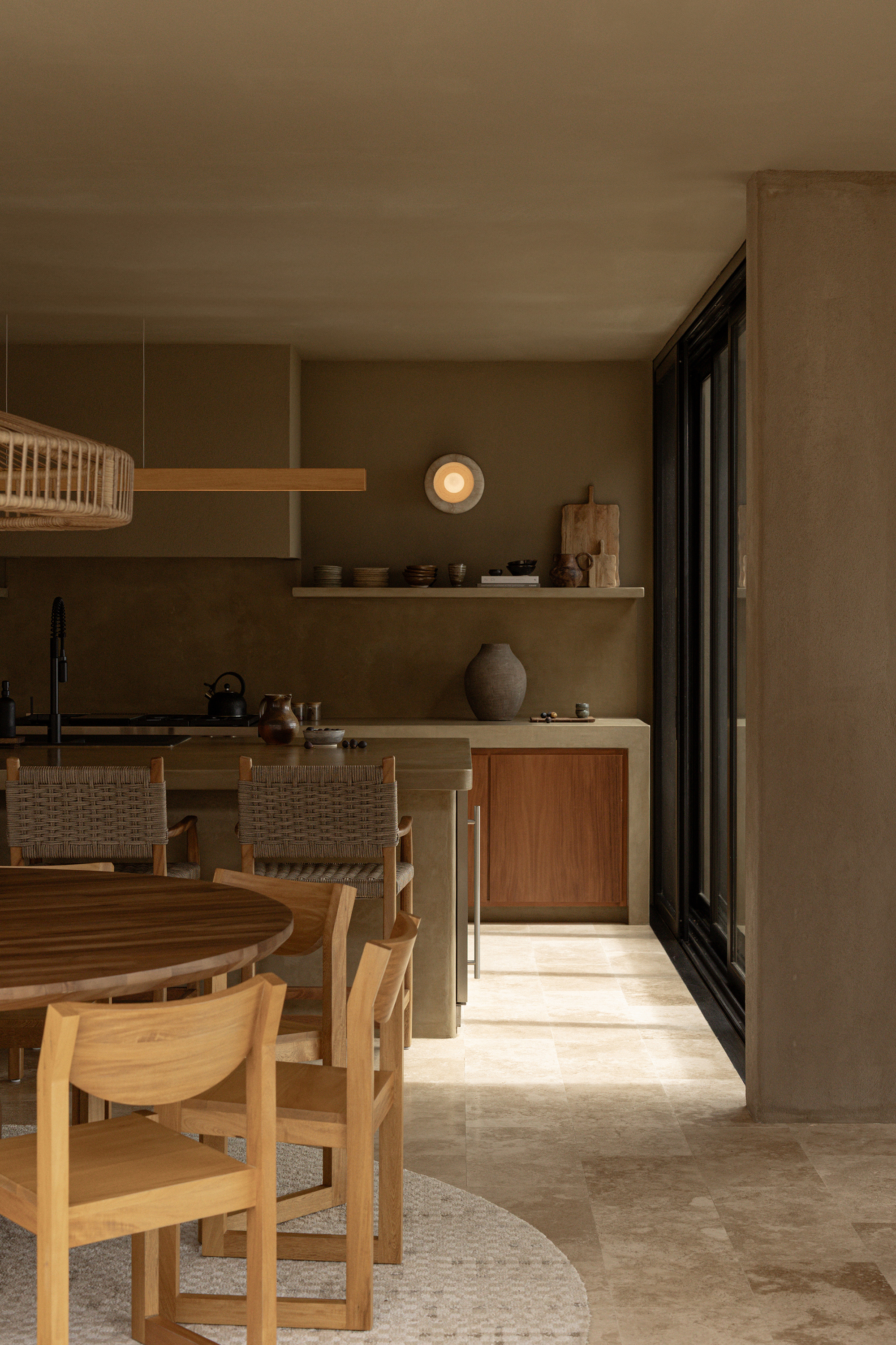 Yet Atlas goes beyond the domestic: it is also a meeting point for local farmers, fishers, and chefs—a place to exchange ingredients, knowledge, and stories. Tradition and hospitality intertwine, creating a community dynamic that enriches everyone involved. Everyday life is elevated by Mexican craft: clay vessels shaped by hand, furniture made from local woods with expressive, imperfect grain, stone lights carved by Mexican designers. Walls are adorned with woven textiles by women artisans, bringing warmth, intimacy, and timeless beauty to every space.