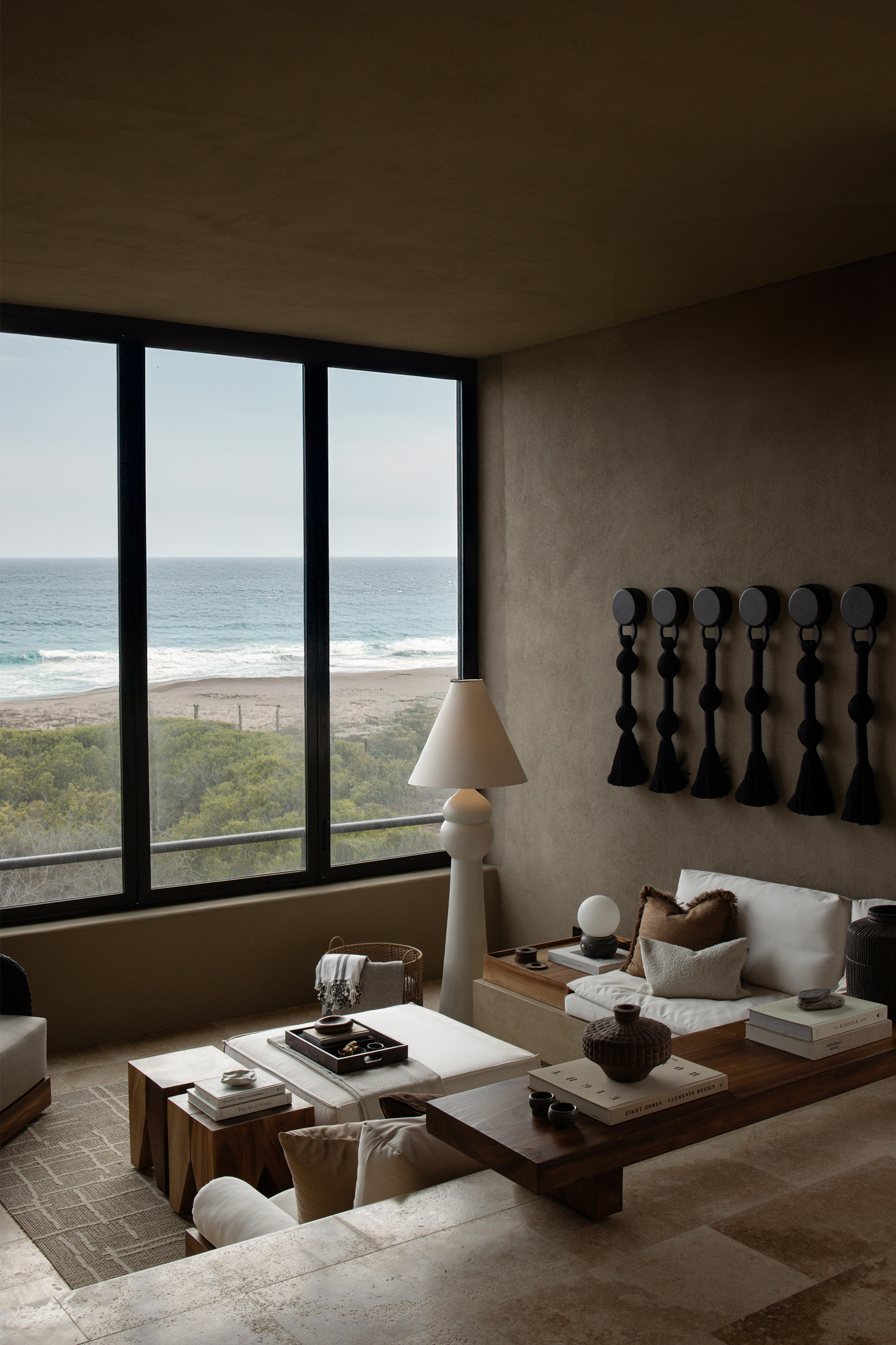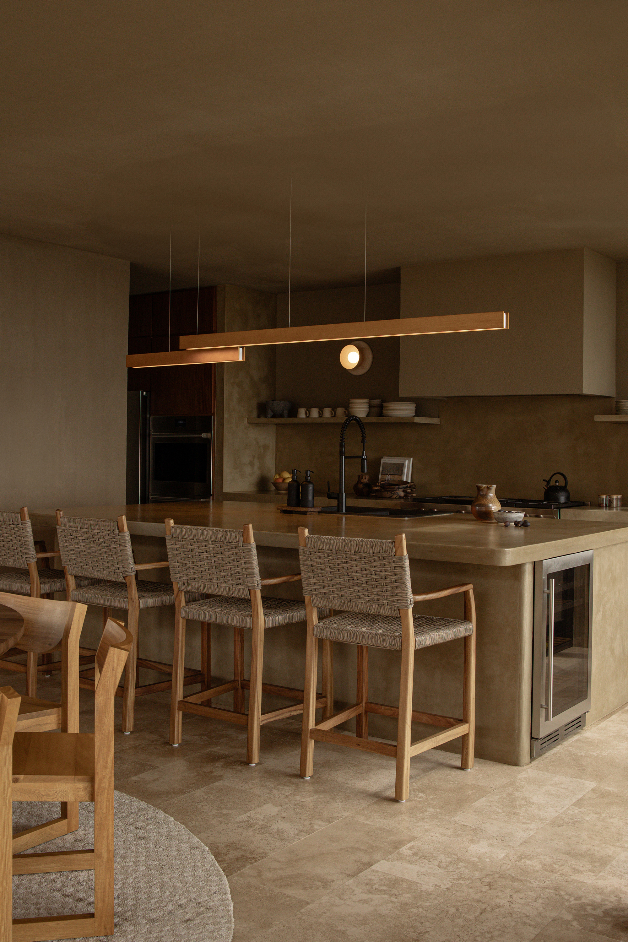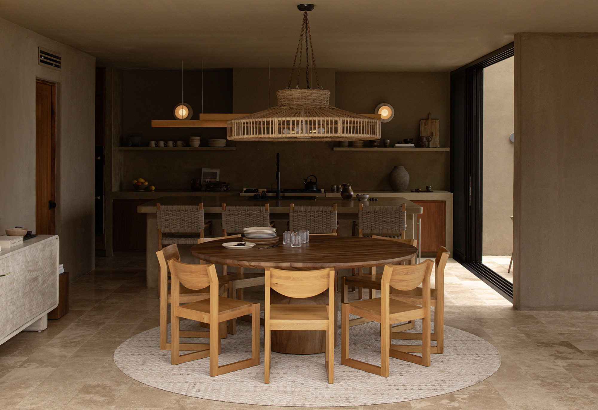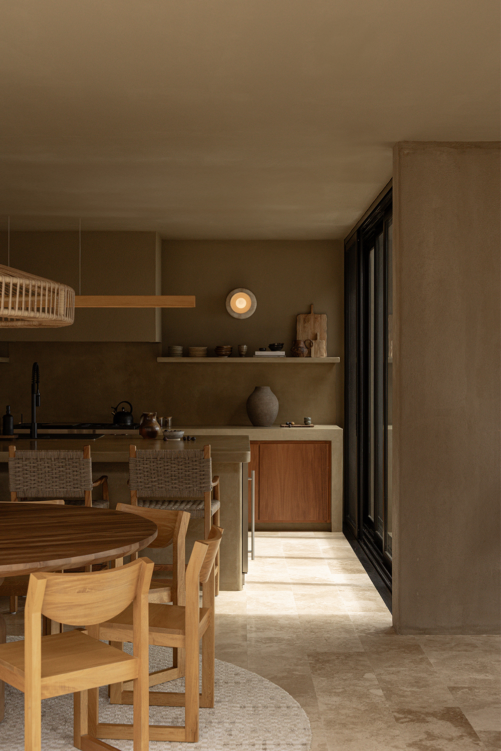 Yet Atlas goes beyond the domestic: it is also a meeting point for local farmers, fishers, and chefs—a place to exchange ingredients, knowledge, and stories. Tradition and hospitality intertwine, creating a community dynamic that enriches everyone involved. Everyday life is elevated by Mexican craft: clay vessels shaped by hand, furniture made from local woods with expressive, imperfect grain, stone lights carved by Mexican designers. Walls are adorned with woven textiles by women artisans, bringing warmth, intimacy, and timeless beauty to every space.