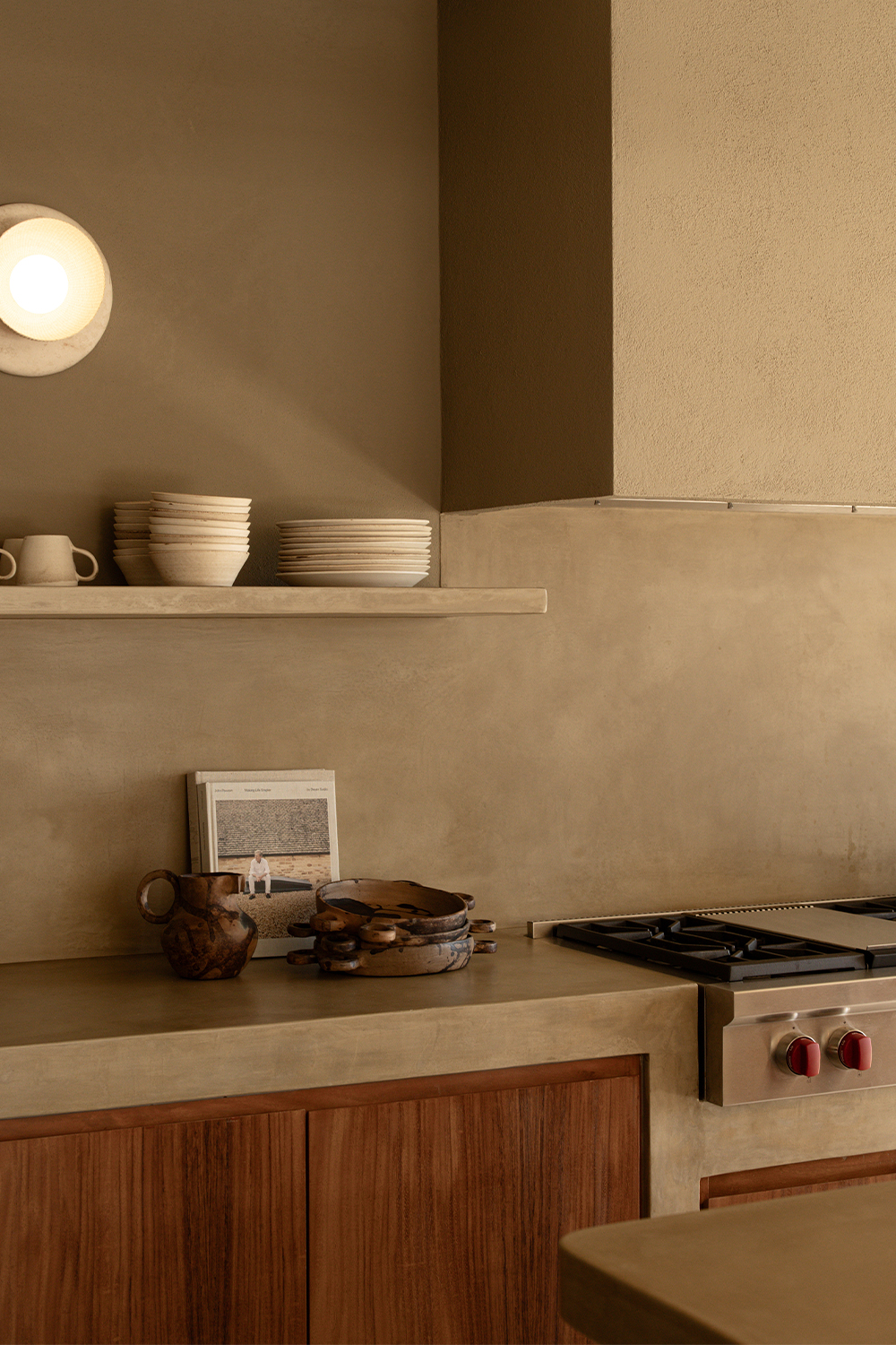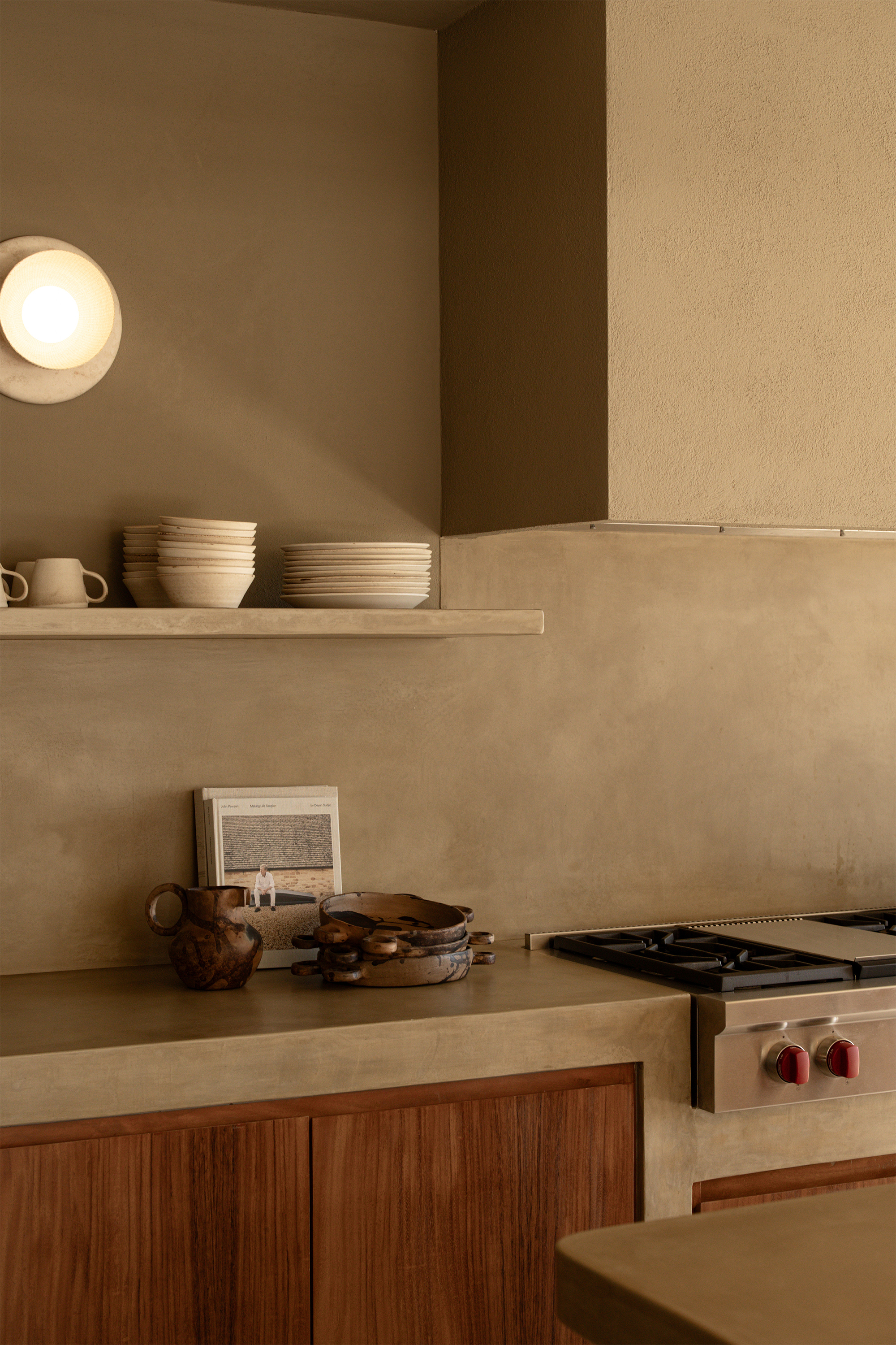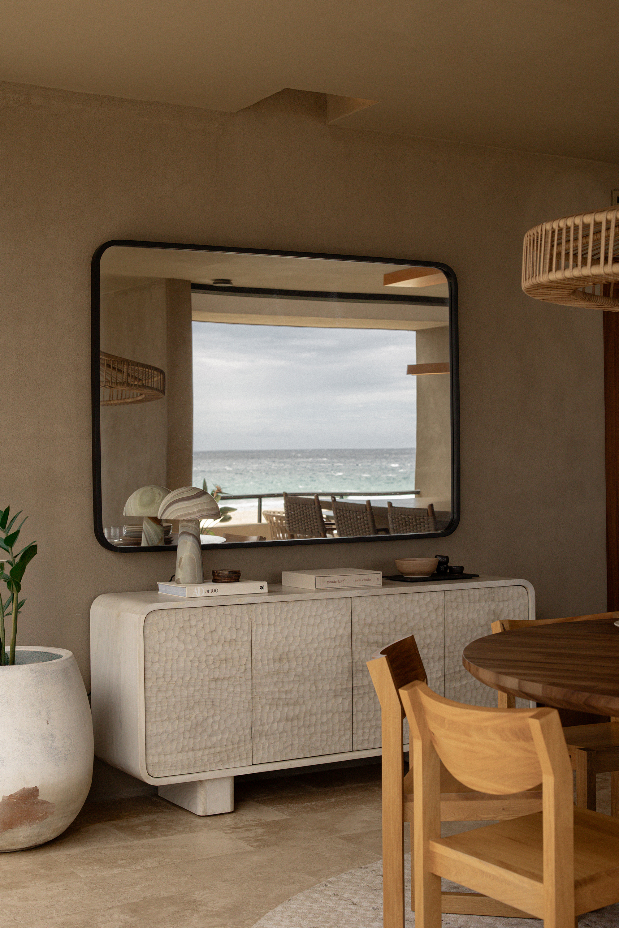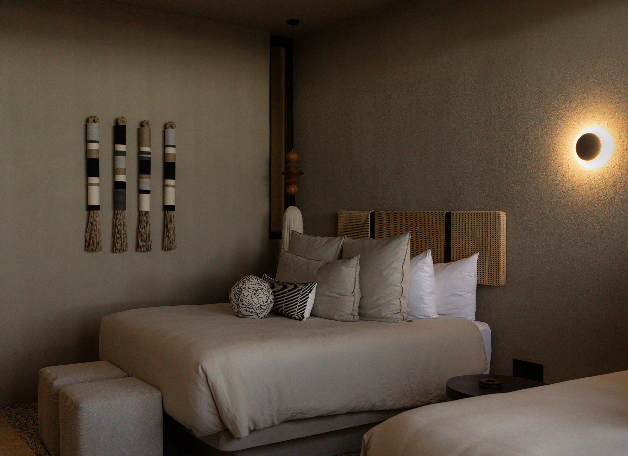 Yet Atlas goes beyond the domestic: it is also a meeting point for local farmers, fishers, and chefs—a place to exchange ingredients, knowledge, and stories. Tradition and hospitality intertwine, creating a community dynamic that enriches everyone involved. Everyday life is elevated by Mexican craft: clay vessels shaped by hand, furniture made from local woods with expressive, imperfect grain, stone lights carved by Mexican designers. Walls are adorned with woven textiles by women artisans, bringing warmth, intimacy, and timeless beauty to every space.
