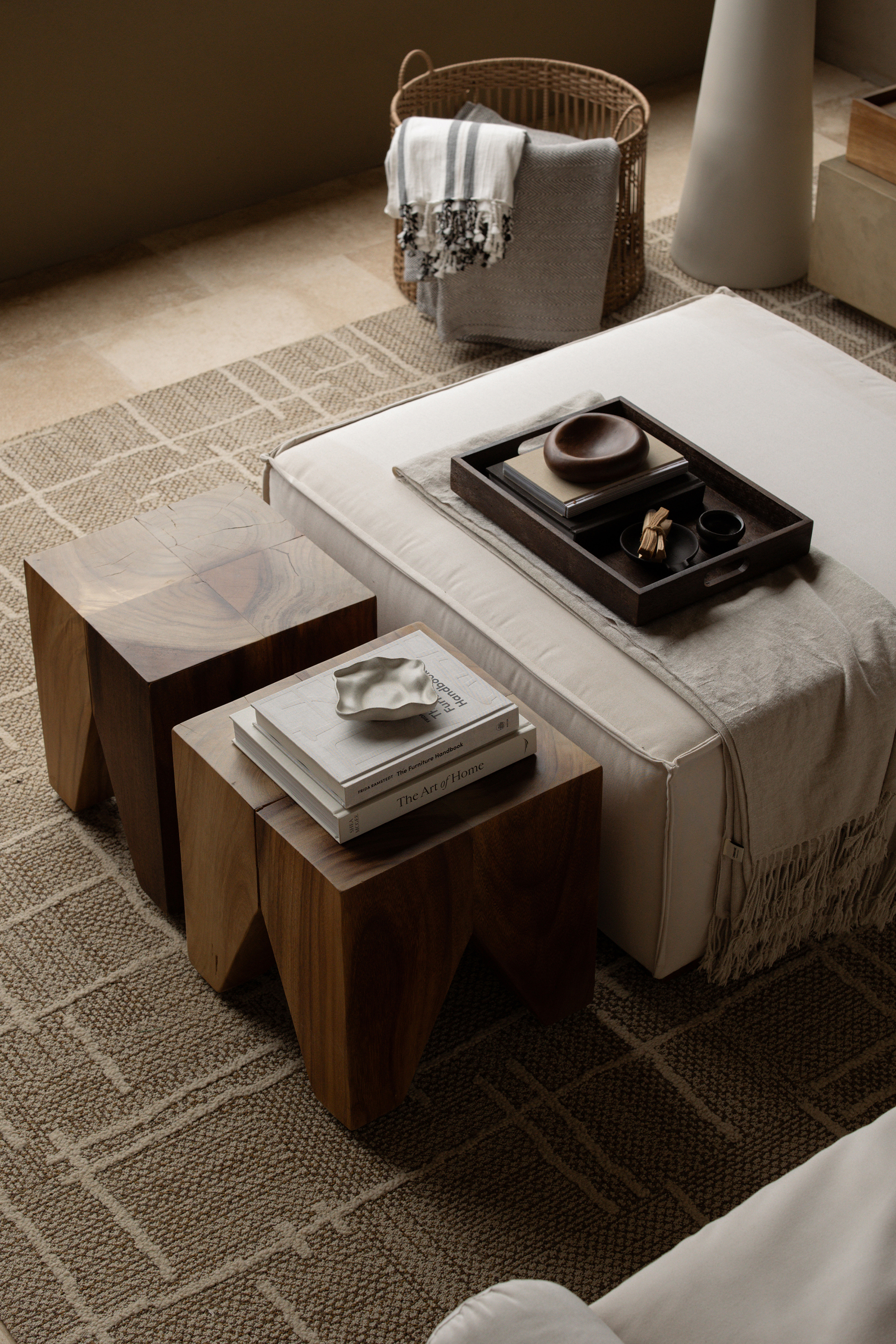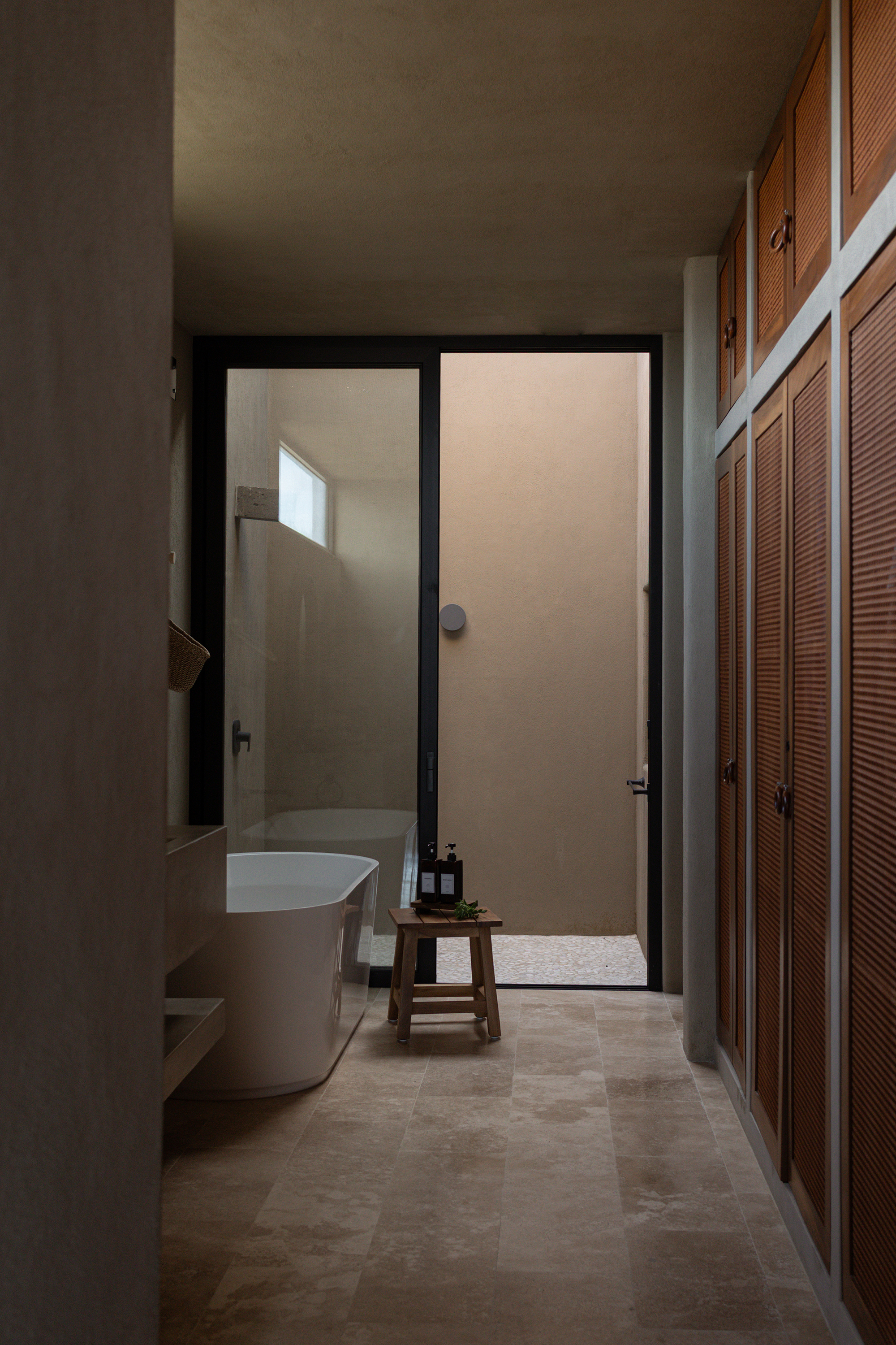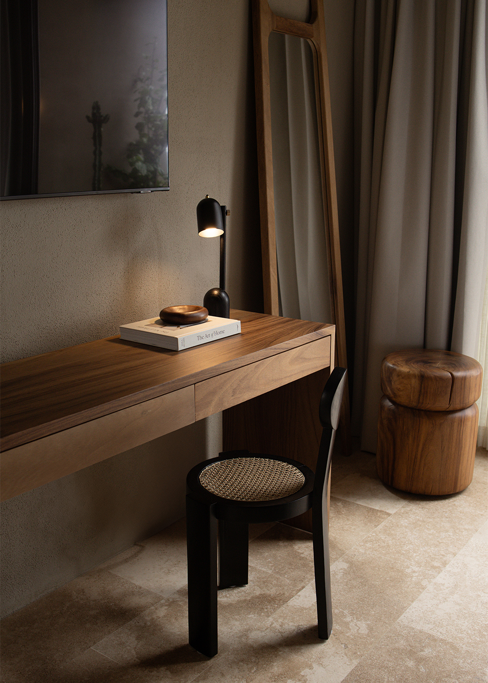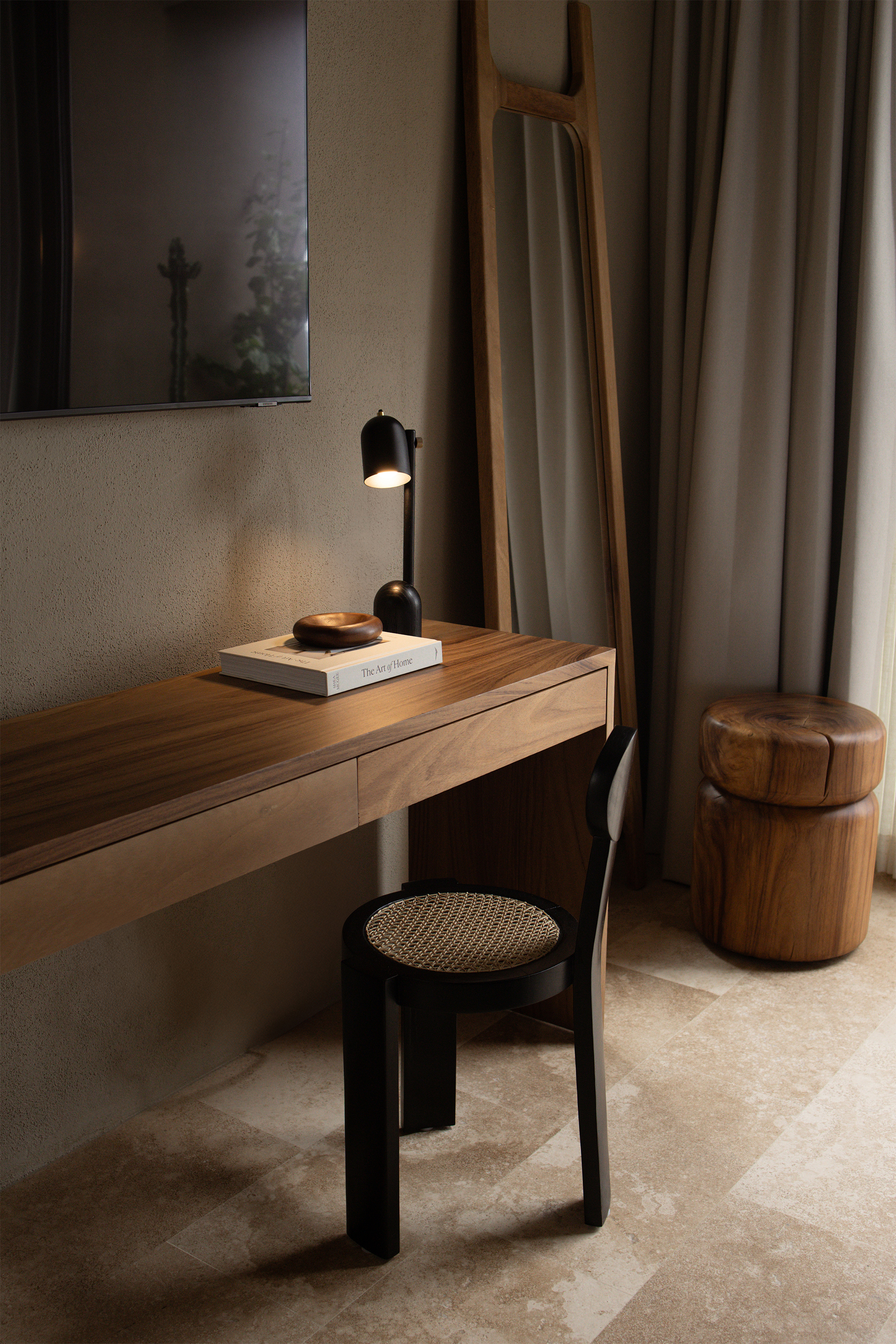Yet Atlas goes beyond the domestic: it is also a meeting point for local farmers, fishers, and chefs—a place to exchange ingredients, knowledge, and stories. Tradition and hospitality intertwine, creating a community dynamic that enriches everyone involved. Everyday life is elevated by Mexican craft: clay vessels shaped by hand, furniture made from local woods with expressive, imperfect grain, stone lights carved by Mexican designers. Walls are adorned with woven textiles by women artisans, bringing warmth, intimacy, and timeless beauty to every space.