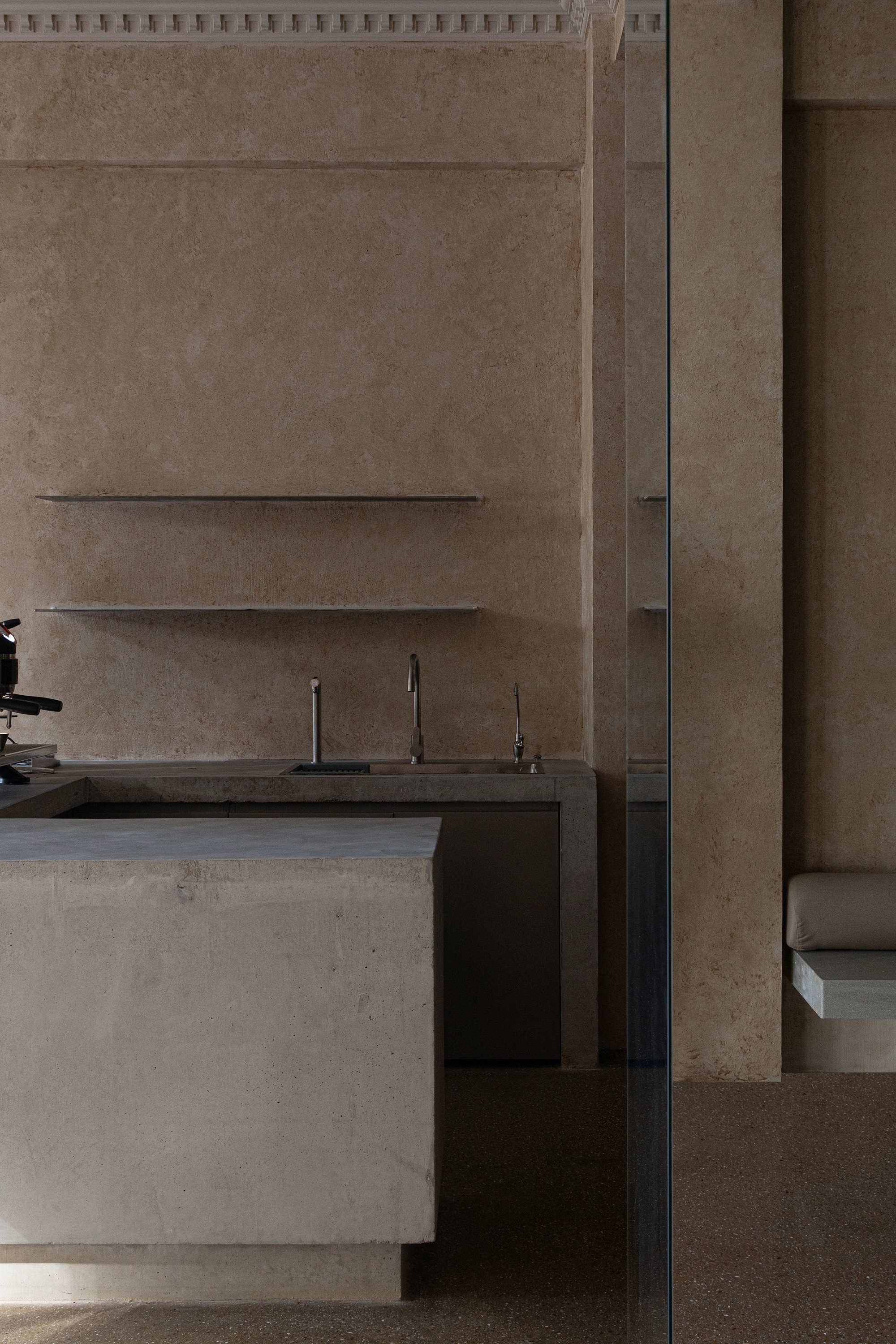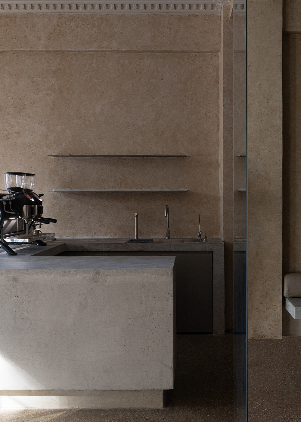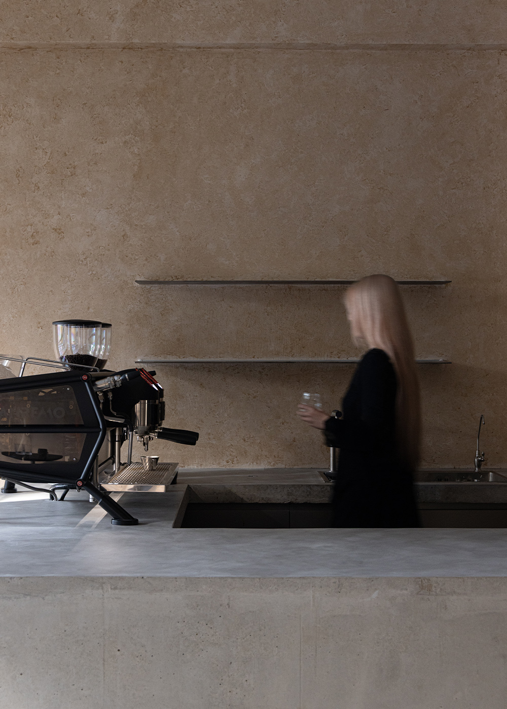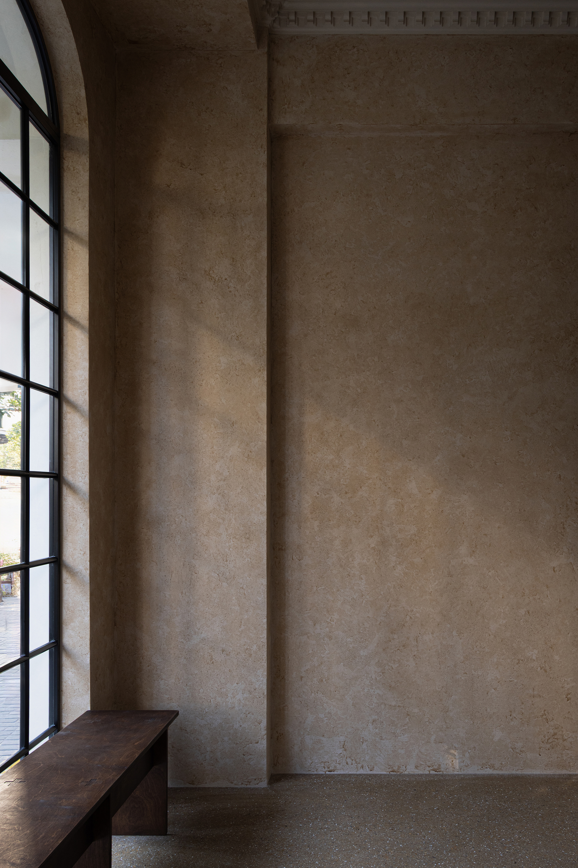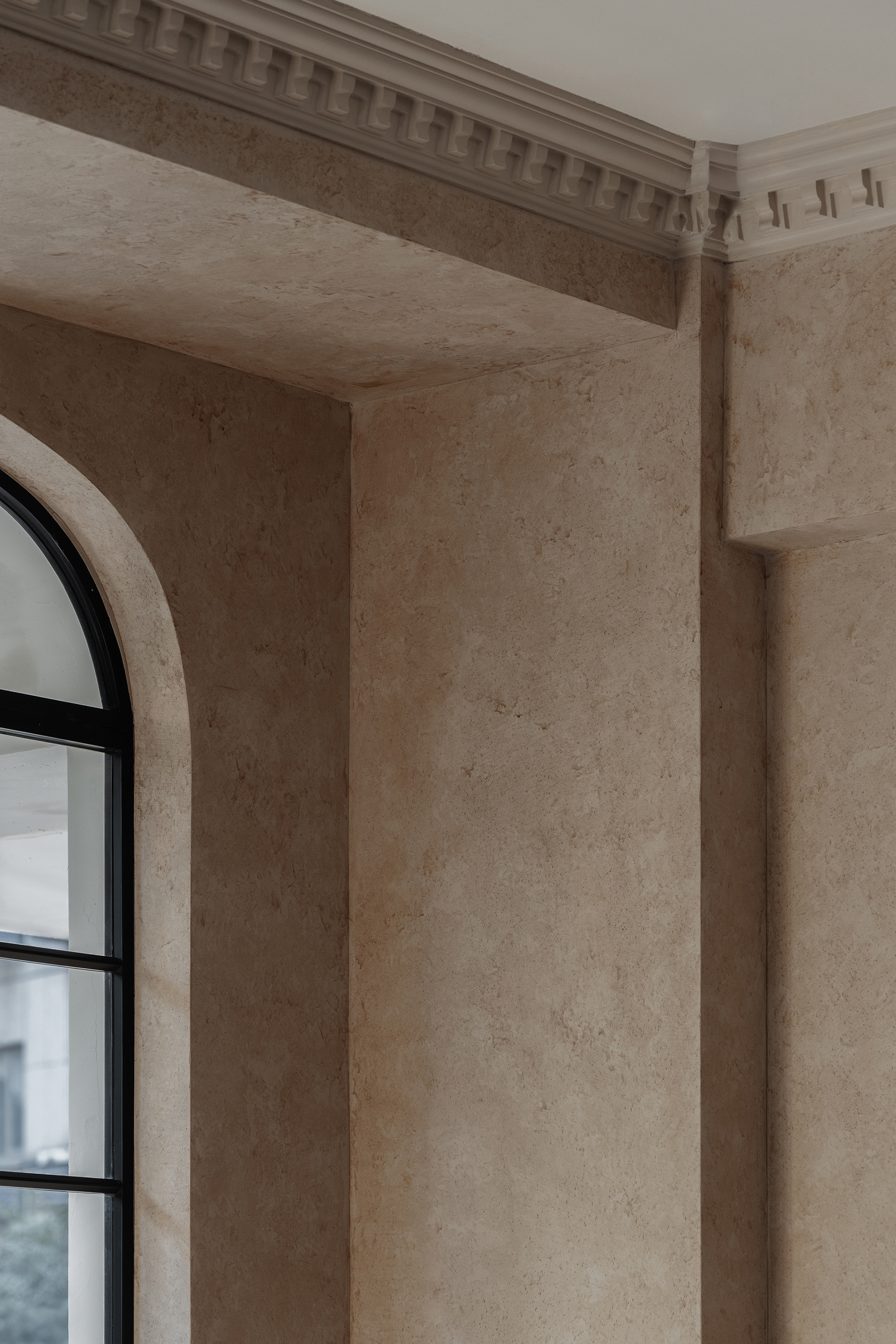 The entryway is shaped with a three-dimensional mindset, embedding metal door frames within the thickness of the building, blending the original texture with the retro form, creating a light and restrained rhythm. Through the construction of this interface, one can transcend to a new realm, where the interior and exterior form independent worlds that can penetrate each other.