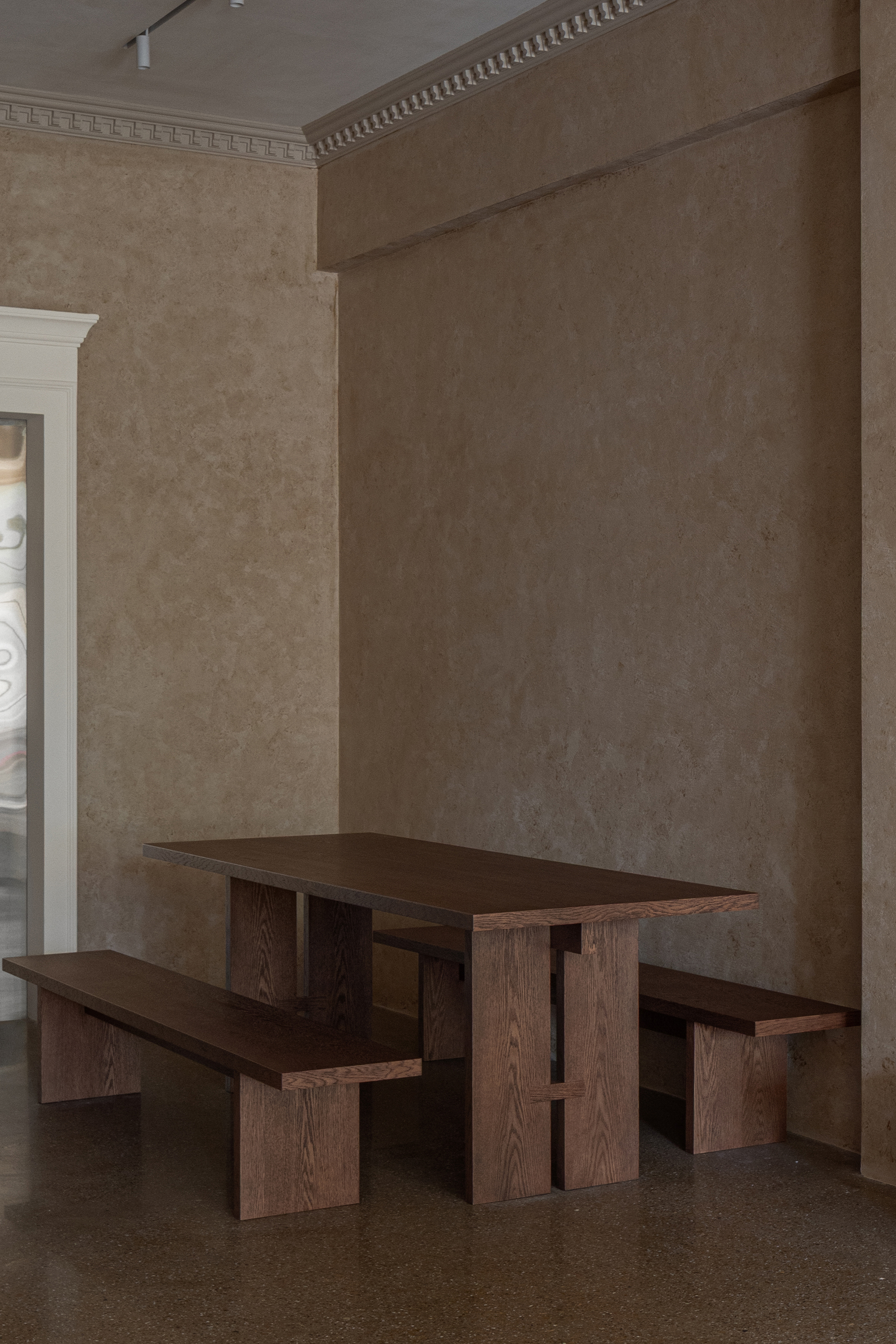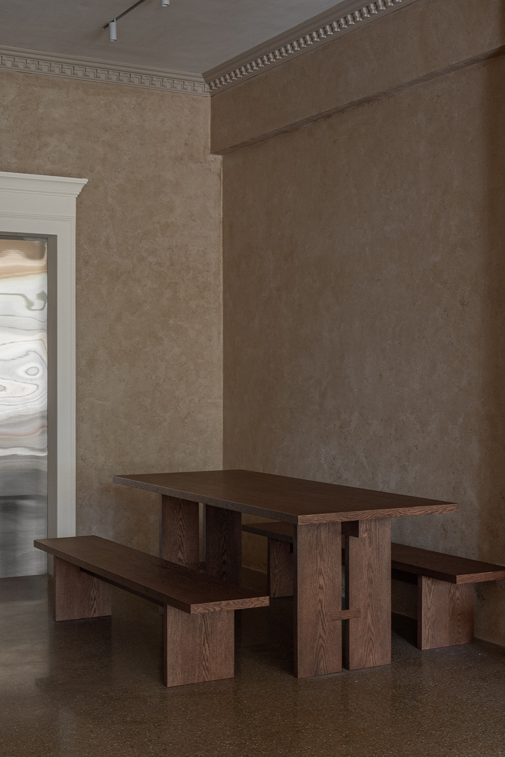 Following the logical thinking of architecture and nature, the visual senses are inspired through framing, composition, and texture, metaphorically conveying the narrative of time. Light and shadow, as narrative media, undergo transformations and extensions through the flow of the four seasons, tracing back to the ancient civilizations' timing order, fully exhibiting the eternal and profound. The space gradually transitions from rationality to divinity. The retro and aged art paint reconstructs the medieval era's underlying color, and the vintage-style furnishings and metal materials compromise with each other, slowly narrating the fantasy of retro-futurism between the traces of the new and the old - collapsing, merging, and coexisting with each other.