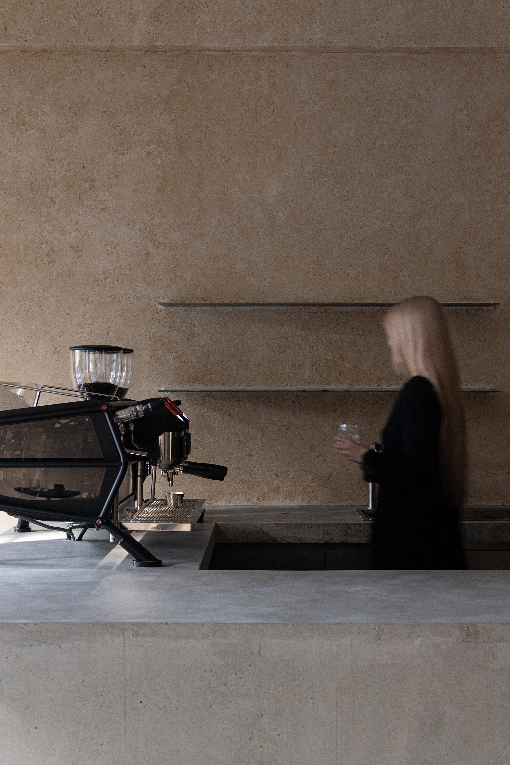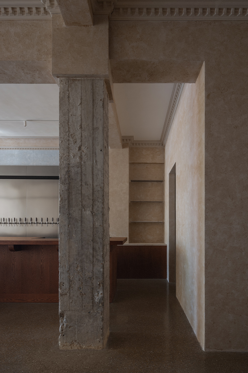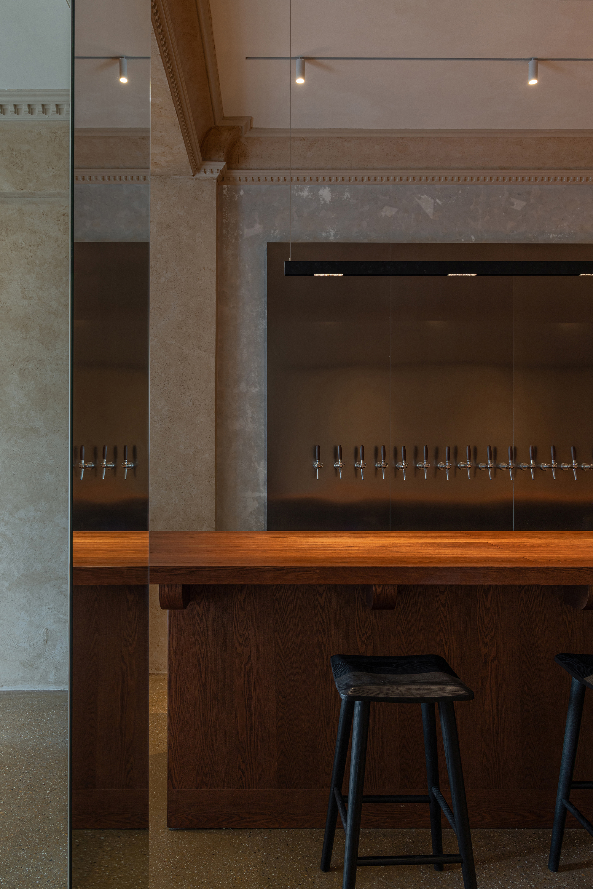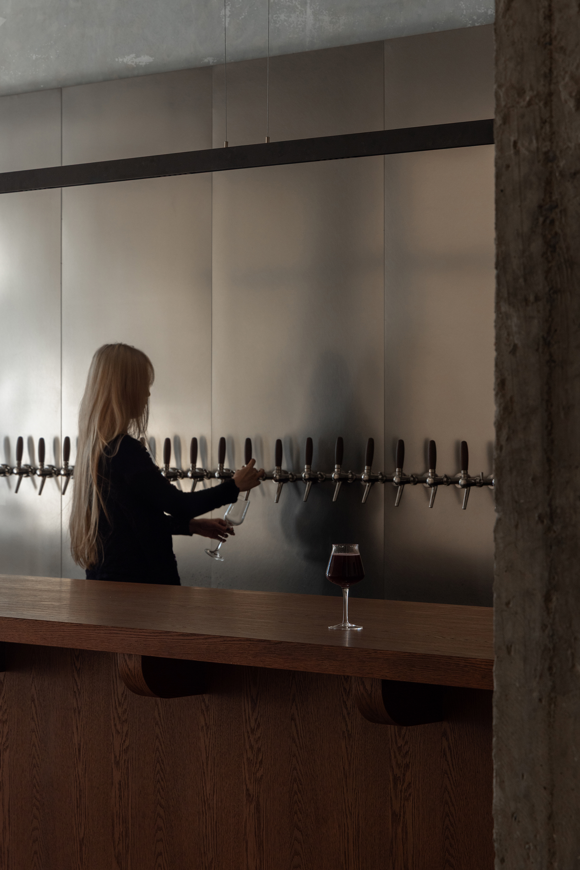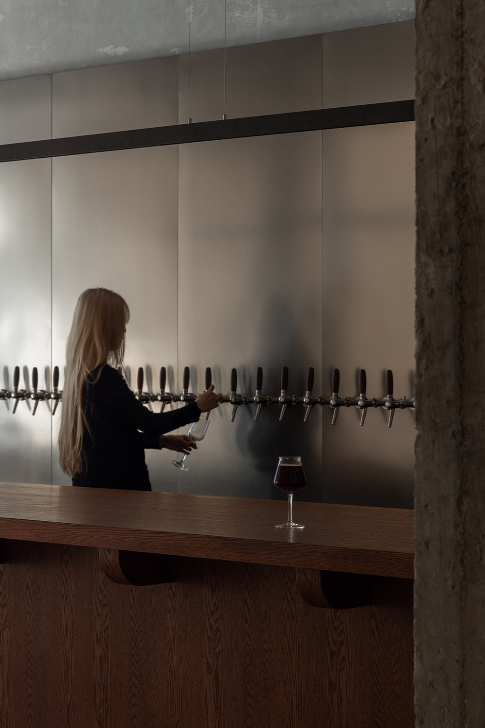 Light, coming from the Middle Ages. Allowing spacetime to undergo deformation with the intention of detaching reality. Cave_in, a craft beer bar located in Hangzhou, was founded by its owner who returned from studying in the UK. It continues the popular "day coffee, night wine" trend among contemporary young people. The space draws inspiration from the brand's concept of "collapse and depression", using it as an index for form construction, connecting people with the initial form of space, and visually presenting the timeline, positioned between virtuality and reality, fulfilling the concept of infinite expansion of time and space. Designer adds a layer of more empathetic perception to this "alternative world" creation. Italian classicism is integrated into the layered construction of the frame, shape, and texture, presenting a minimalist, nude aesthetic, and planning the interweaving of vintage and modernity in a gentle manner.