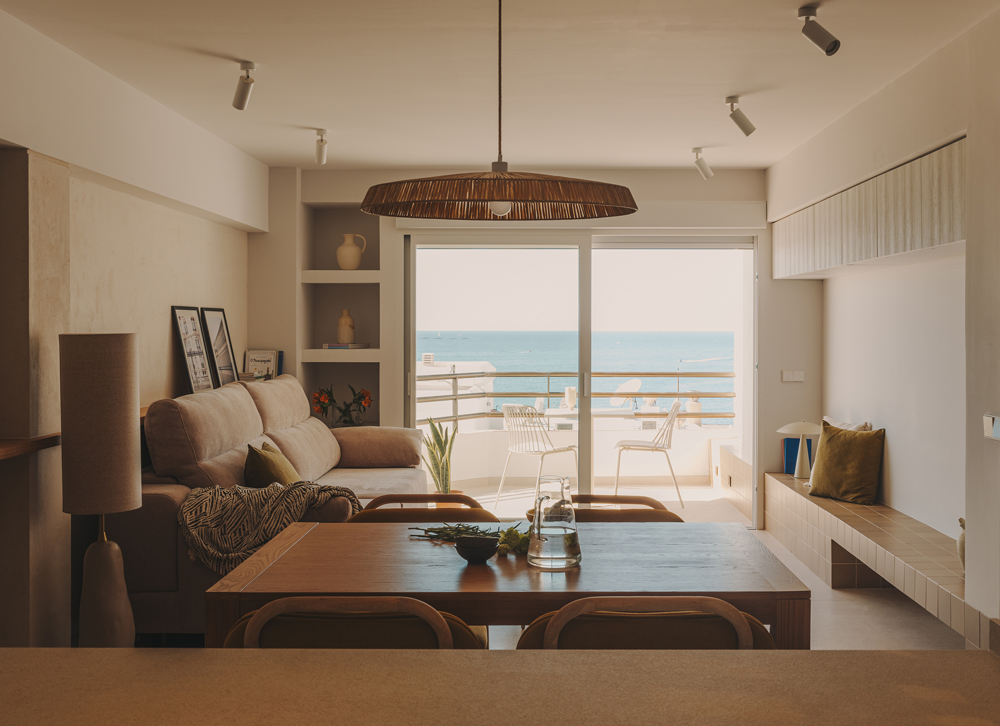 Horitzo House, located in Costa Blanca, Spain, is an apartment of about 80 square meters, with only one large window, giving the space a broad view of the blue Mediterranean Sea. The core objective of the renovation was to improve the lighting problems of the original house and to create an open and transparent spatial perception in a typical 1970s housing pattern, adapted to the needs of modern lifestyles.