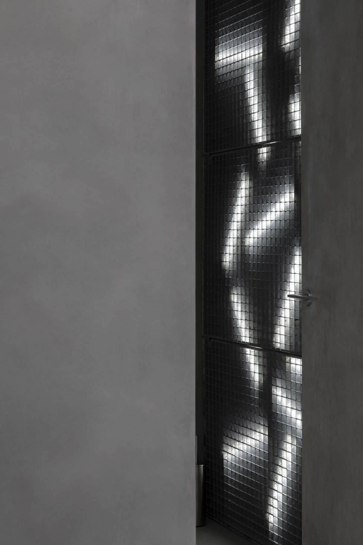 Occupying a 106 sqm. (1,141 sq.ft.) unit on the ground floor of a monumental 1930s residential building, Brand Designer Vasilevskaya tapped architects Roman Gulyaev and Maria Tsakharias of architecture practice Gulyaev \ Tsakharias to create a matching interior design. Inspired by the building’s bare concrete walls, the duo envisioned a palette of natural, monochrome materials that also underpins the signature style of YULIAWAVE.