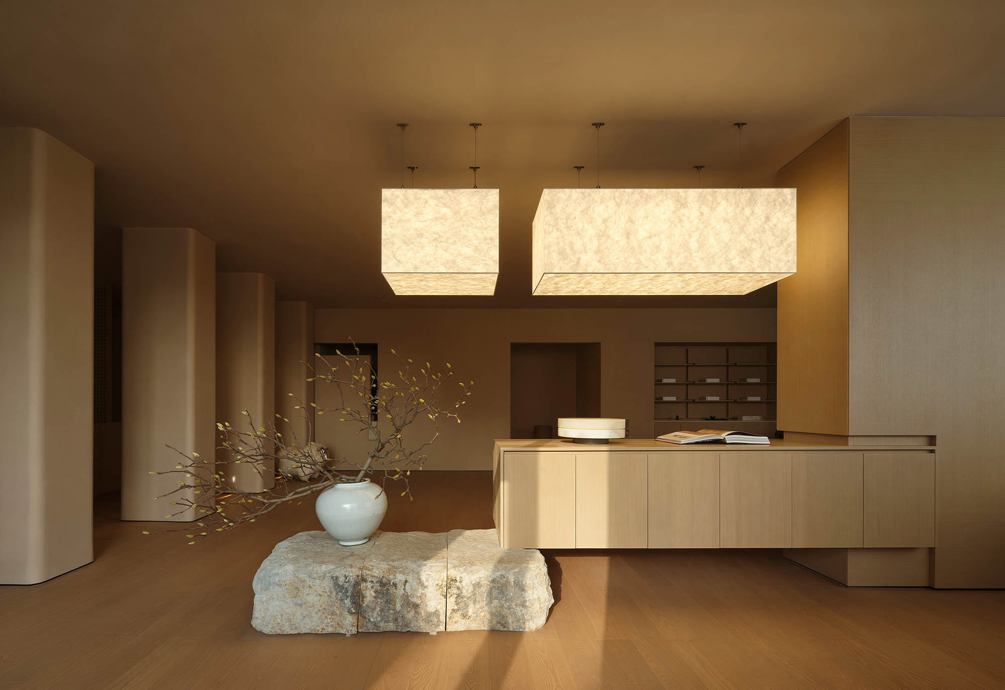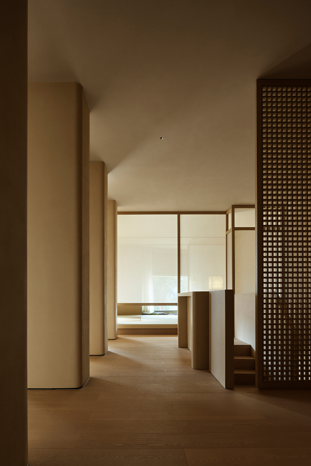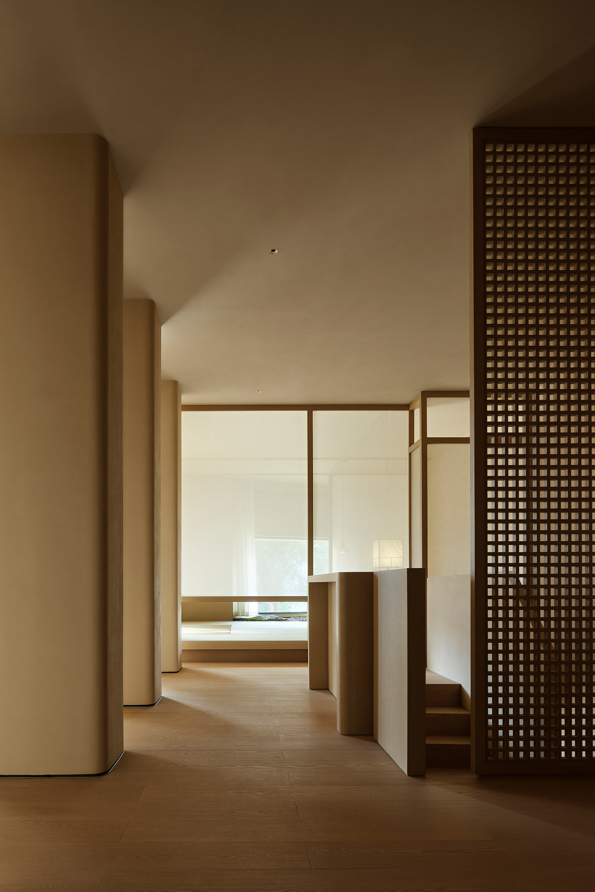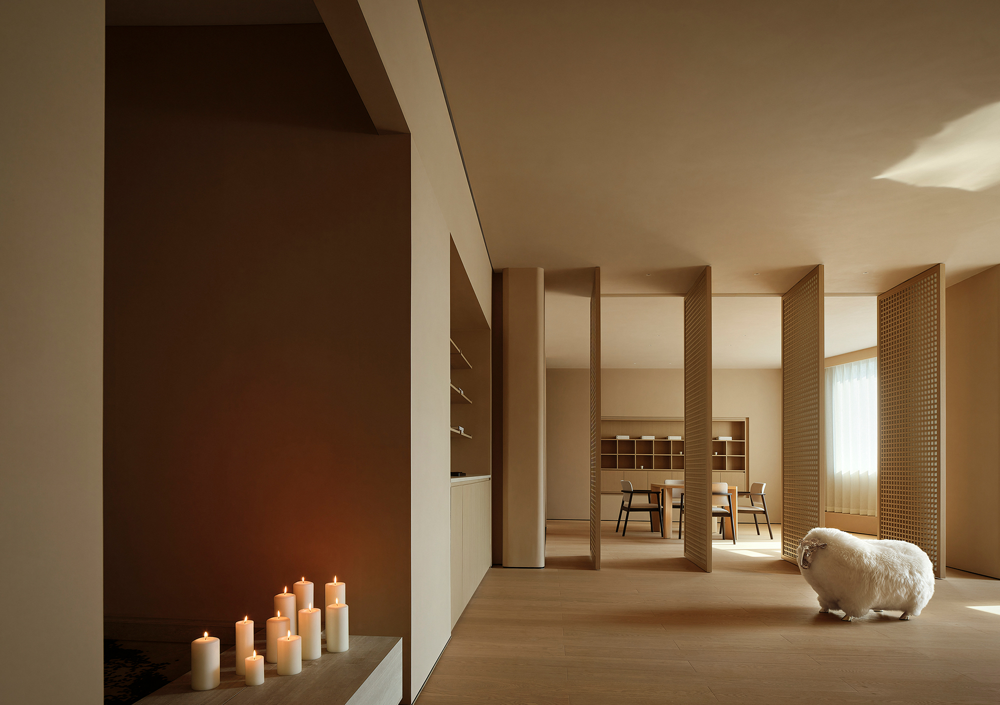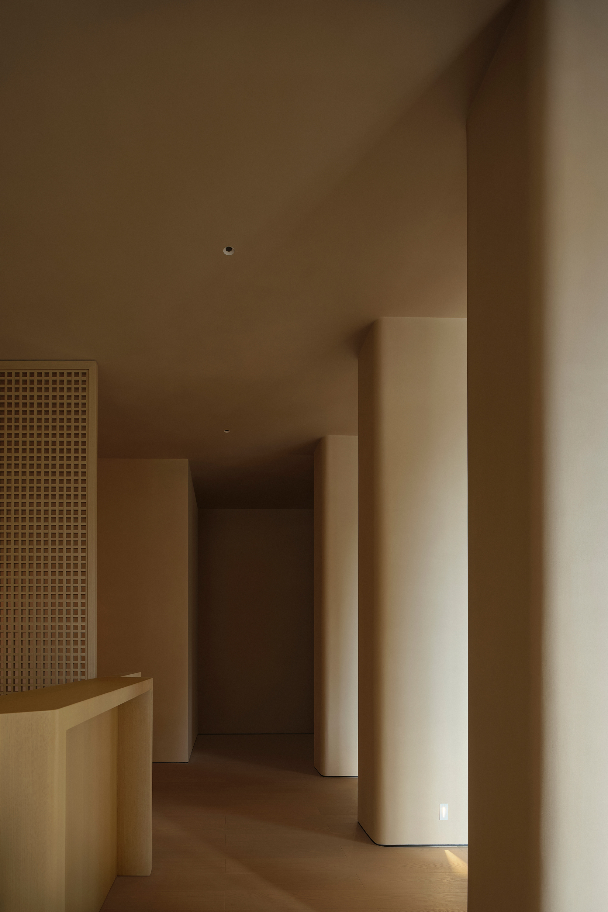 The harshness of the architectural structure is softened by rounding the edges of columns and applying an integrated micro-cement finish to walls, thus seamlessly integrating the structure with the space.This angularity-eliminating design not only echoes the philosophy of "harmony without uniformity" but also endows the space with greater inclusiveness, dispelling the coldness inherent in modern architecture.
