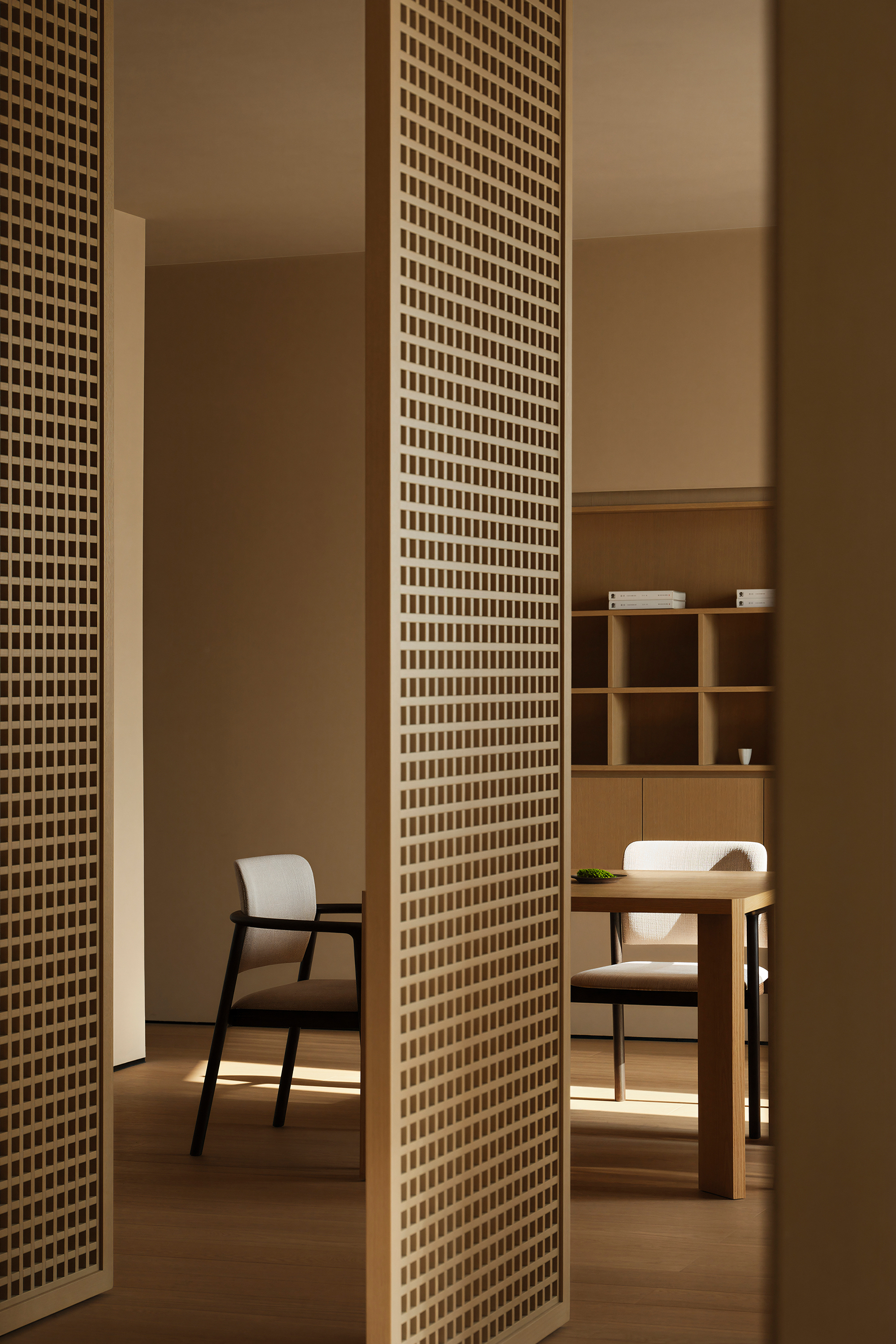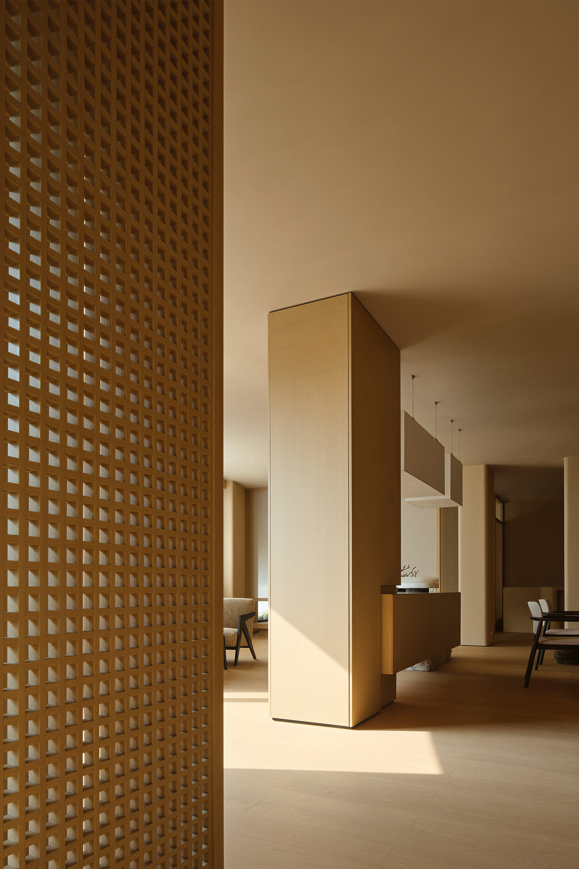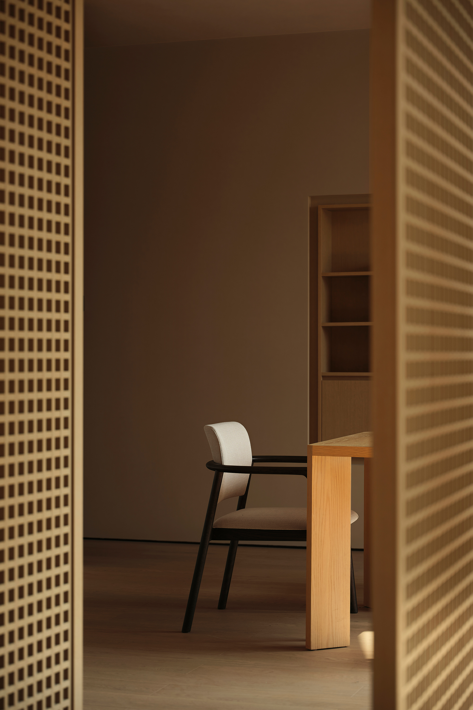 Order reconstruction that blurs boundaries breaks the sense of fragmentation in traditional spaces and reshapes spatial logic with a "sense of sequence": colonnades, grilles and screens form a progressive layered structure, which not only defines functional zones but also maintains visual connectivity through semi-transparent materials.From the low staircase wall at the ground-floor entrance, to the colonnade in the transition zone on the second floor, and further to the core functional area, the space flows naturally between "separation and transparency" and "contraction and expansion", implicitly embodying the balanced wisdom of the "Doctrine of the Mean".