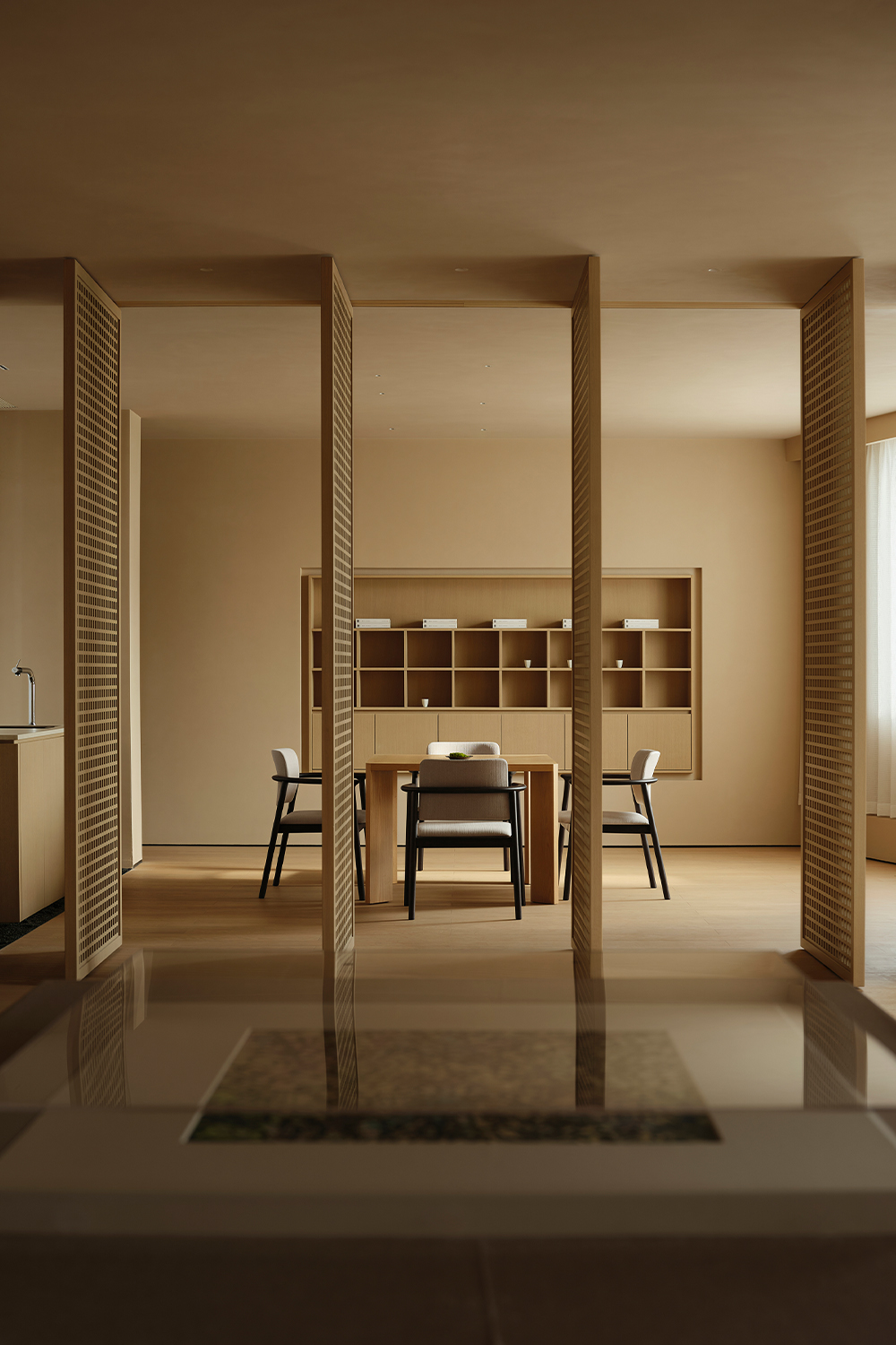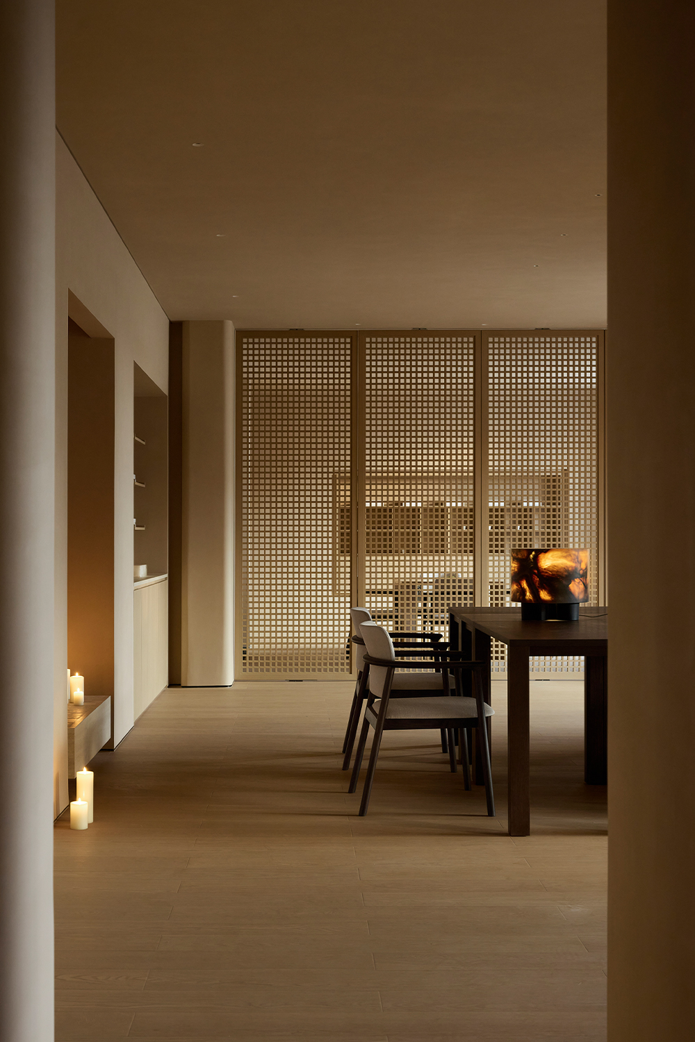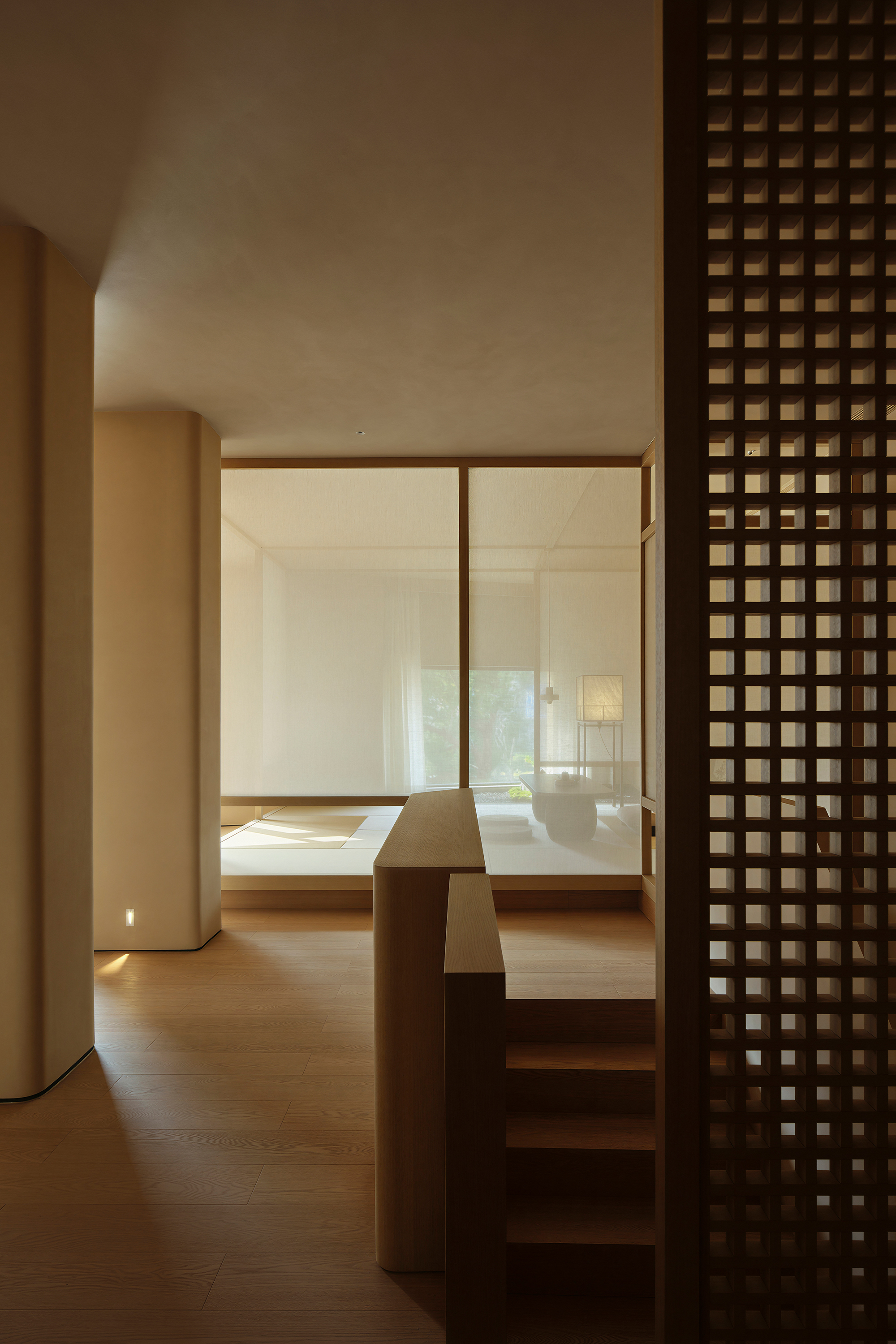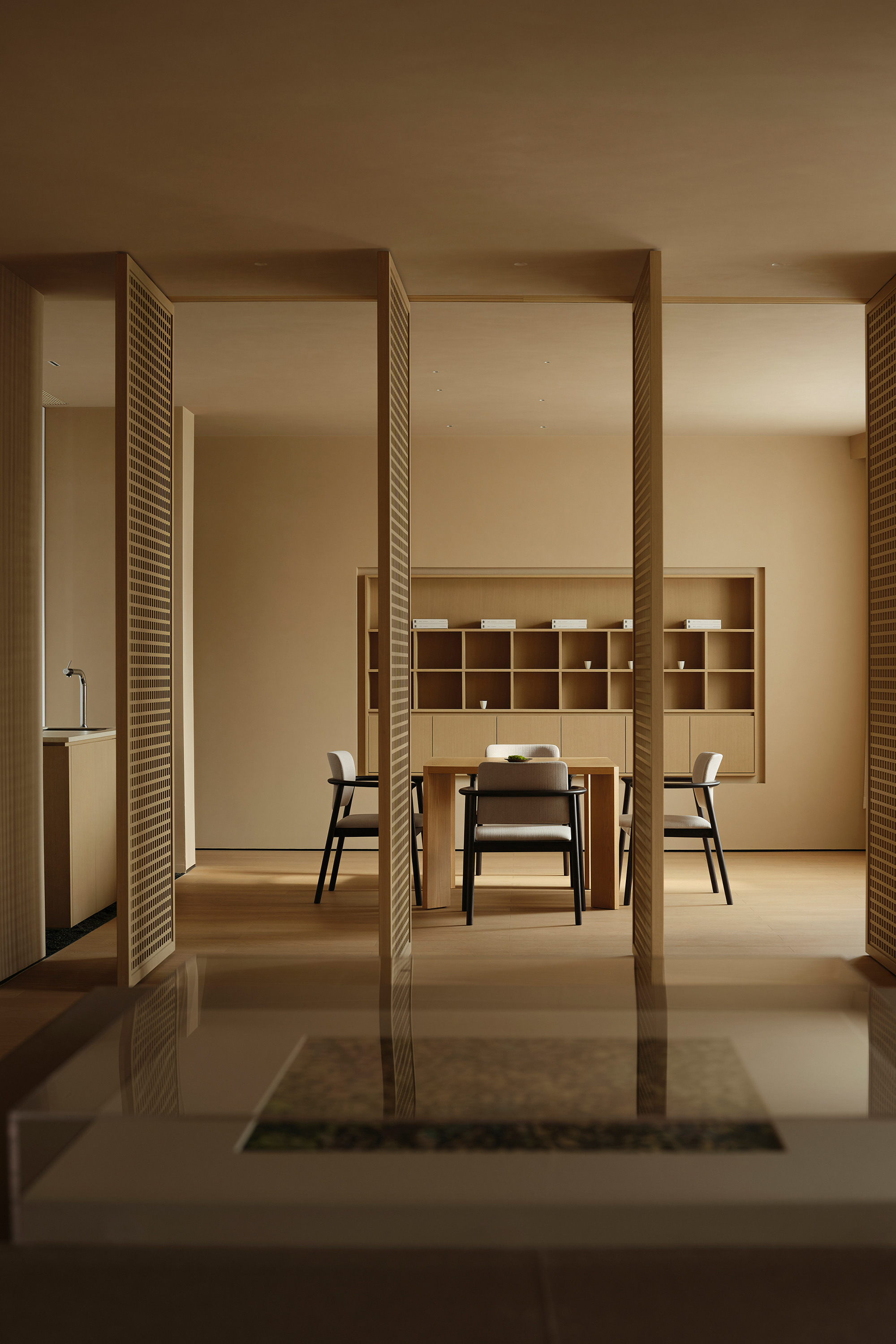 Order reconstruction that blurs boundaries breaks the sense of fragmentation in traditional spaces and reshapes spatial logic with a "sense of sequence": colonnades, grilles and screens form a progressive layered structure, which not only defines functional zones but also maintains visual connectivity through semi-transparent materials.From the low staircase wall at the ground-floor entrance, to the colonnade in the transition zone on the second floor, and further to the core functional area, the space flows naturally between "separation and transparency" and "contraction and expansion", implicitly embodying the balanced wisdom of the "Doctrine of the Mean".