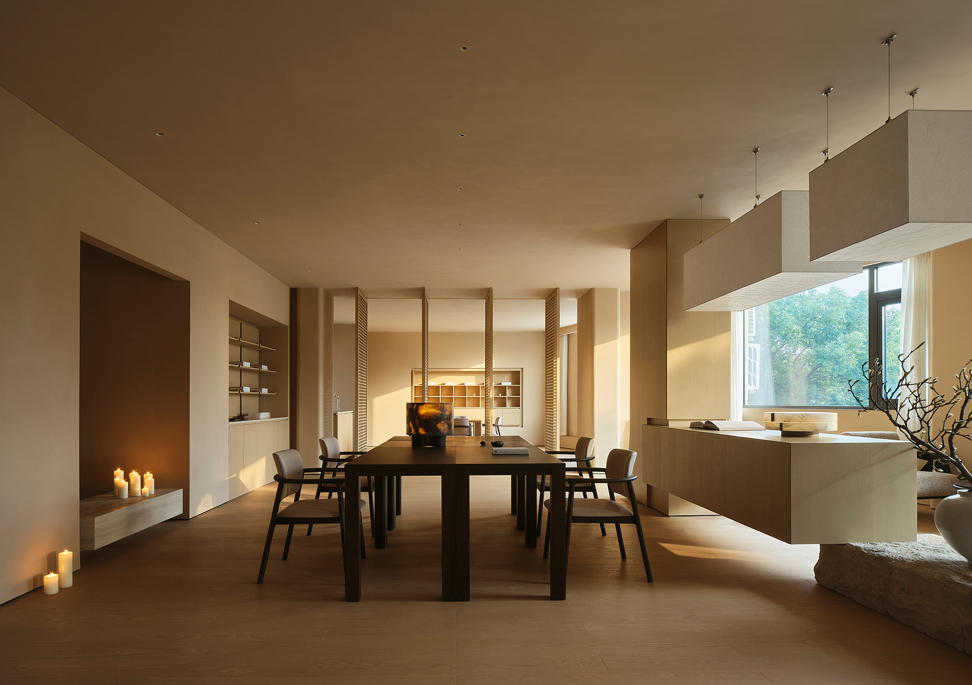 Derived from The Doctrine of the Mean in Confucianism—"When equilibrium is attained, heaven and earth will be in their proper positions, and all things will flourish"—Zhonghe constitutes the spiritual essence of oriental culture. It pursues the balanced coexistence of space and nature, and of humans and their surroundings; it embodies dynamism within order, and radiates warmth within restraint.With Zhonghe as the guiding thread, every design element—from spatial deconstruction to artistic conception—serves as a contemporary interpretation of oriental philosophy.Translation Notes for Accuracy & Nuance.