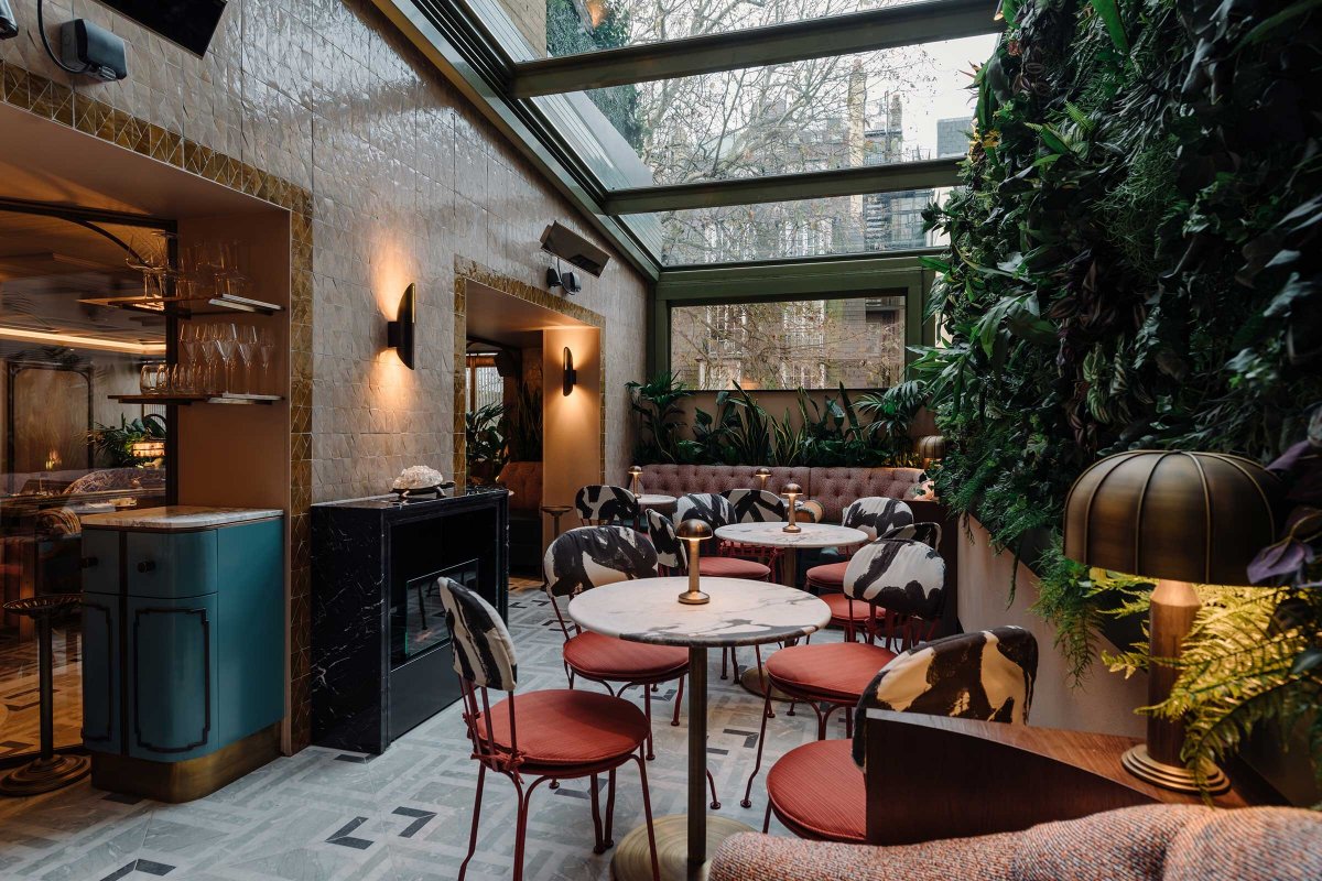 The building has a few pockets of outdoor space that the Club really capitalises on. The ground-floor courtyard functions as an outdoor dining room with heat lamps and covered cabanas, and Joyce Wang extended the feeling of the planted terrace into the cigar lounge. In central London, being able to enjoy al fresco drinking and dining in privacy and comfort is extremely rare.