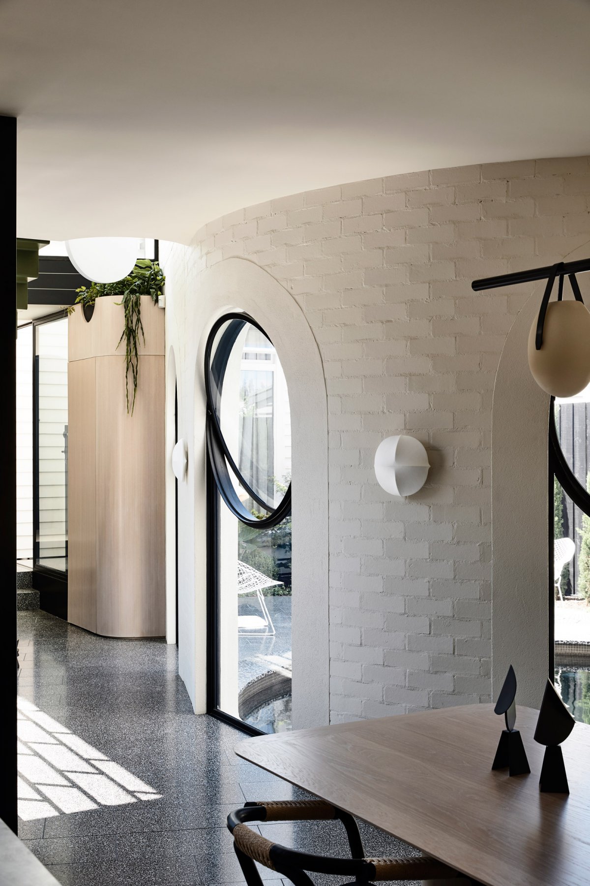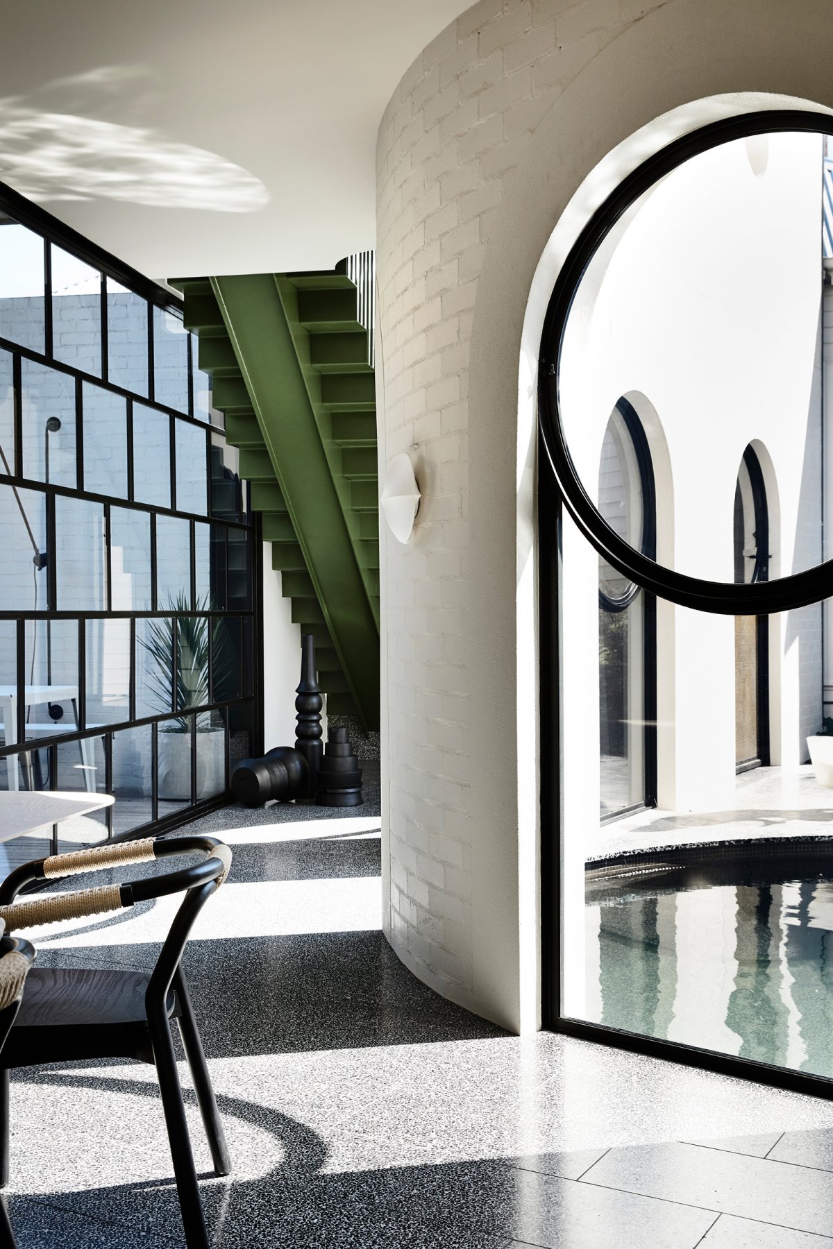 The client wanted a family home that was expressive, engaging and memorable, with the swimming pool as its basic element. The challenge of incorporating a swimming pool into a home environment increases every year, which breaks the immediacy of contact with water. Kennedy Nolan had cleverly designed a central swimming pool and placed a door on the building's facade. The pool deliberately challenges conventional concepts - it is round, compact, deep and dark.