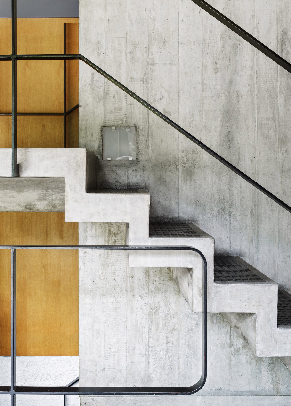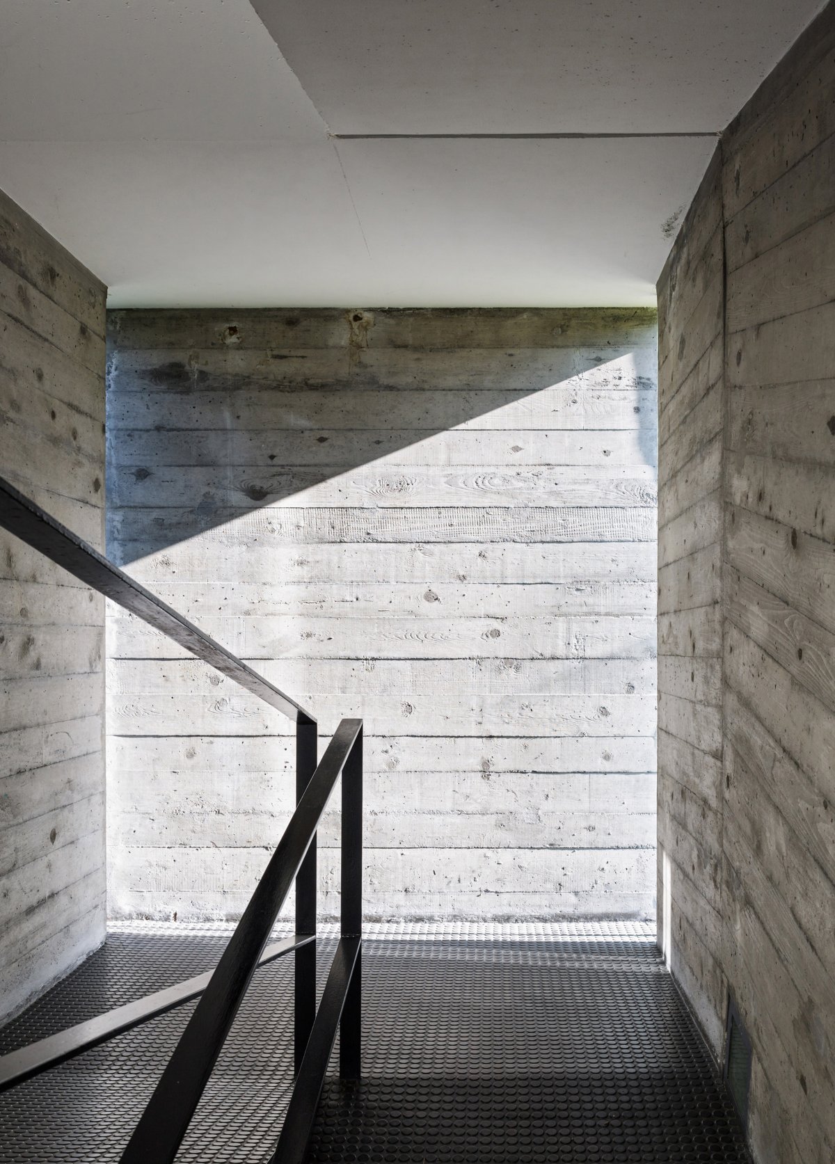 Le Corbusier designed every detail of the pavilion, including an hourglass-shaped bronze concealed door handle and a cloud-shaped oak handle on the glass door. Schmed and Ruegg restored the pavilion, which reopened in the spring of 2019, bringing it up to current building codes. The architects also copied Le Corbusier's original tree-trunk furniture design and huge light sculptures to fill the museum.