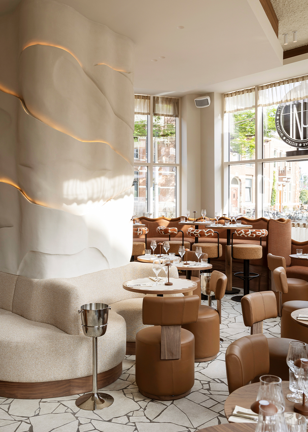 1NUL8 Le Bistro is where French charm meets contemporary design in a space that feels both refined and relaxed. Designed by Lotte Faassen x Studio De Blieck, this modern bistro was shaped around atmosphere, rhythm, and elegance, carefully considered down to the smallest detail, and designed to shift naturally with the rhythm of the day.