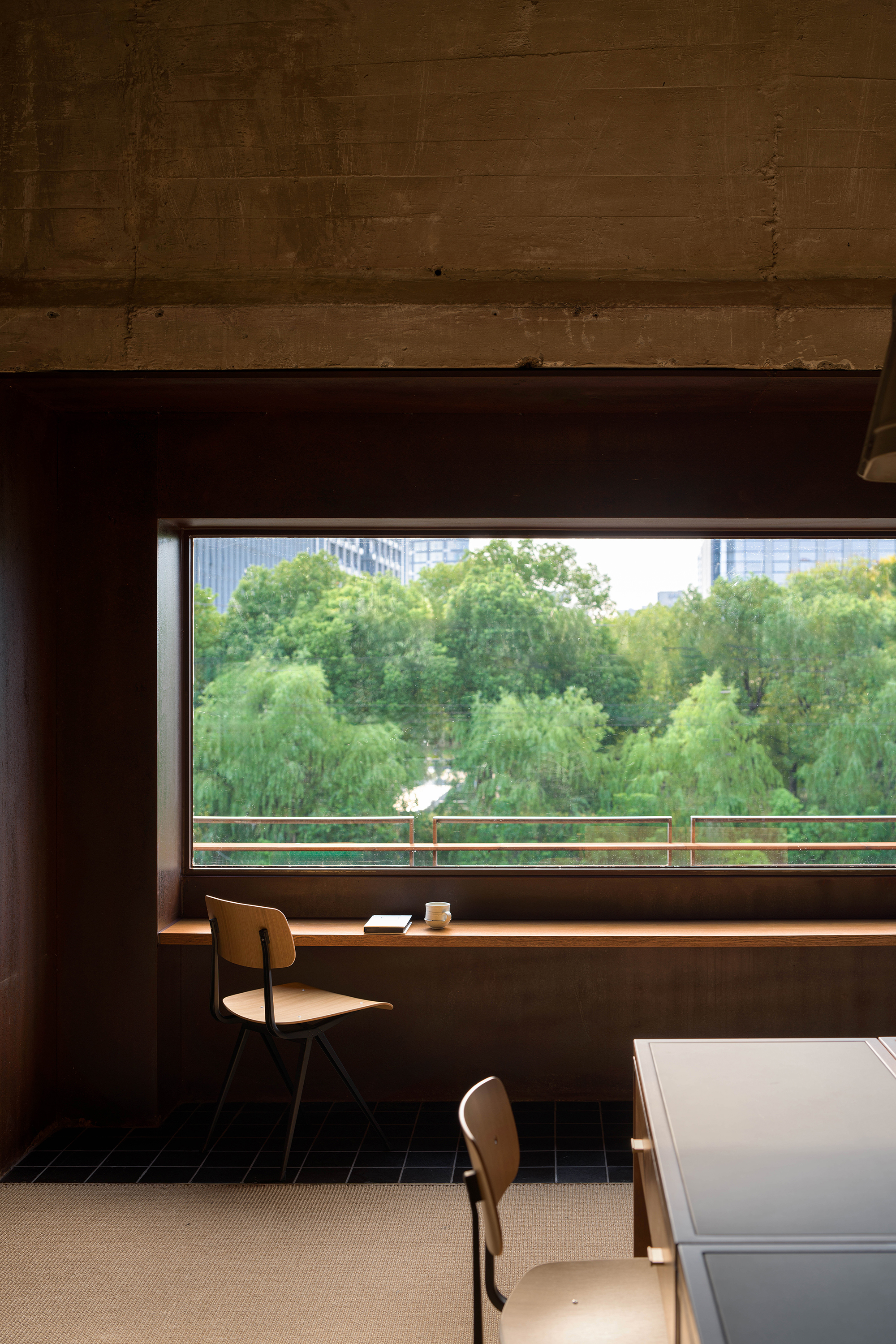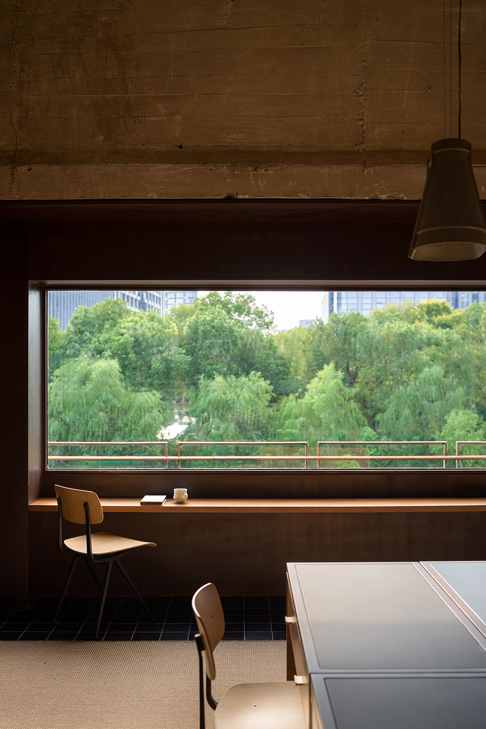 In order to continue the vitality of the old factory area of Jingwei, we adopt the strategy of "respecting relics and local regeneration" to achieve a historical dialogue between the new space and the old factory building. The storefront is made of red rust colored metal plates, with a rusted texture that resembles the traces left by time. It retains the rough texture of the industrial factory area and echoes the characteristics of the site with modern materials. MARCH SPACE STUDIO always pays attention to the sustainability of architecture and advocates for the long-term environmentally friendly use of building materials. This concept is also reflected in the detailed design - the wooden fence in front of the store is transformed from the former train sleepers. The uneven patterns on the sleepers and the warm texture polished by time allow every person who steps into the store to touch the traces of history.