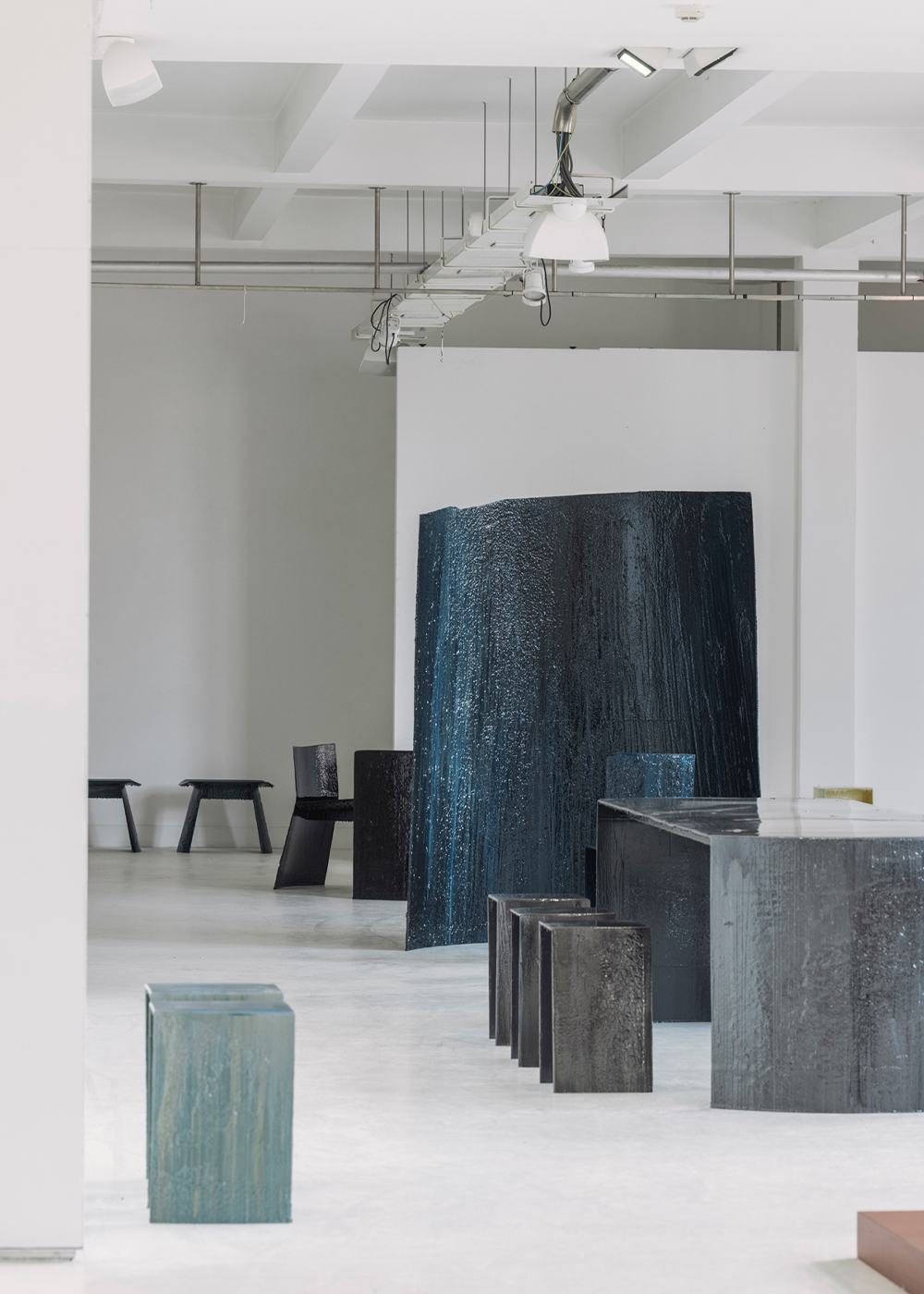 Terra Atlas is a poetic mapping of what lies beneath. Middennacht & Alexander unearth forgotten materials—buried oil tanks, corroded metals, remnants of earth and ice—and fit them into the light. What was once discarded and contaminated is not erased, but transformed; preserved in translucent layers of epoxy, reshaped into functional objects that are also sculptural relics.