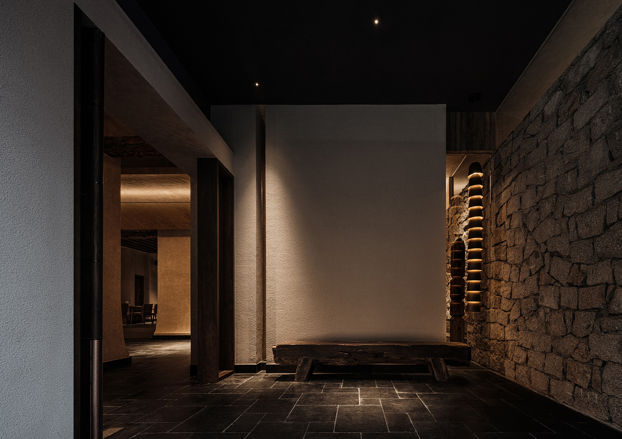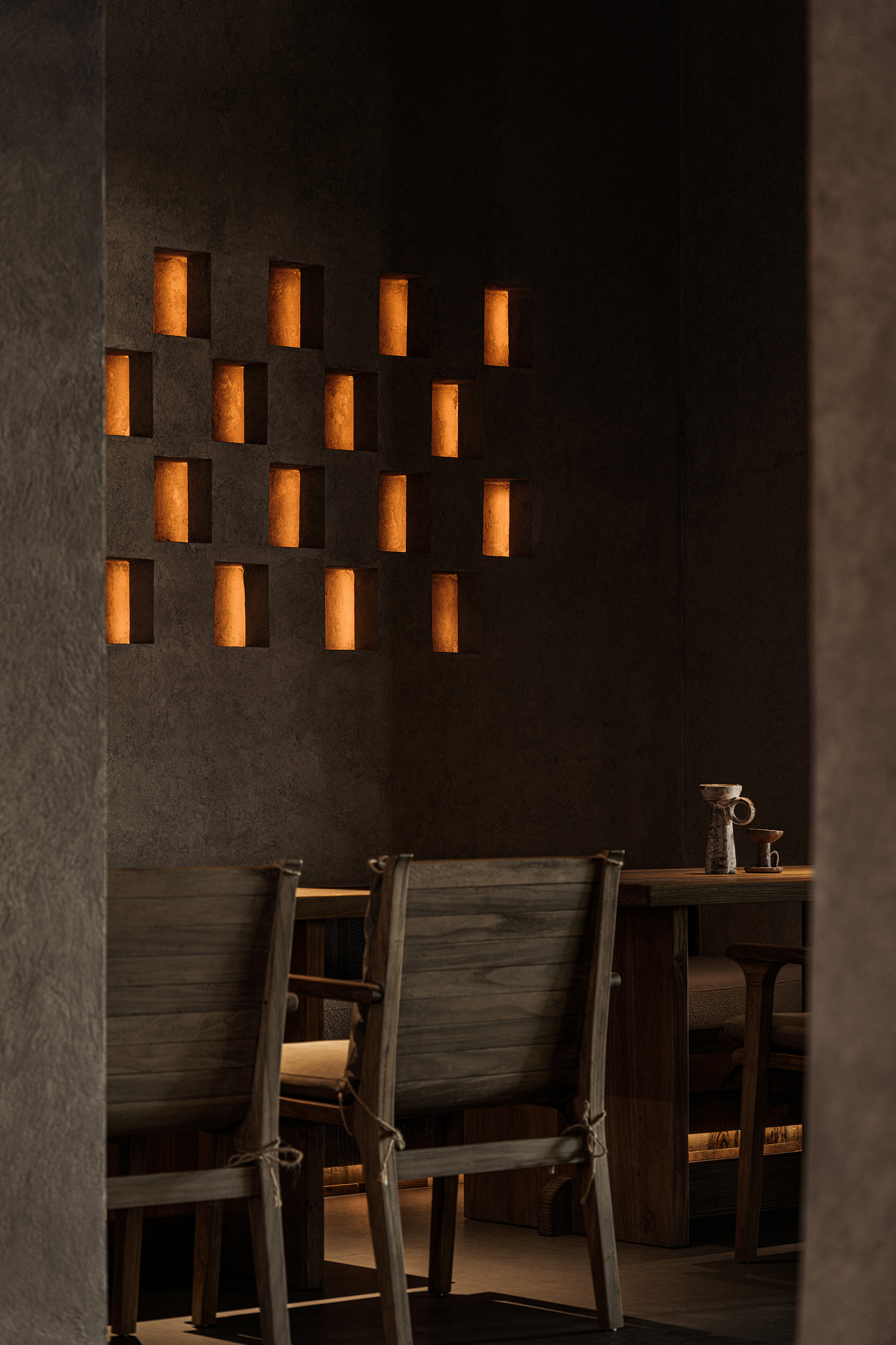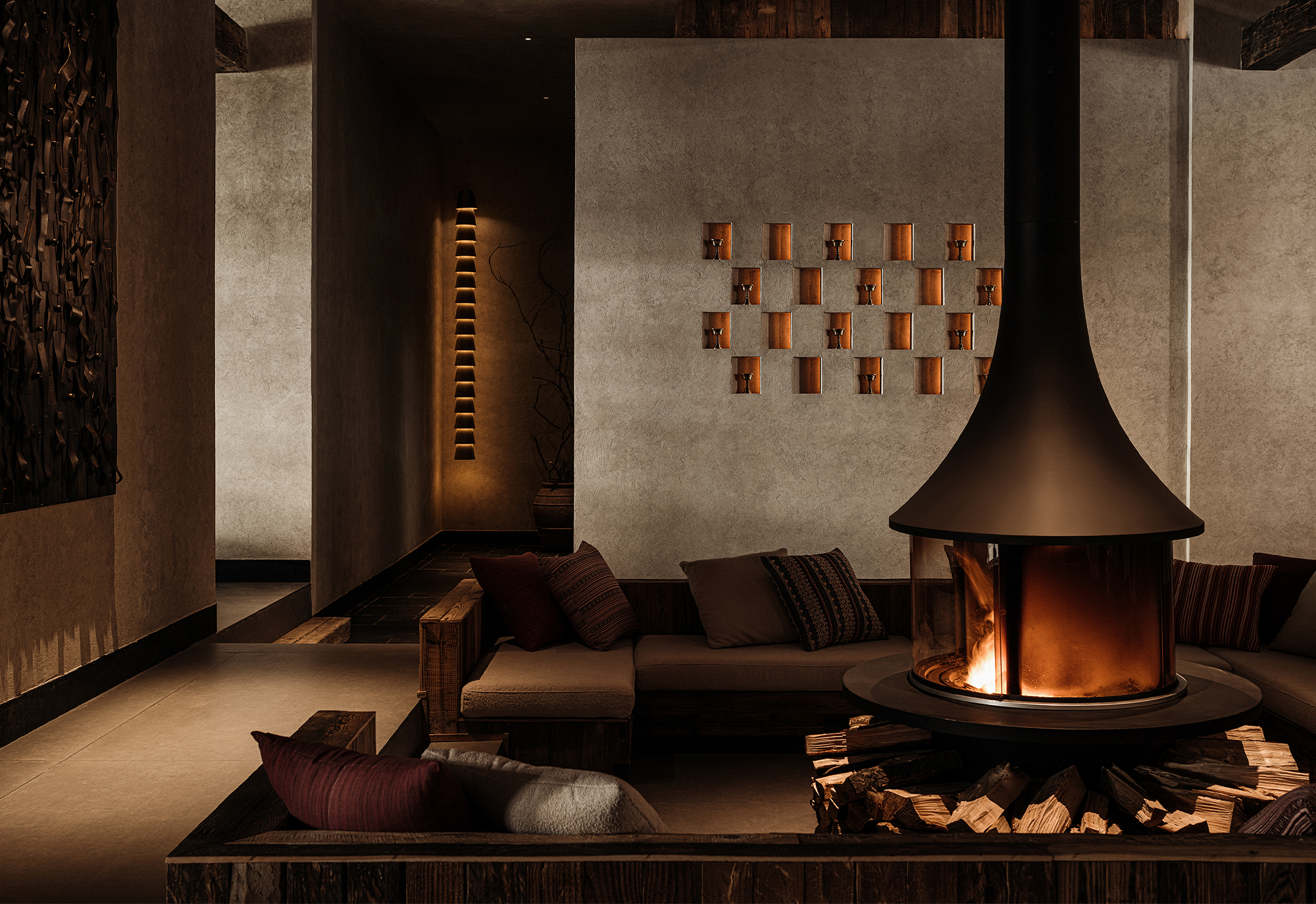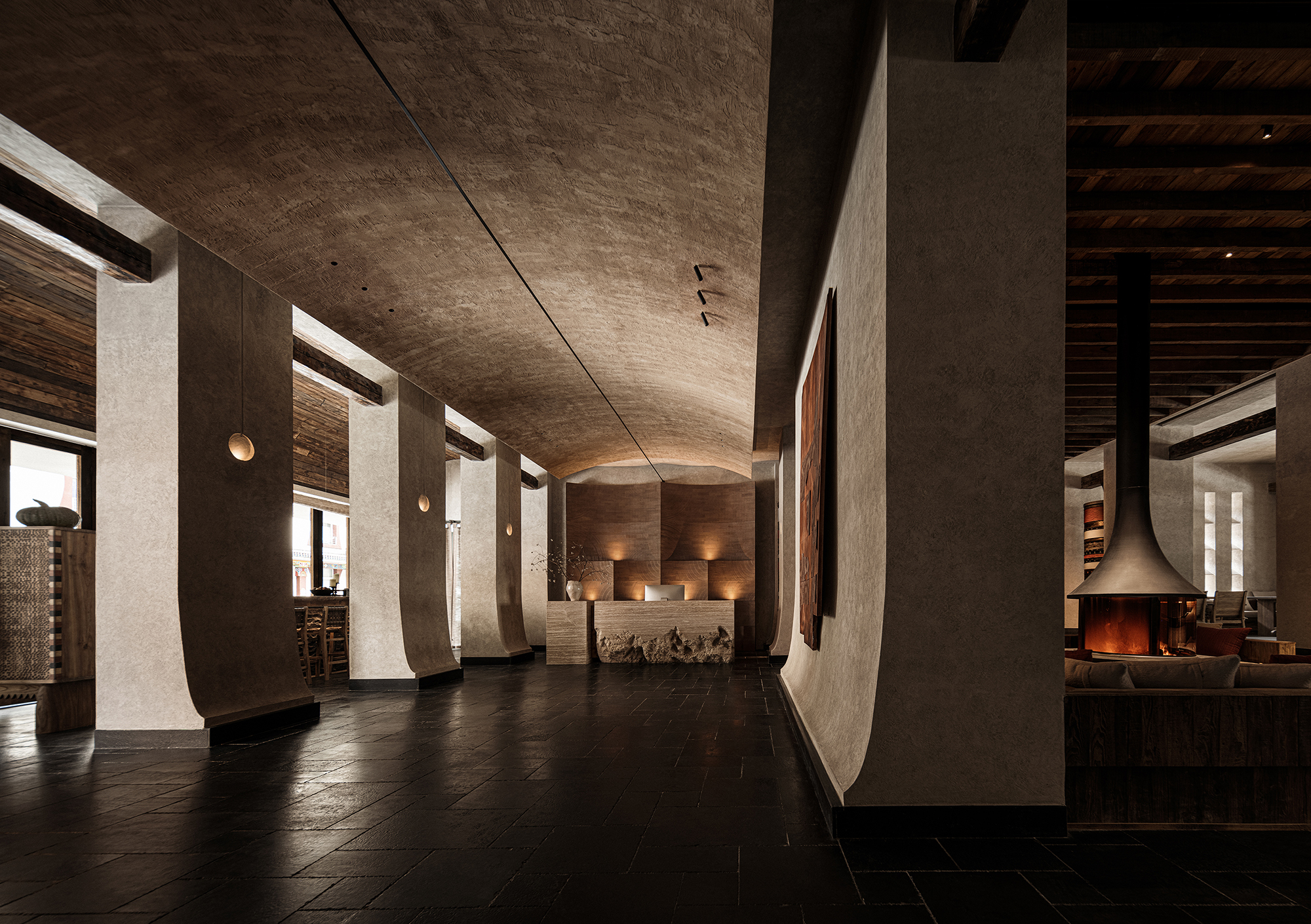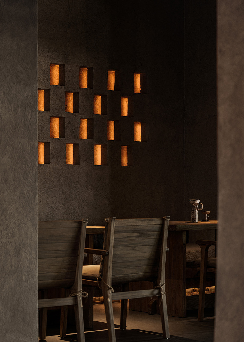 Fire was originally regarded as a microcosm of the sun. In other ancient civilizations, the sacred flame was always initially placed in a specific area before gradually being embraced by the living spaces of households. In Tibetan regions, daily life similarly revolves around the hearth. For Tibetans, fire is both material and spiritual—providing warmth and light. Here, the sunken hearth is emphasized by the space, creating a sense of cozy intimacy. The slightly dimmed surrounding light, the dancing flames within the hearth, and the crackling sound of burning wood all aim to offer a humanistic dimension that, while non-religious, still evokes spiritual resonance.