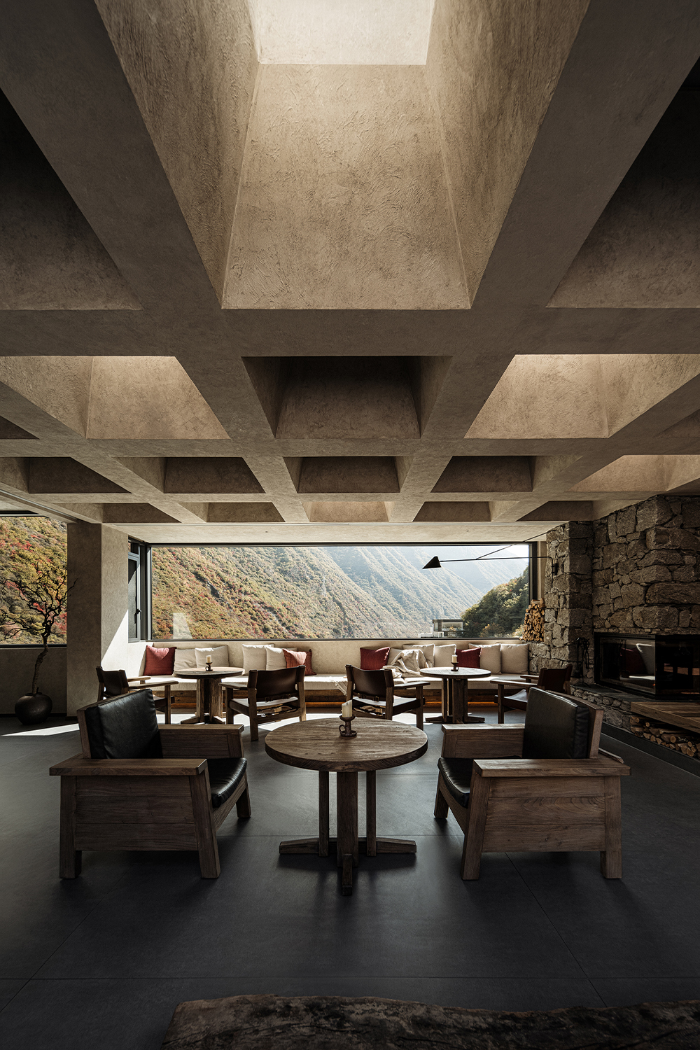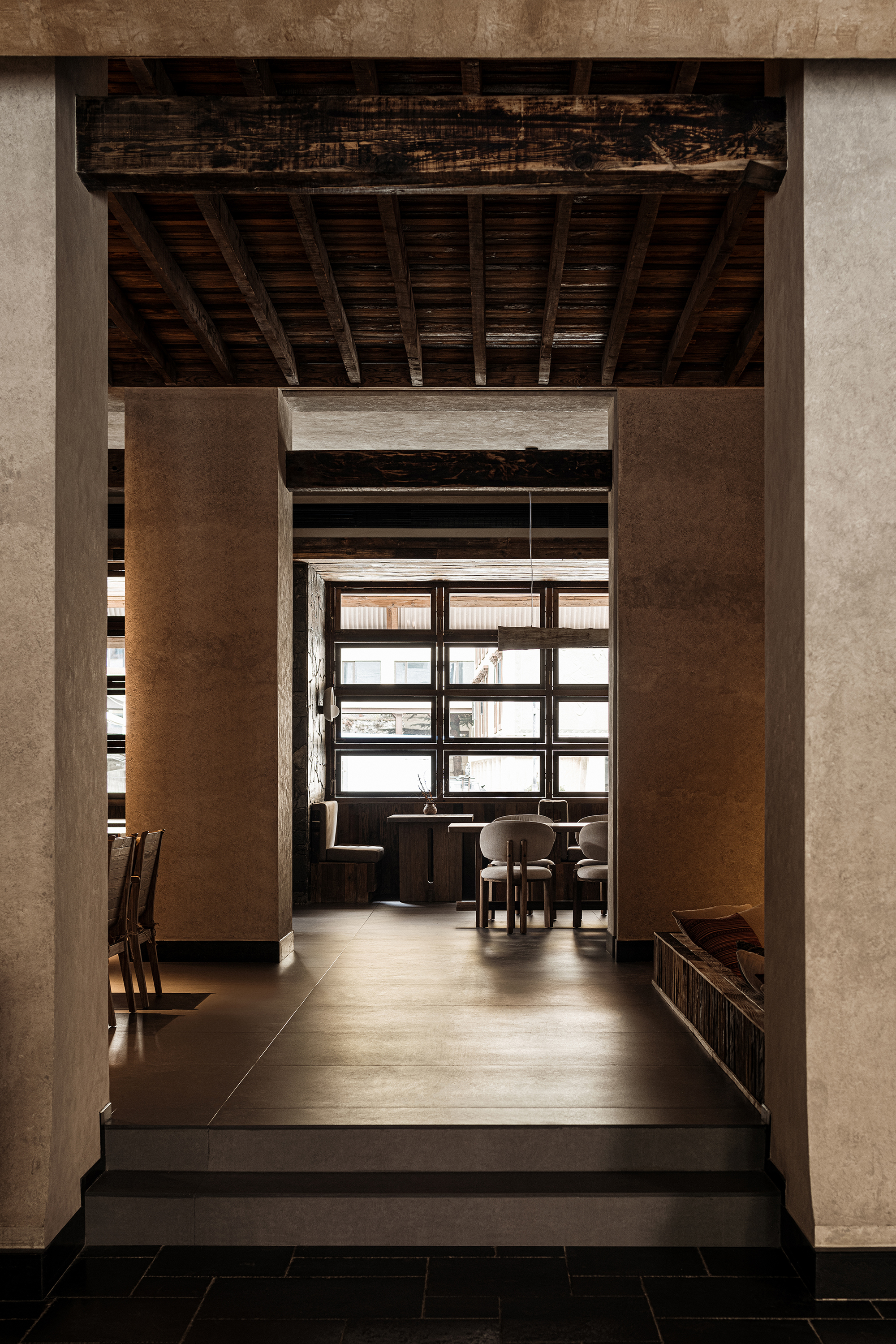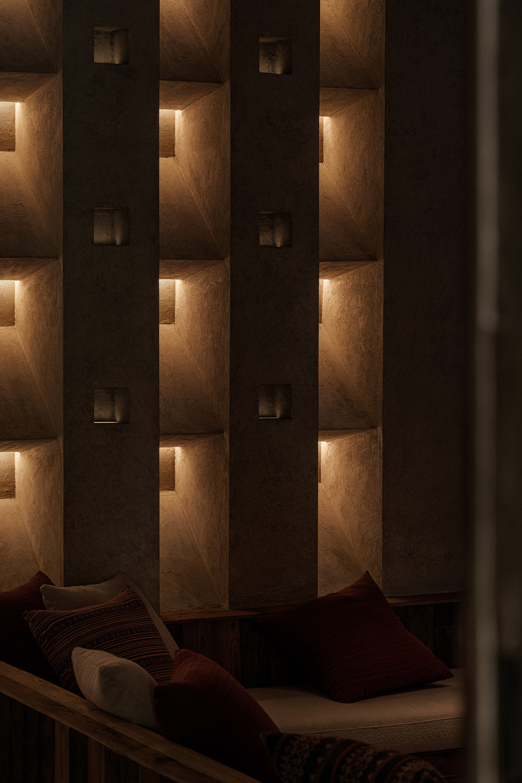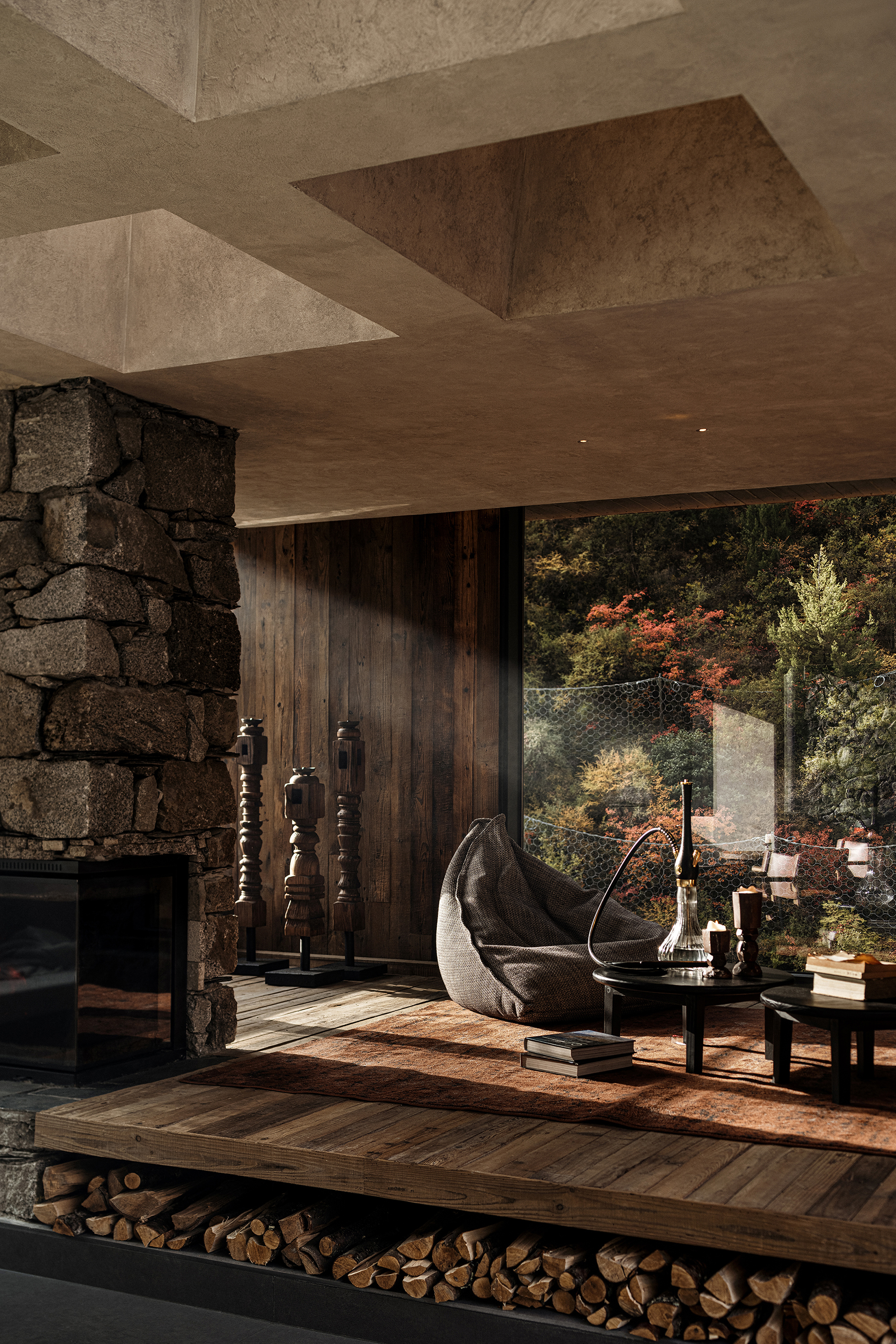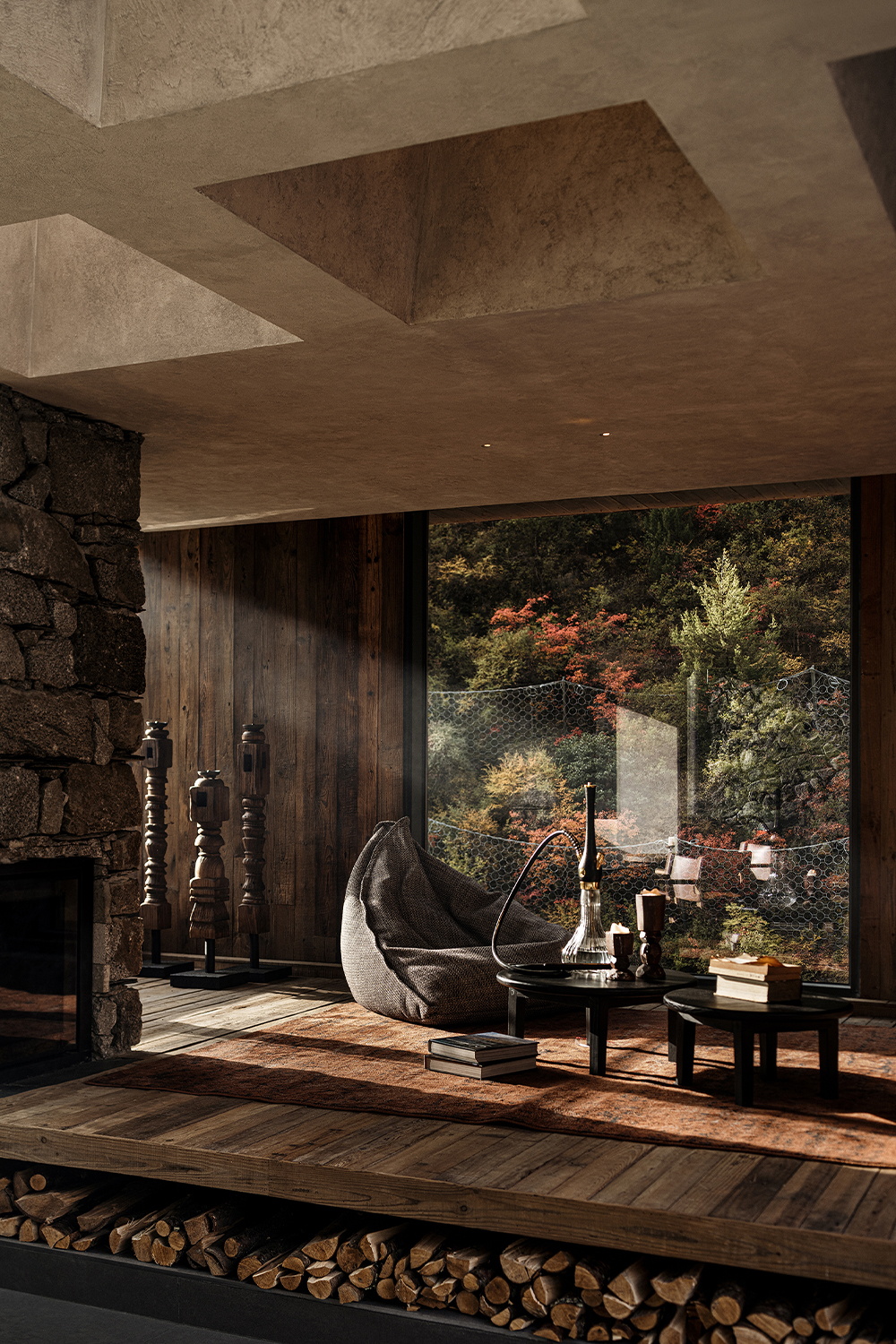 Fire was originally regarded as a microcosm of the sun. In other ancient civilizations, the sacred flame was always initially placed in a specific area before gradually being embraced by the living spaces of households. In Tibetan regions, daily life similarly revolves around the hearth. For Tibetans, fire is both material and spiritual—providing warmth and light. Here, the sunken hearth is emphasized by the space, creating a sense of cozy intimacy. The slightly dimmed surrounding light, the dancing flames within the hearth, and the crackling sound of burning wood all aim to offer a humanistic dimension that, while non-religious, still evokes spiritual resonance.
