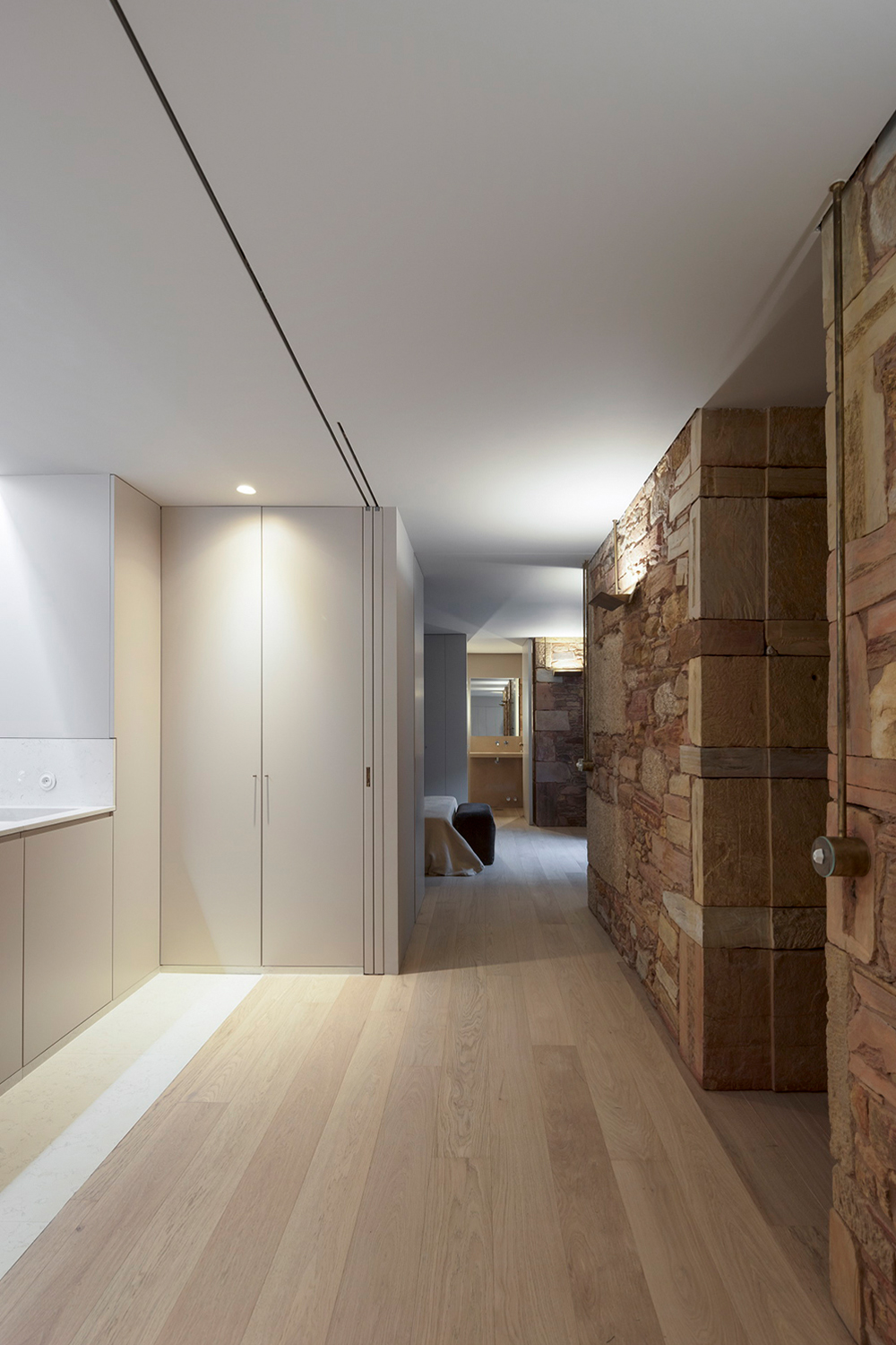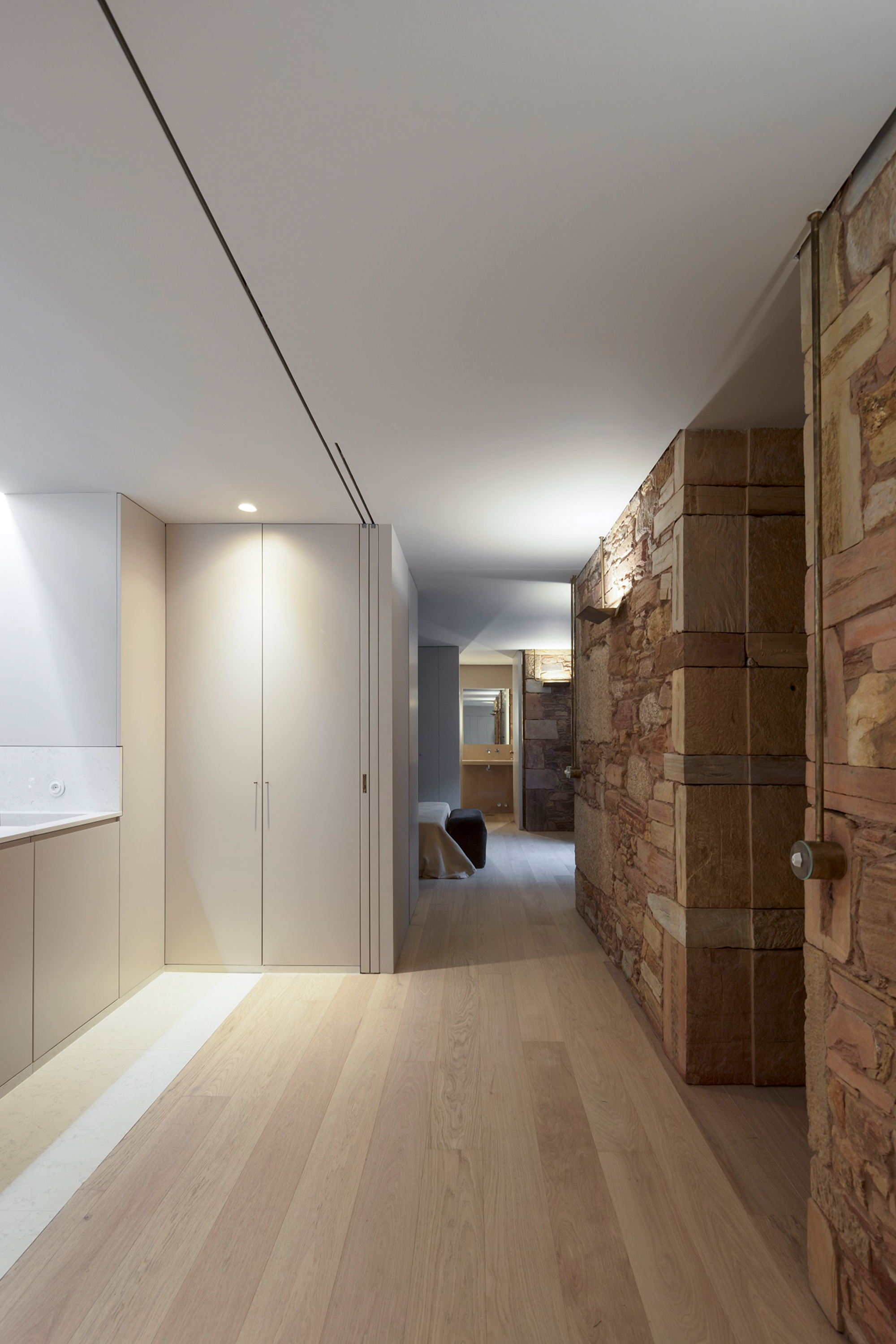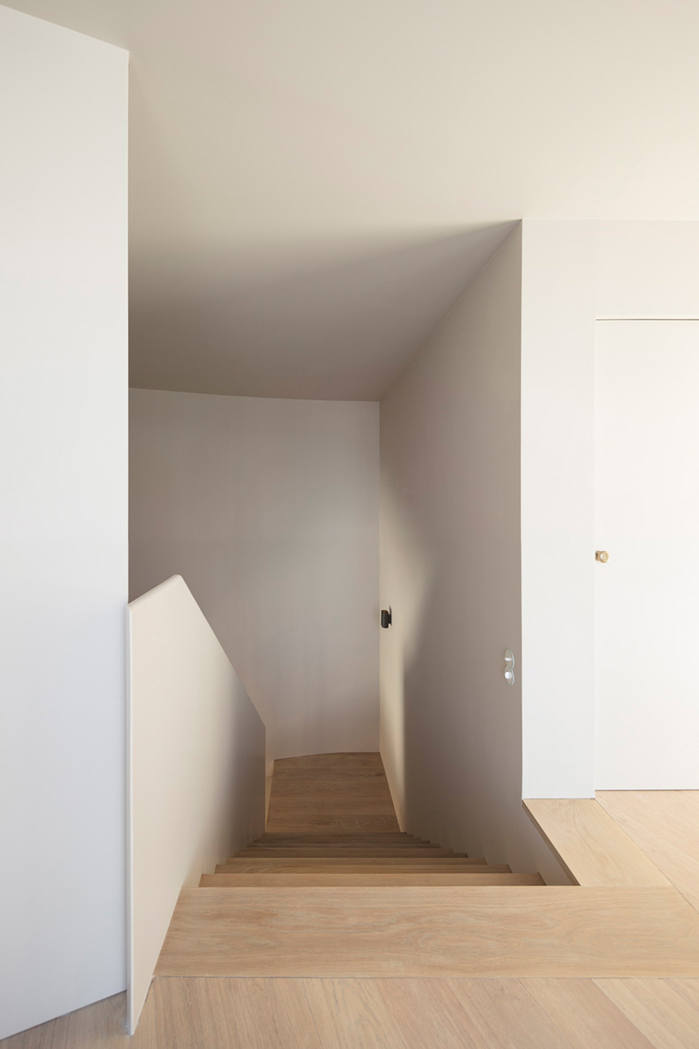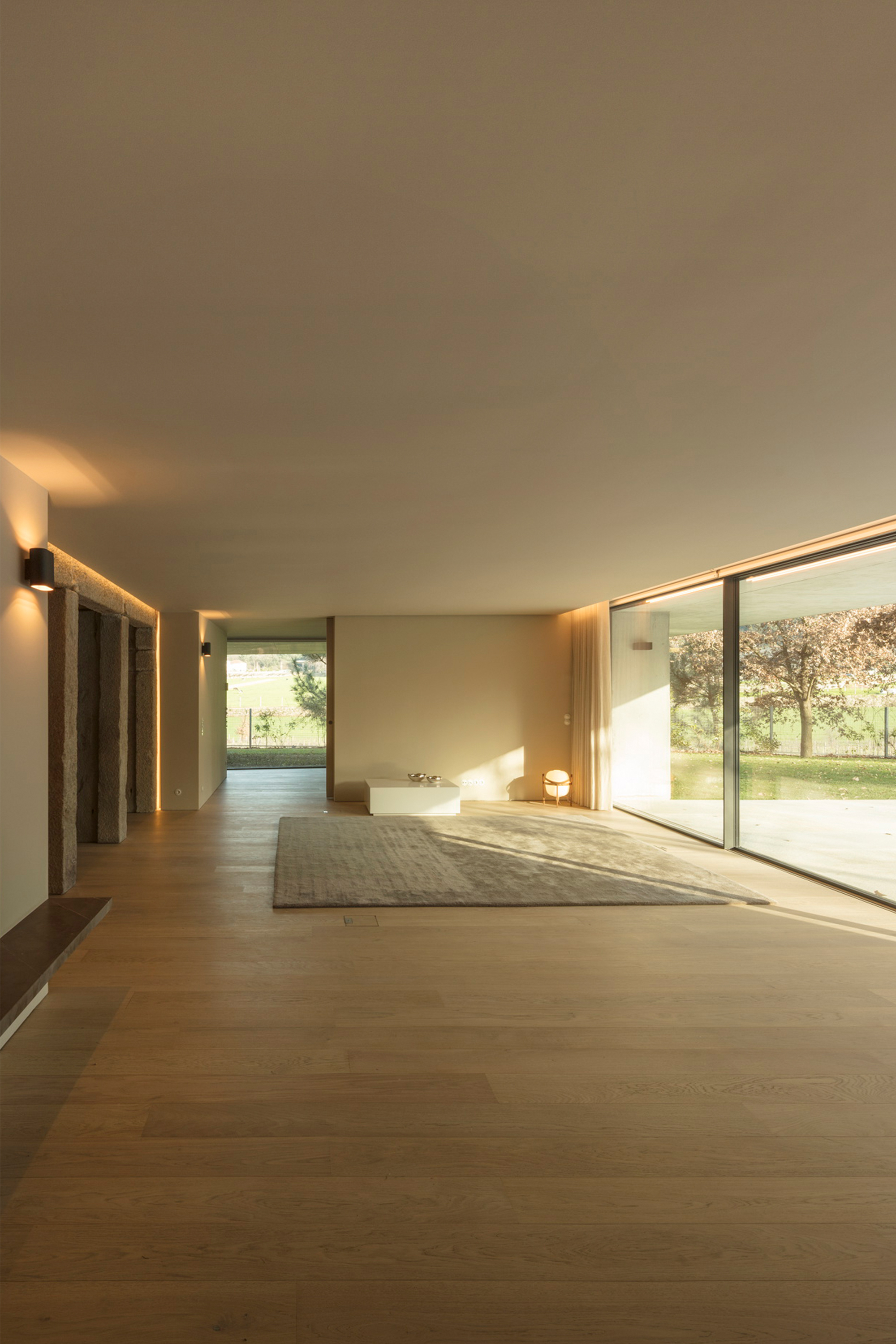 Just like the old house, the new one merges into the morphology of the land, doing without the urban frontage, encouraging dialogue with the beautiful farmland that stretches away on the side opposite the street. The house has a gross area of 643.20 m² over three floors.