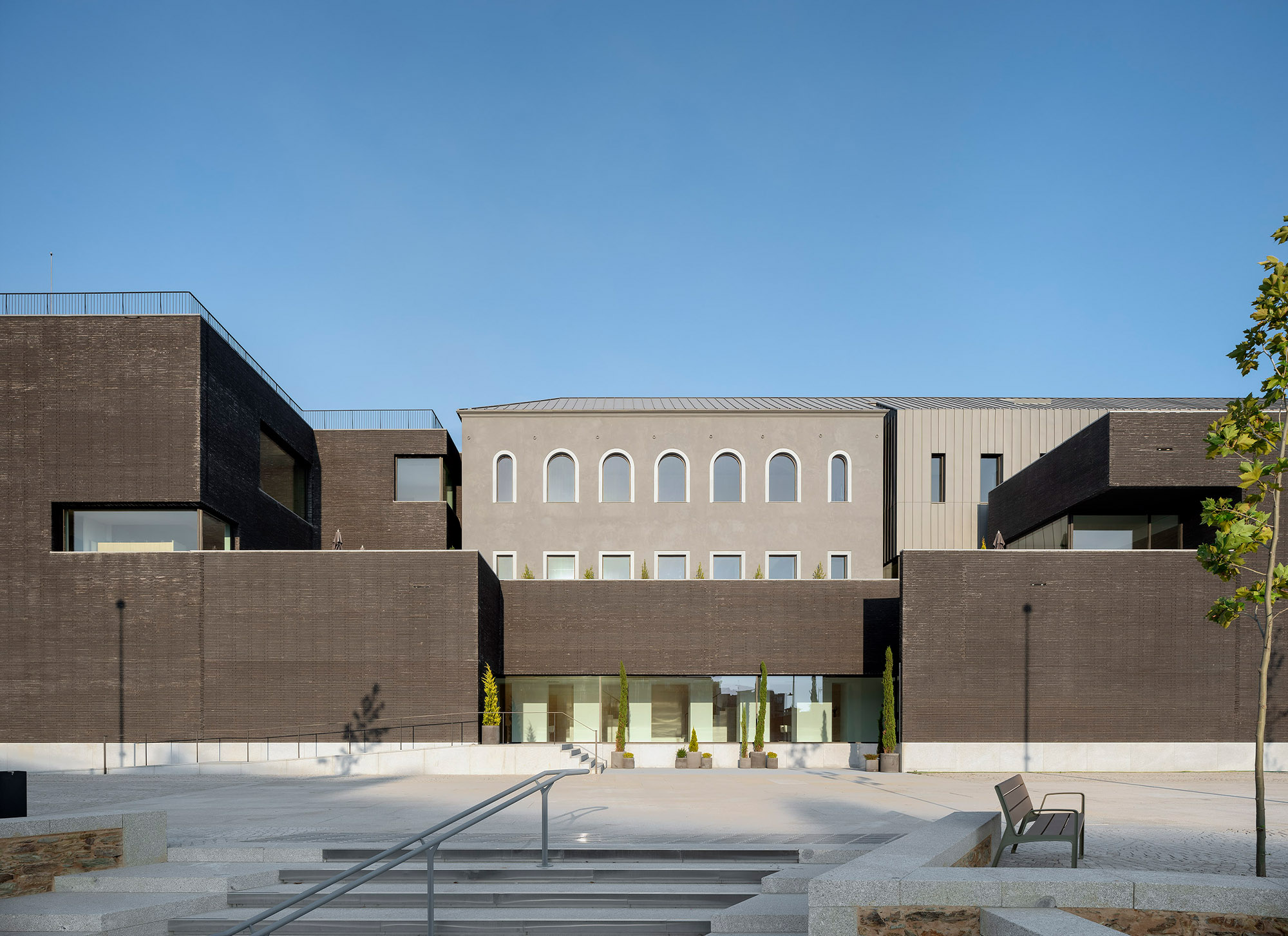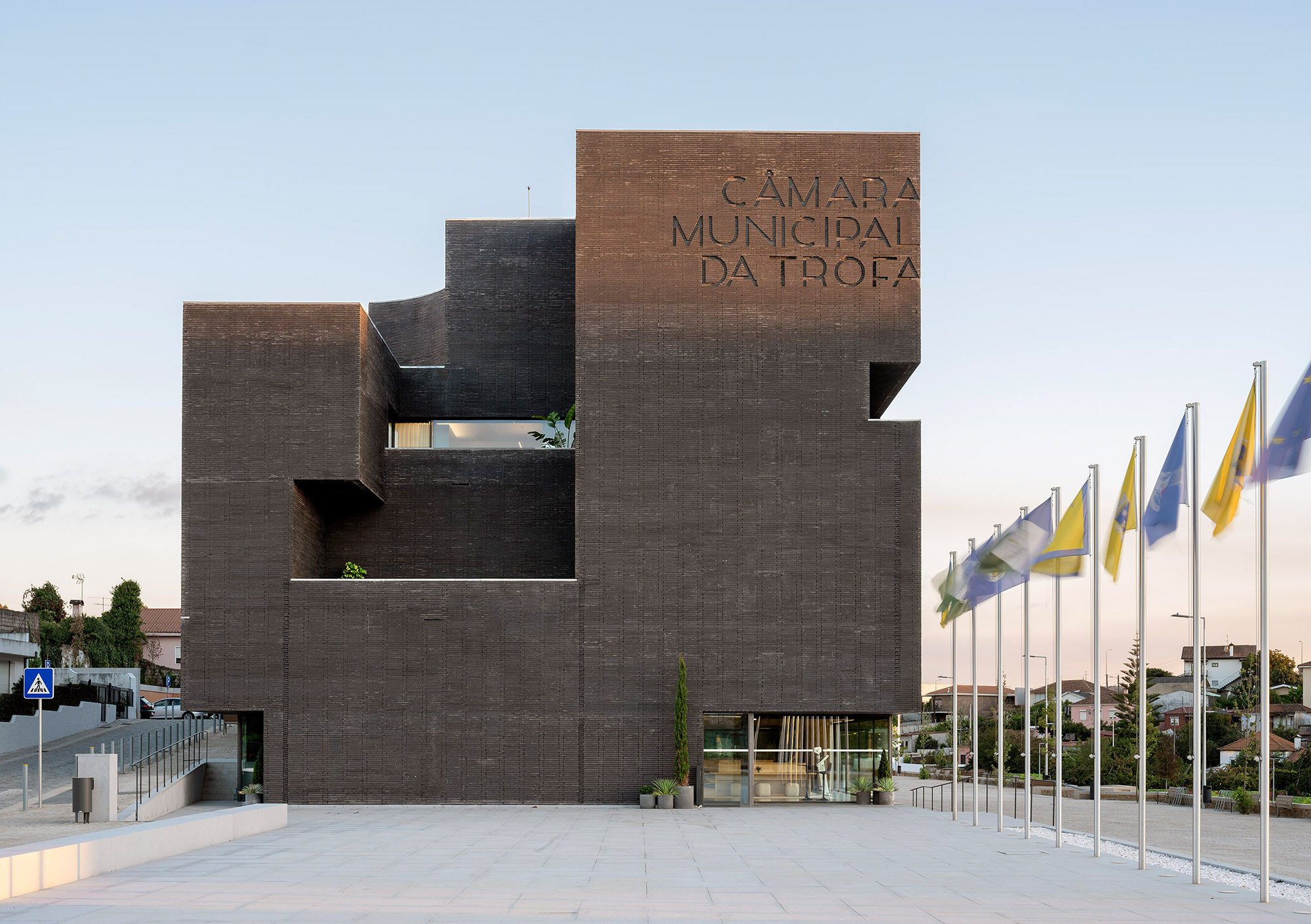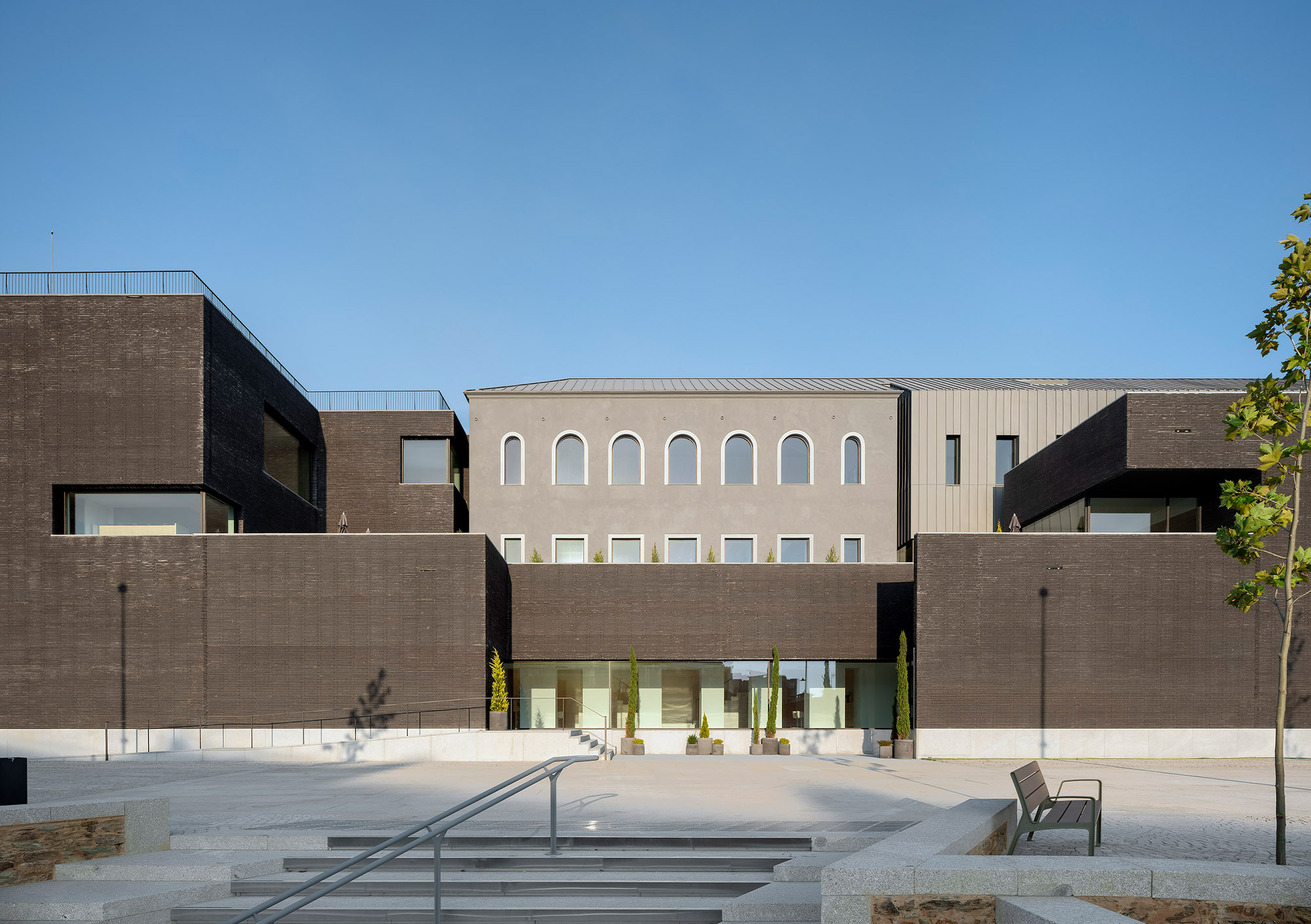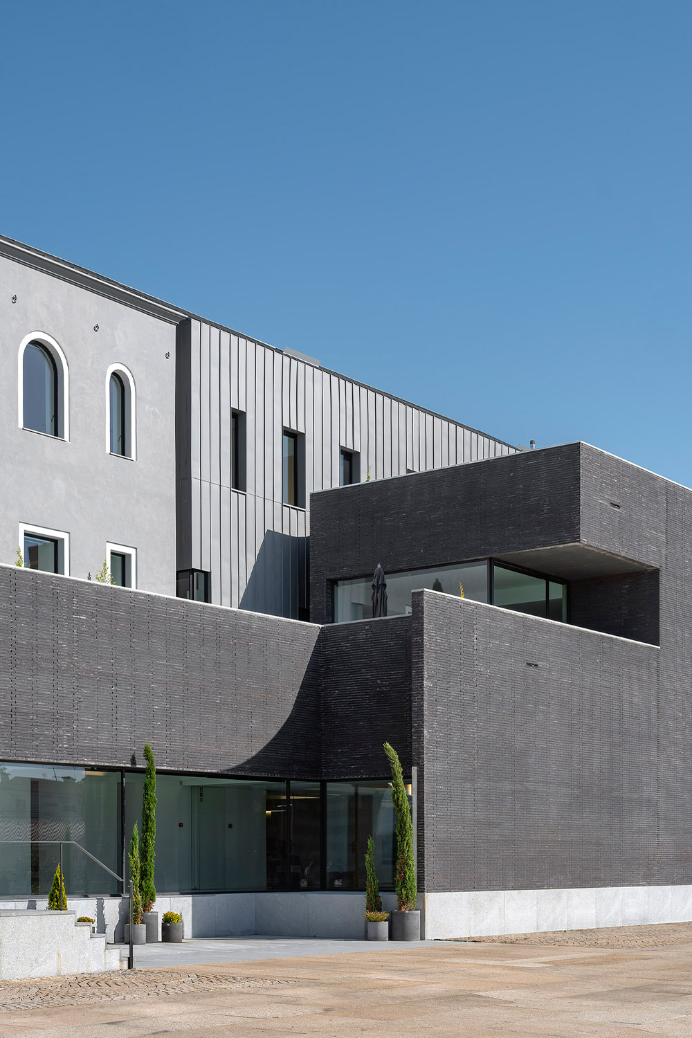 The spirit of Portuguese architecture is simple and sober. The building returns to the essence of architecture: construction; space; scale and proportion. Only the essentials resist to time. The Town Hall was built in concrete, thermally insulated by the outside and protected from the weather and the time by an external facing brick wall. These are not skin choices or finishing layers. The exposed concrete and the massive bricks are integral and durable.